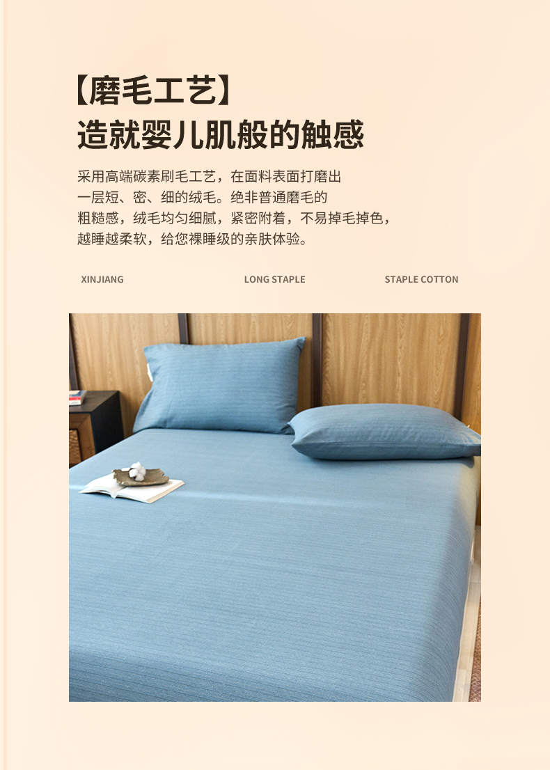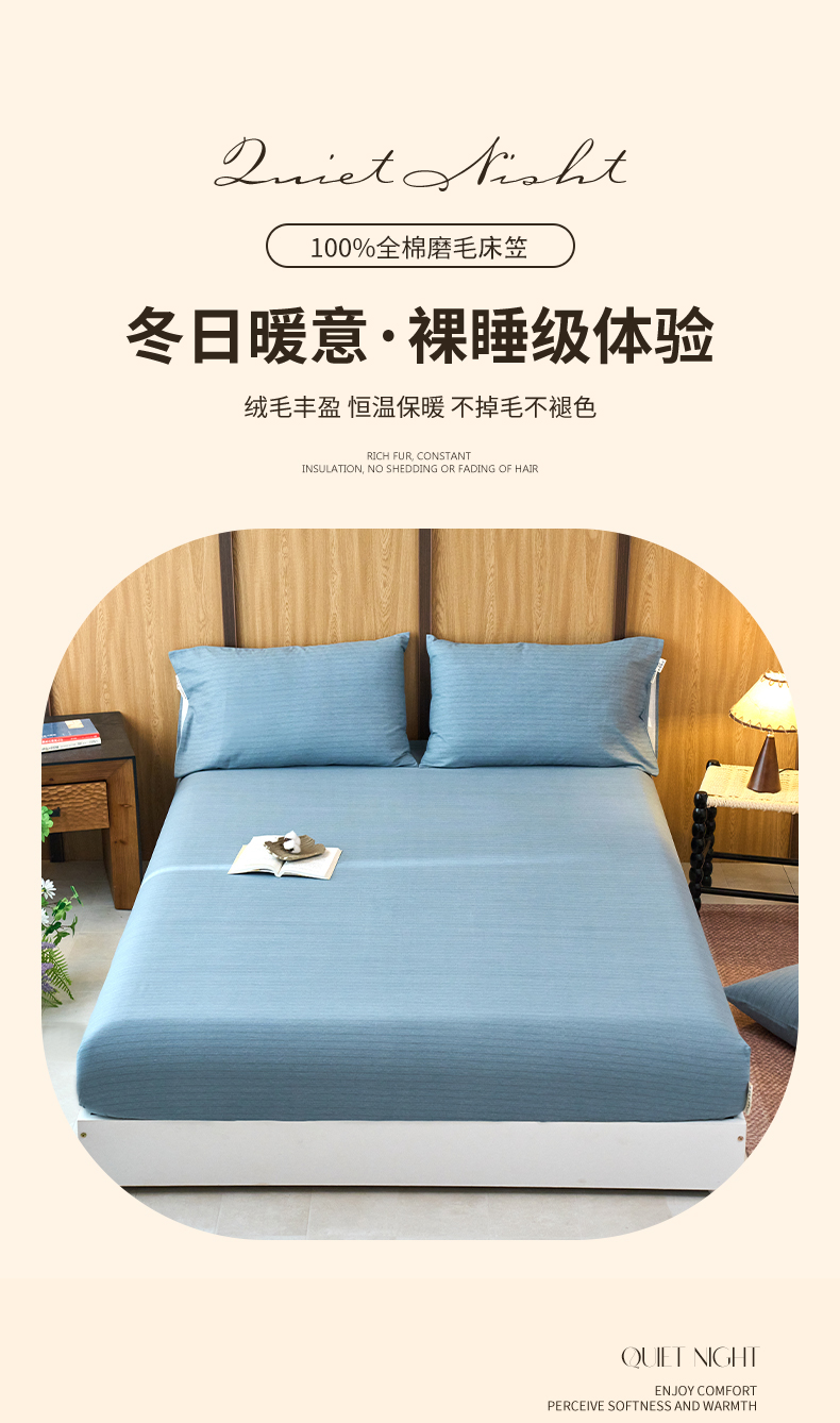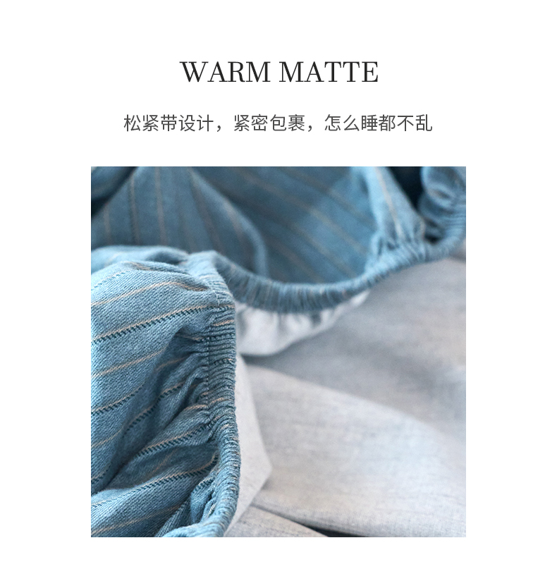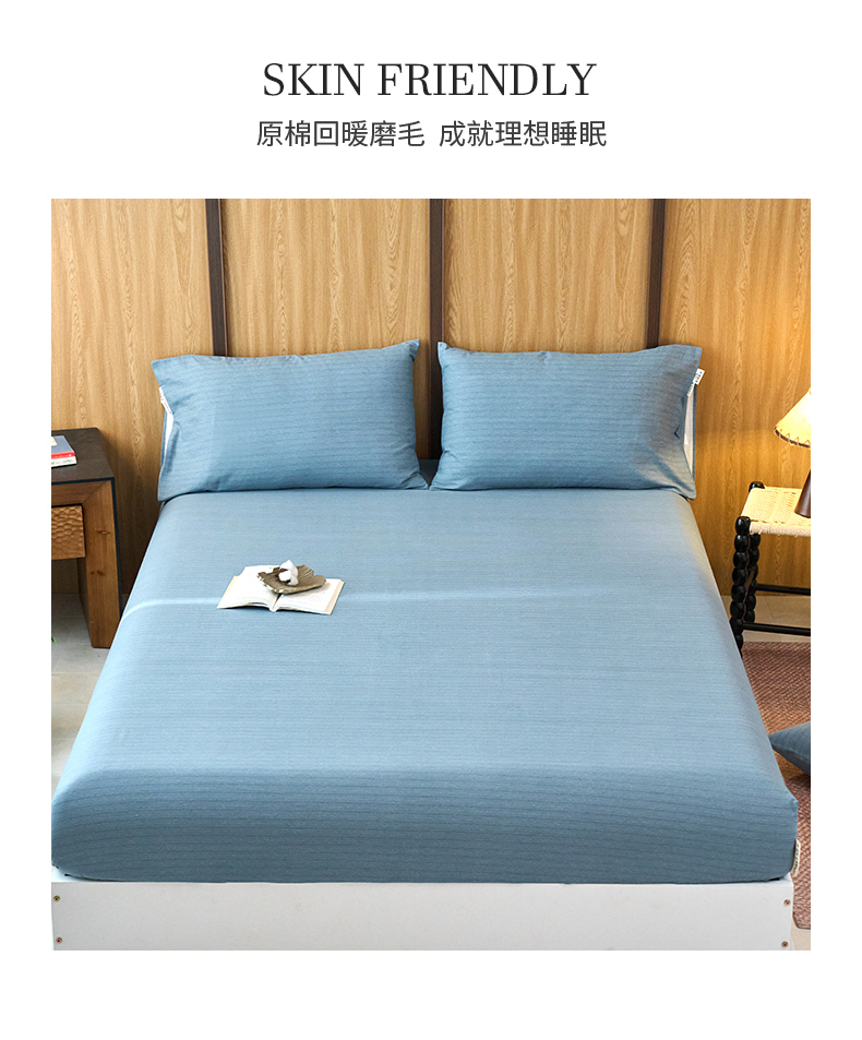 春皖家纺 2025新款全棉原棉磨毛色织水洗单床笠回暖系列-风格二 柏林蓝