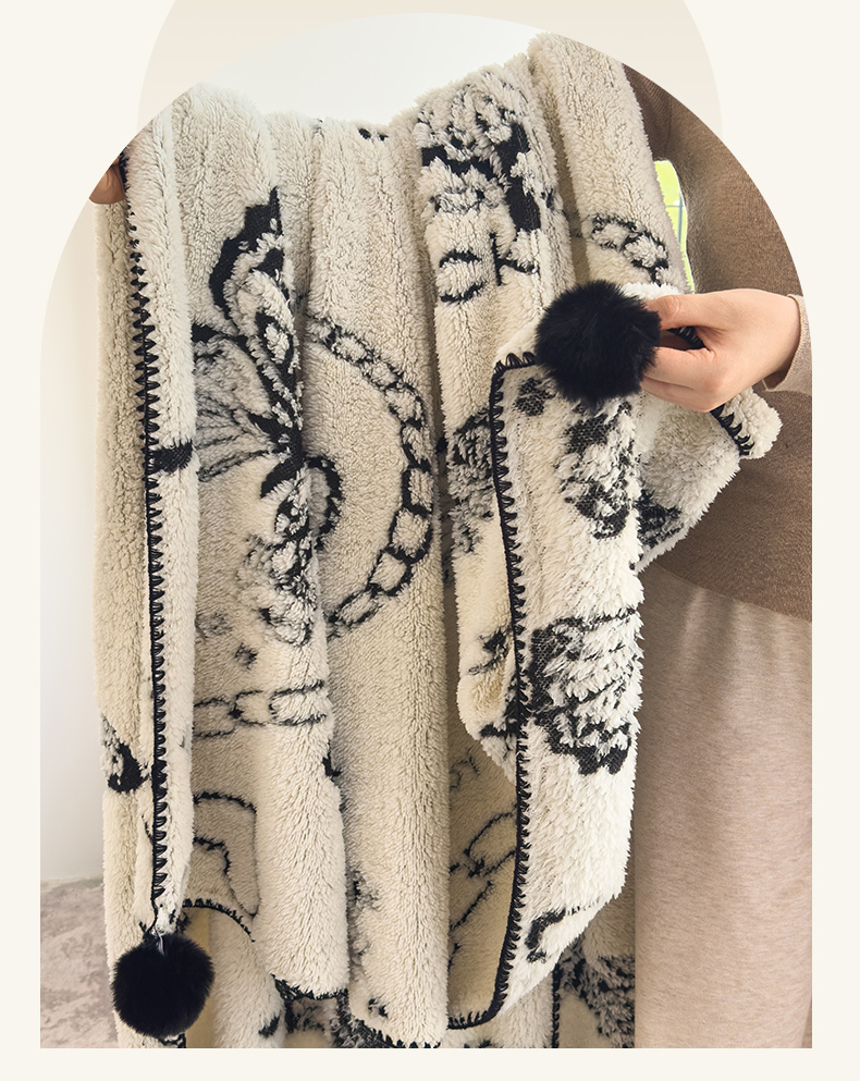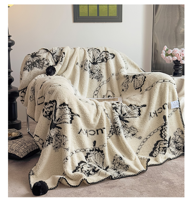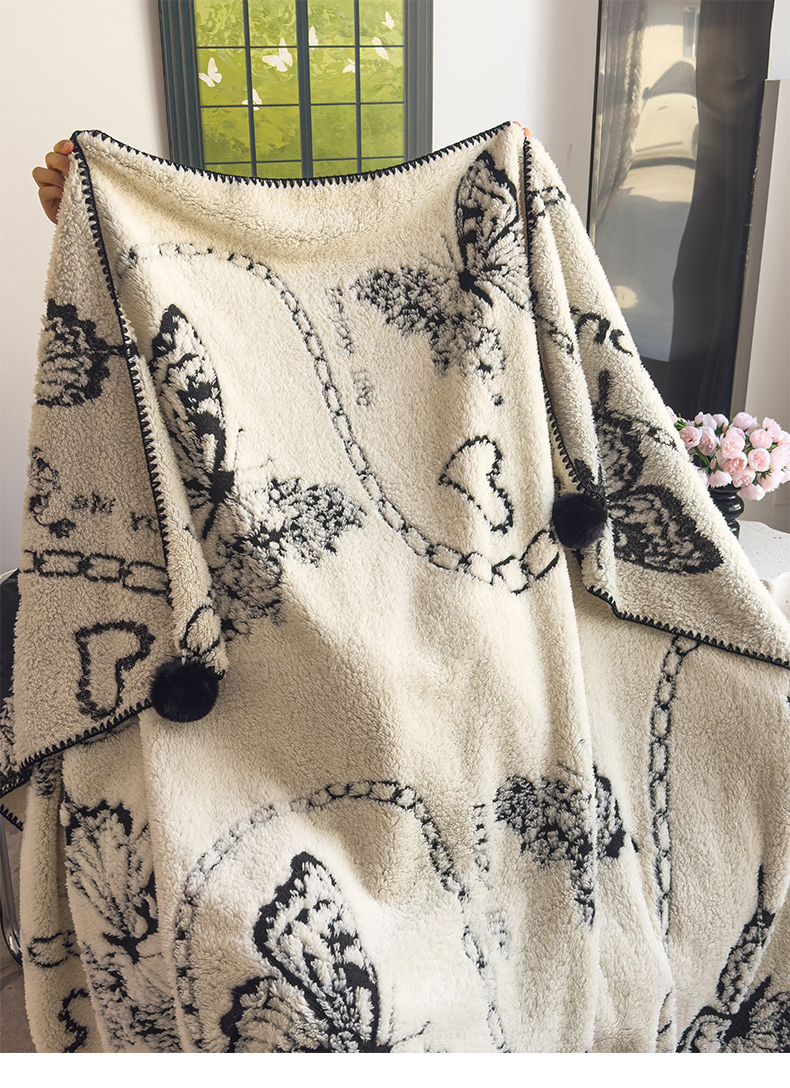 商品名称:潮邦创意家居 2025新款提花色织三角针工艺球毯毛毯毯子墨绒秘境 墨绒秘境系列-蝶韵