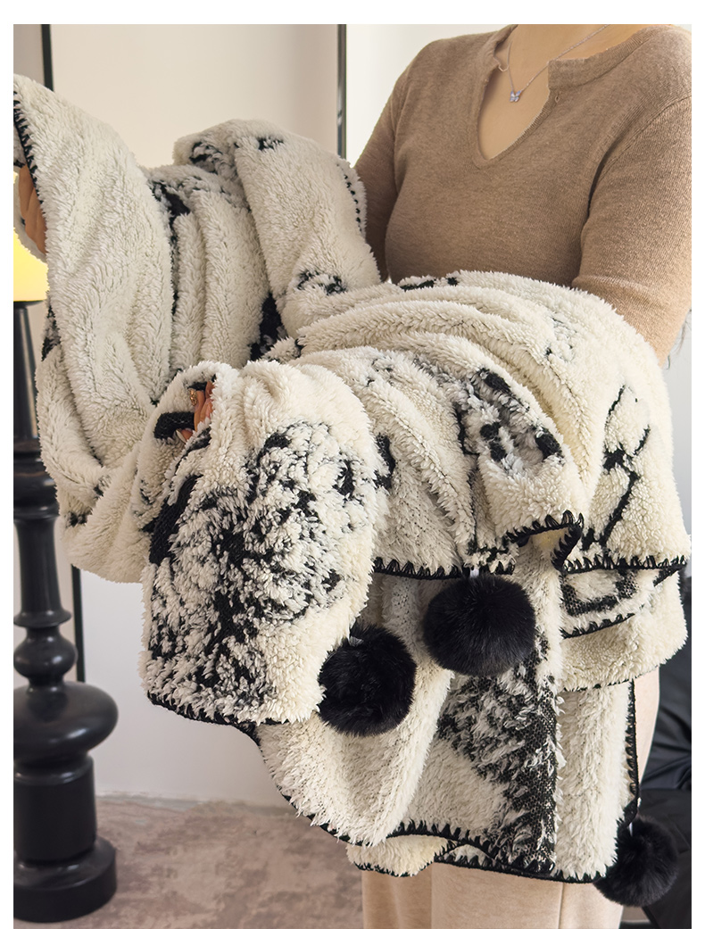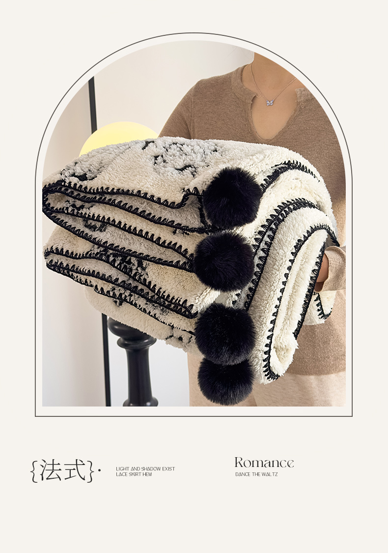 潮邦创意家居 2025新款提花色织三角针工艺球毯毛毯毯子墨绒秘境 墨绒秘境系列-蝶韵
