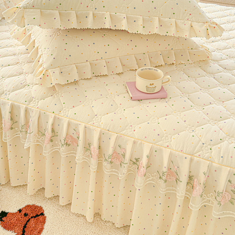 当前位置: 91家纺网 > 商品网购 > 床品套件 > 四件套 > 其它四件套 > 雨田家纺 2025新款夹棉蕾丝床裙四件套 茉莉花园