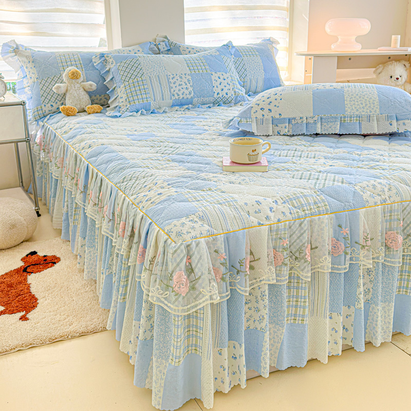 (总)雨田 2021新款韩版双边夹棉床裙三件套,春之絮,极简生活,情深似海,如意芳菲,小香风,星光飘絮,玉兰