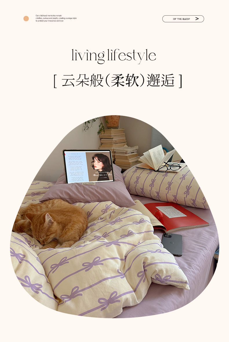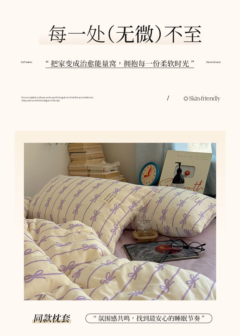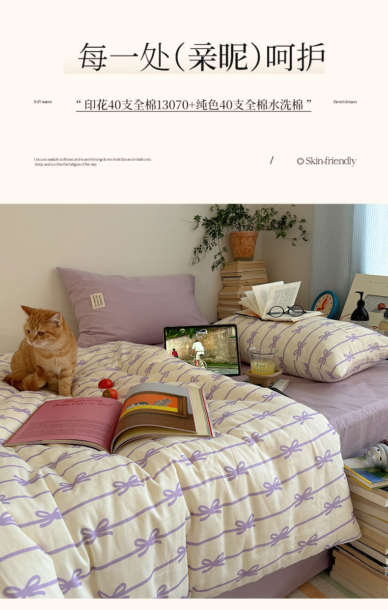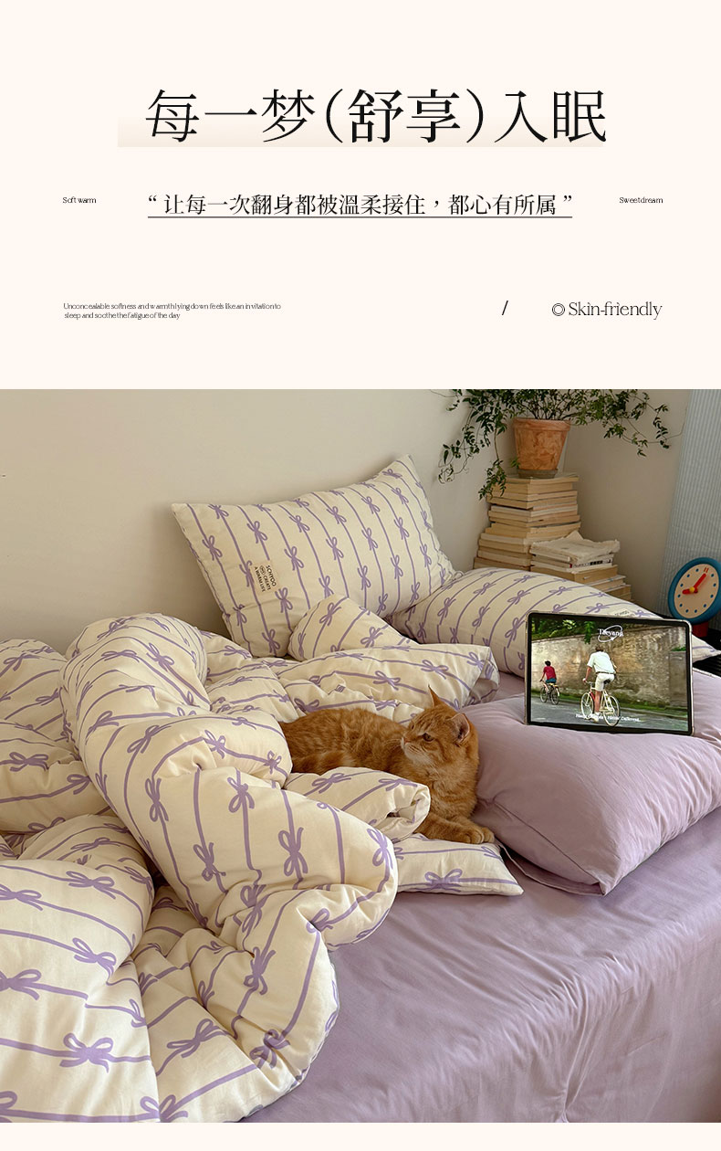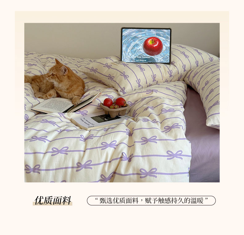 商品名称:六巷胡同 2026春夏新款INS博主风韩系蝴蝶结全棉四件套 丝带蝴蝶结-紫