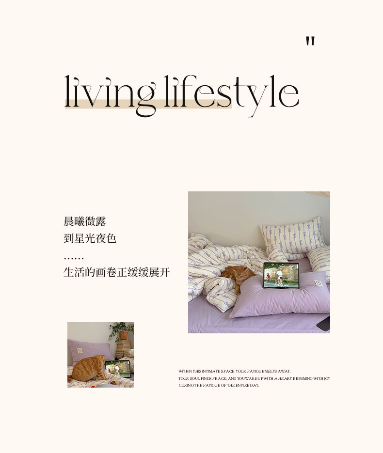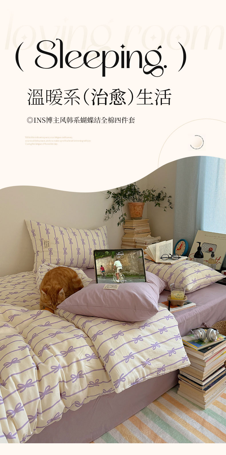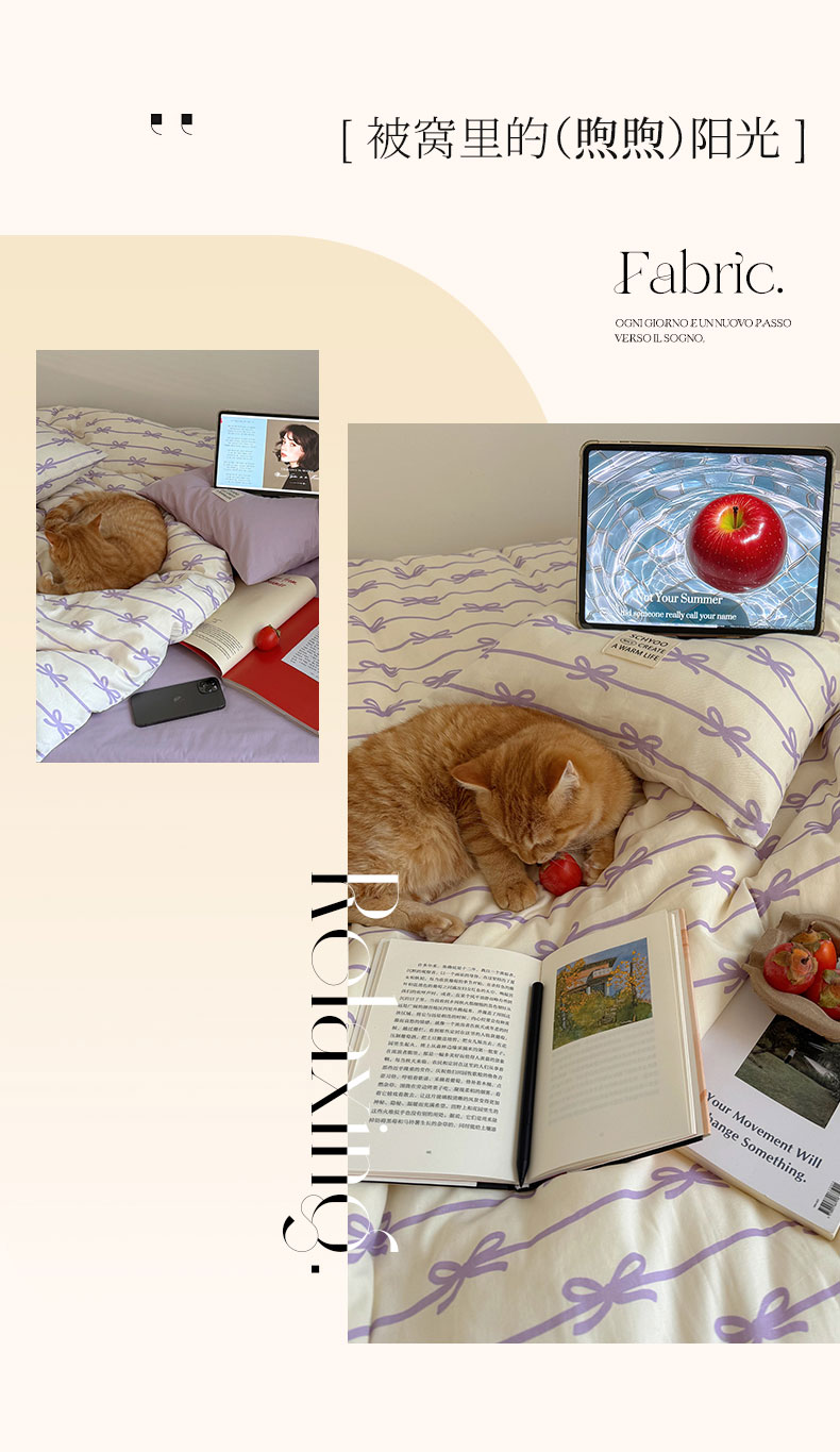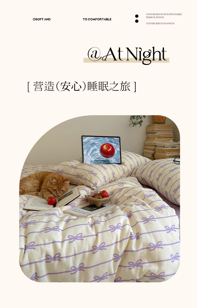 商品名称:六巷胡同 2026春夏新款INS博主风韩系蝴蝶结全棉四件套 丝带蝴蝶结-紫