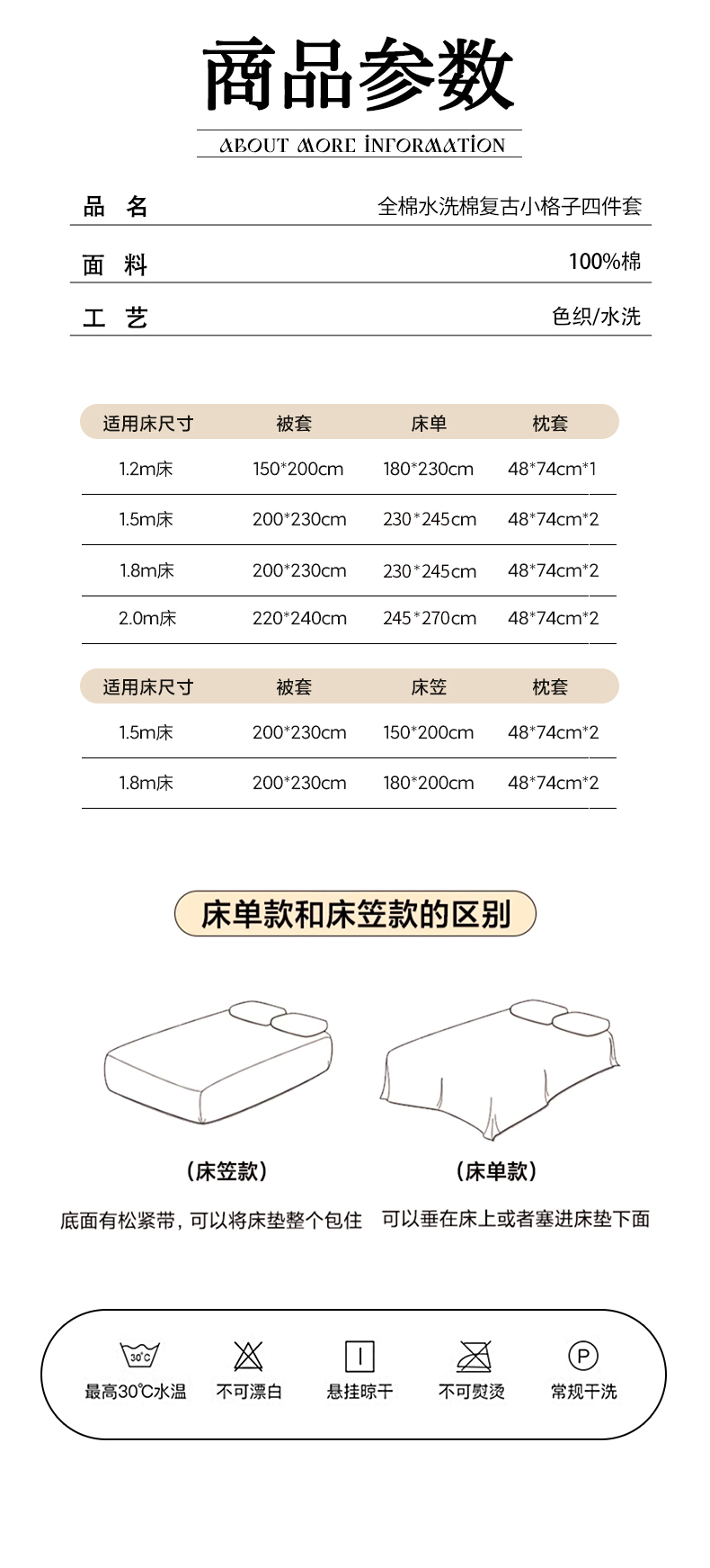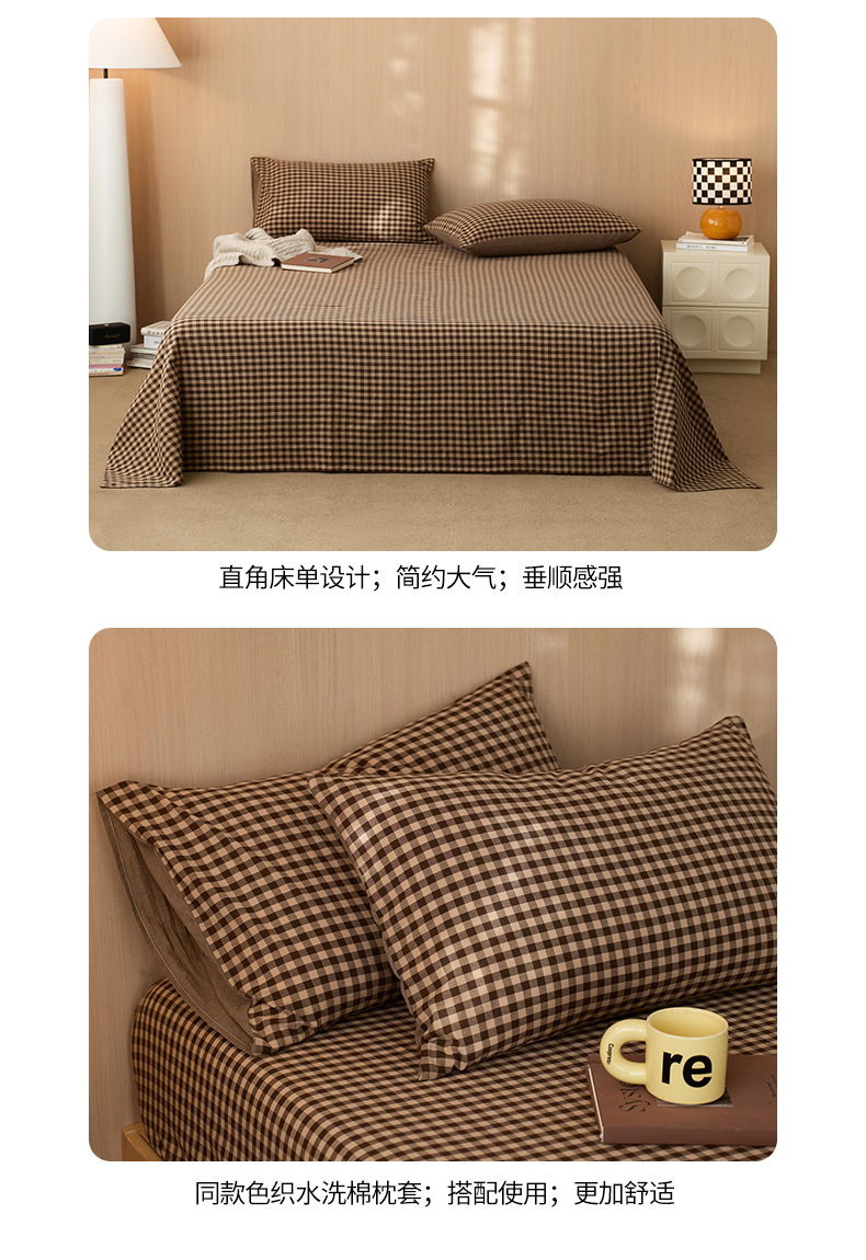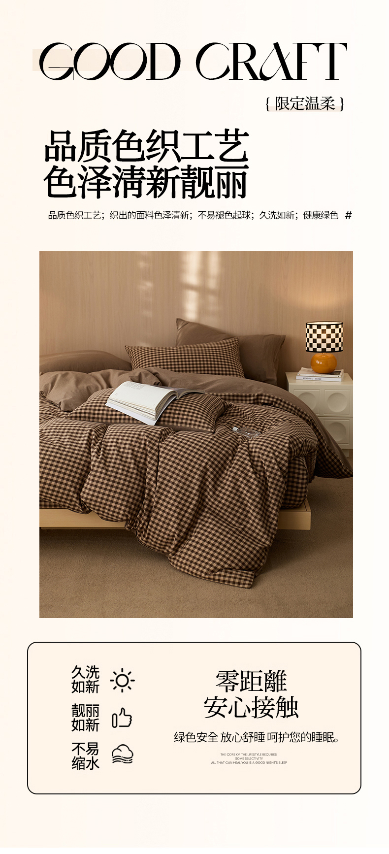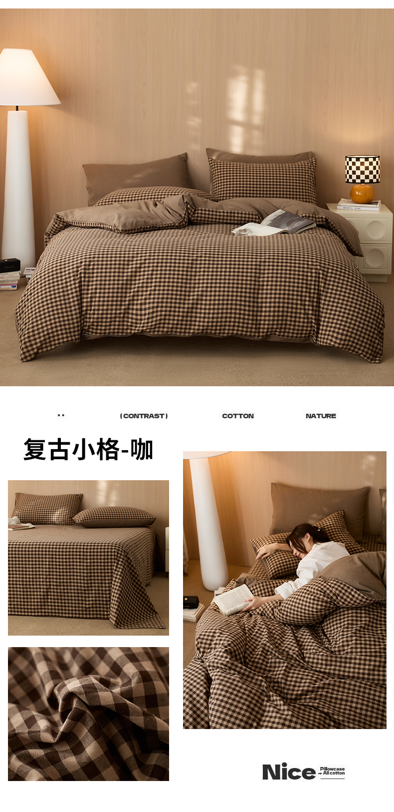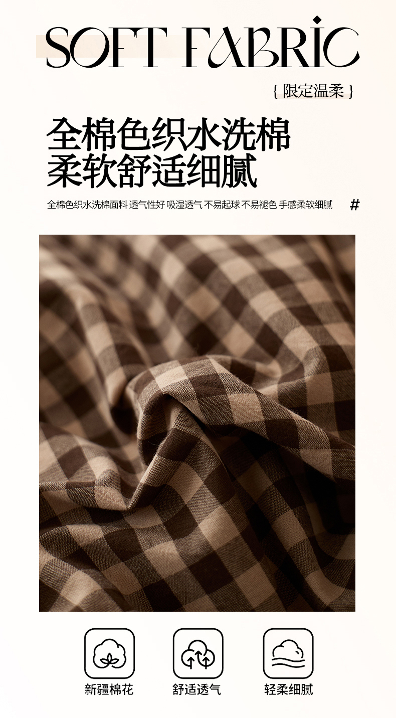商品名称:启程家纺 2026新款纯棉水洗棉复古小格多规格系列单品被套 复古小格-咖