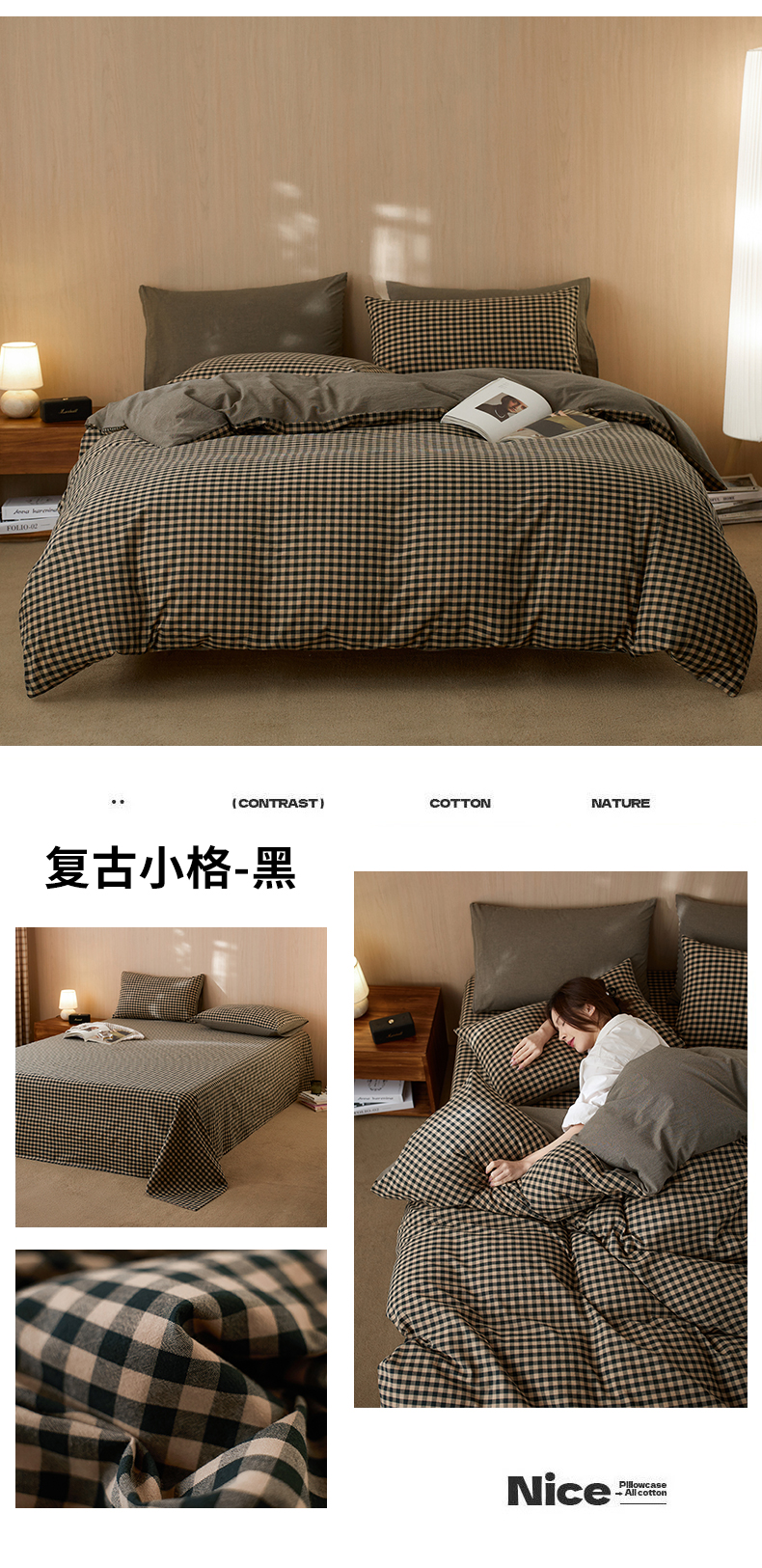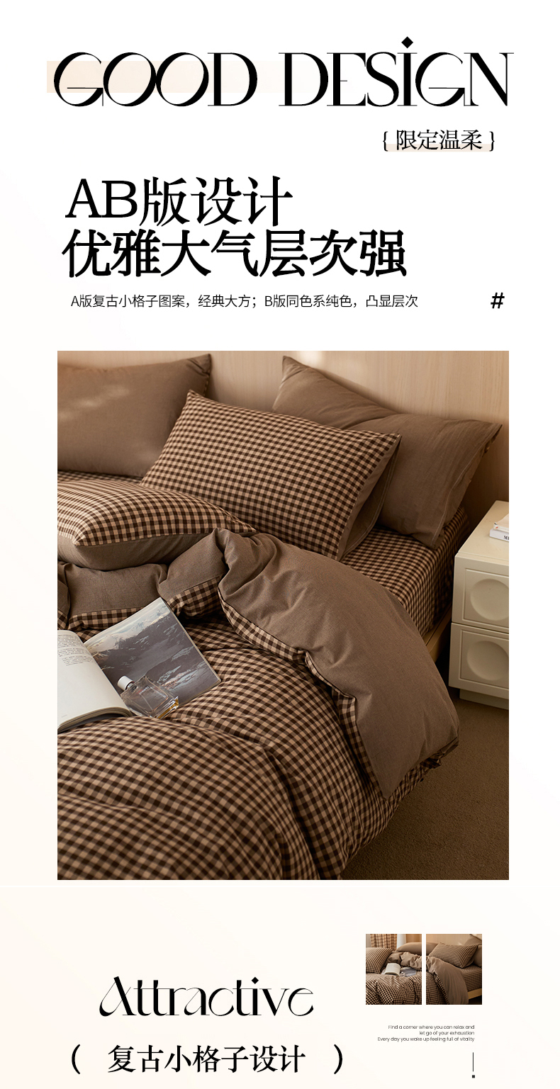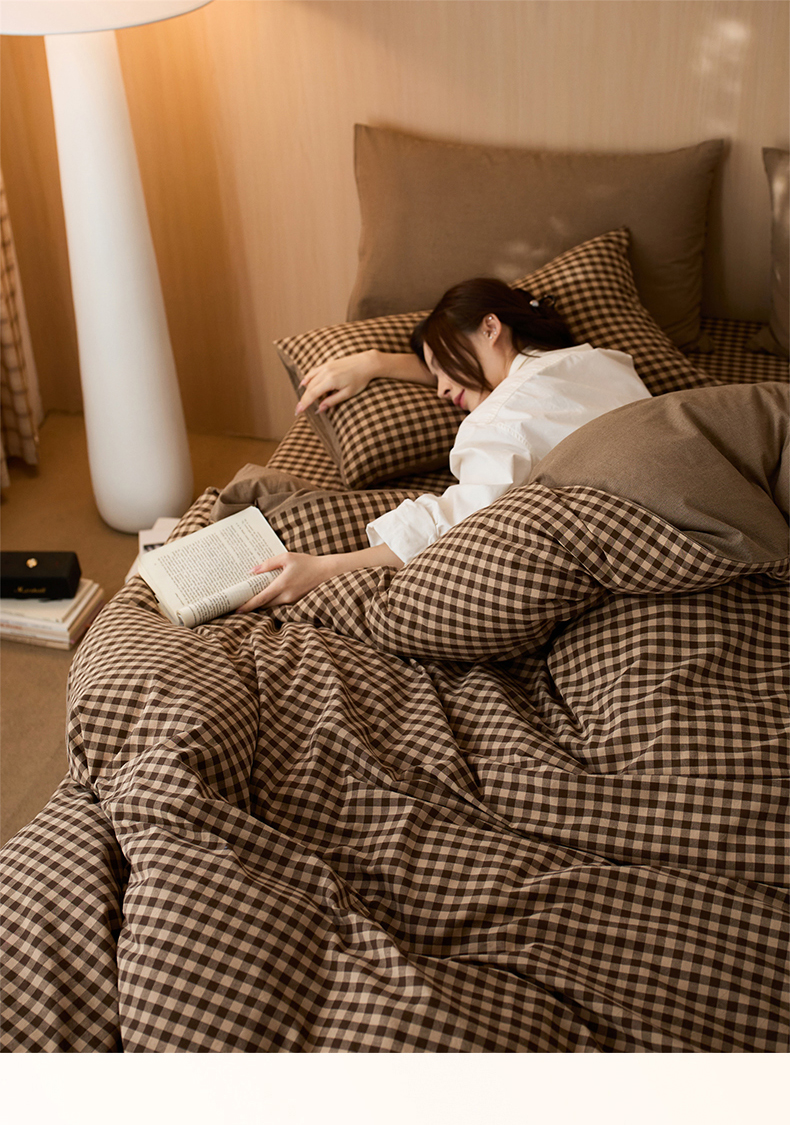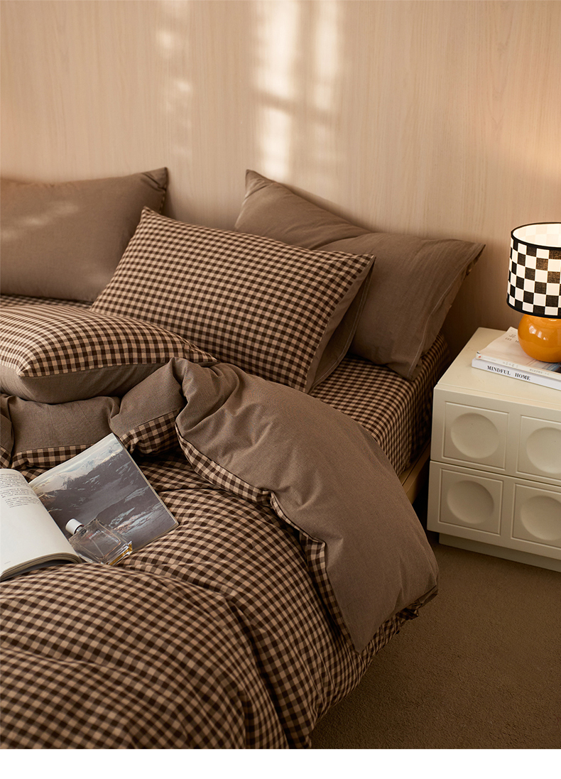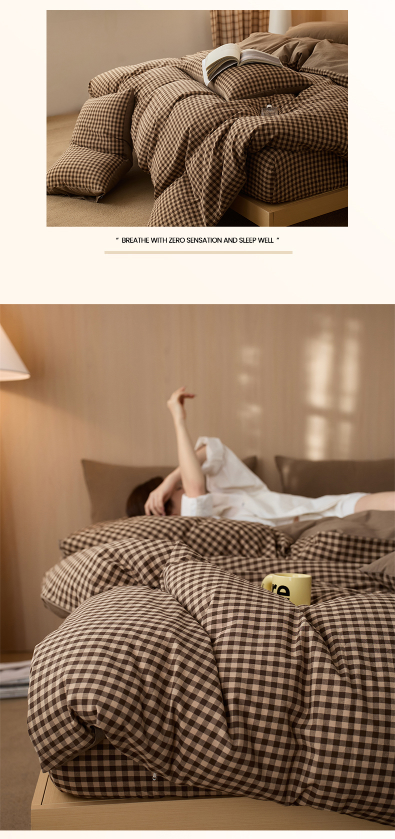 商品名称:启程家纺 2026新款纯棉水洗棉复古小格多规格系列单品被套 复古小格-咖