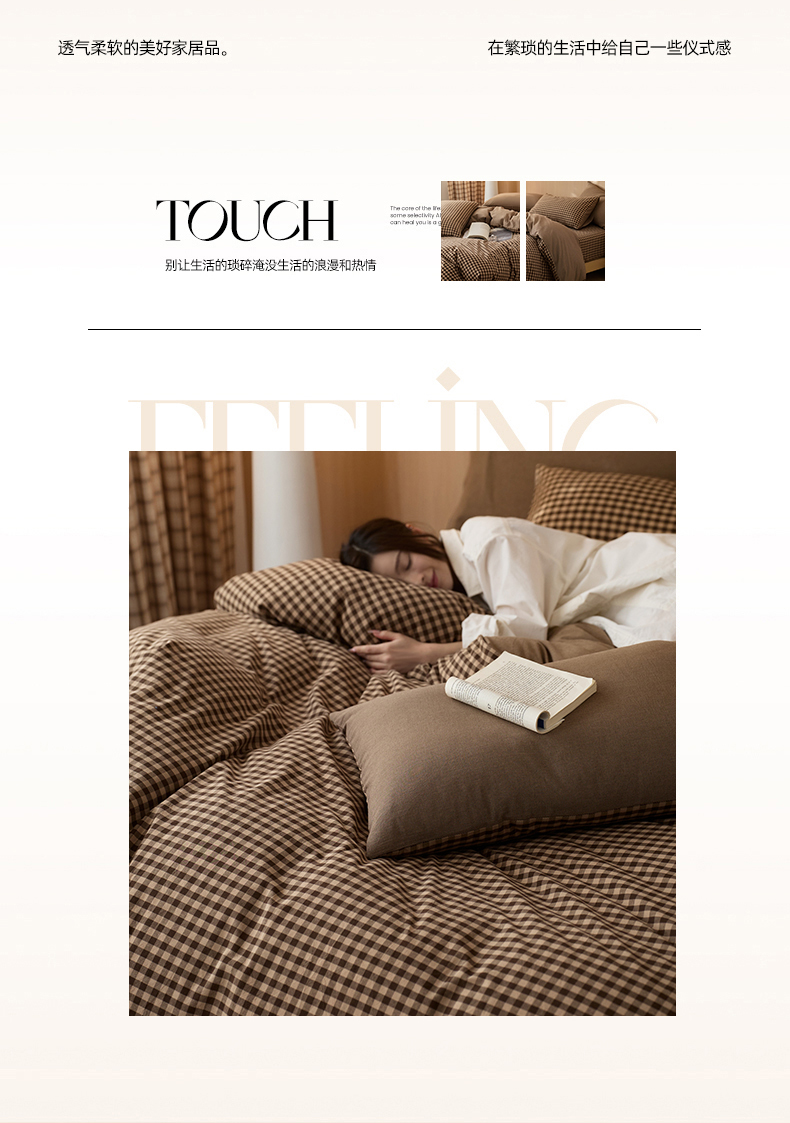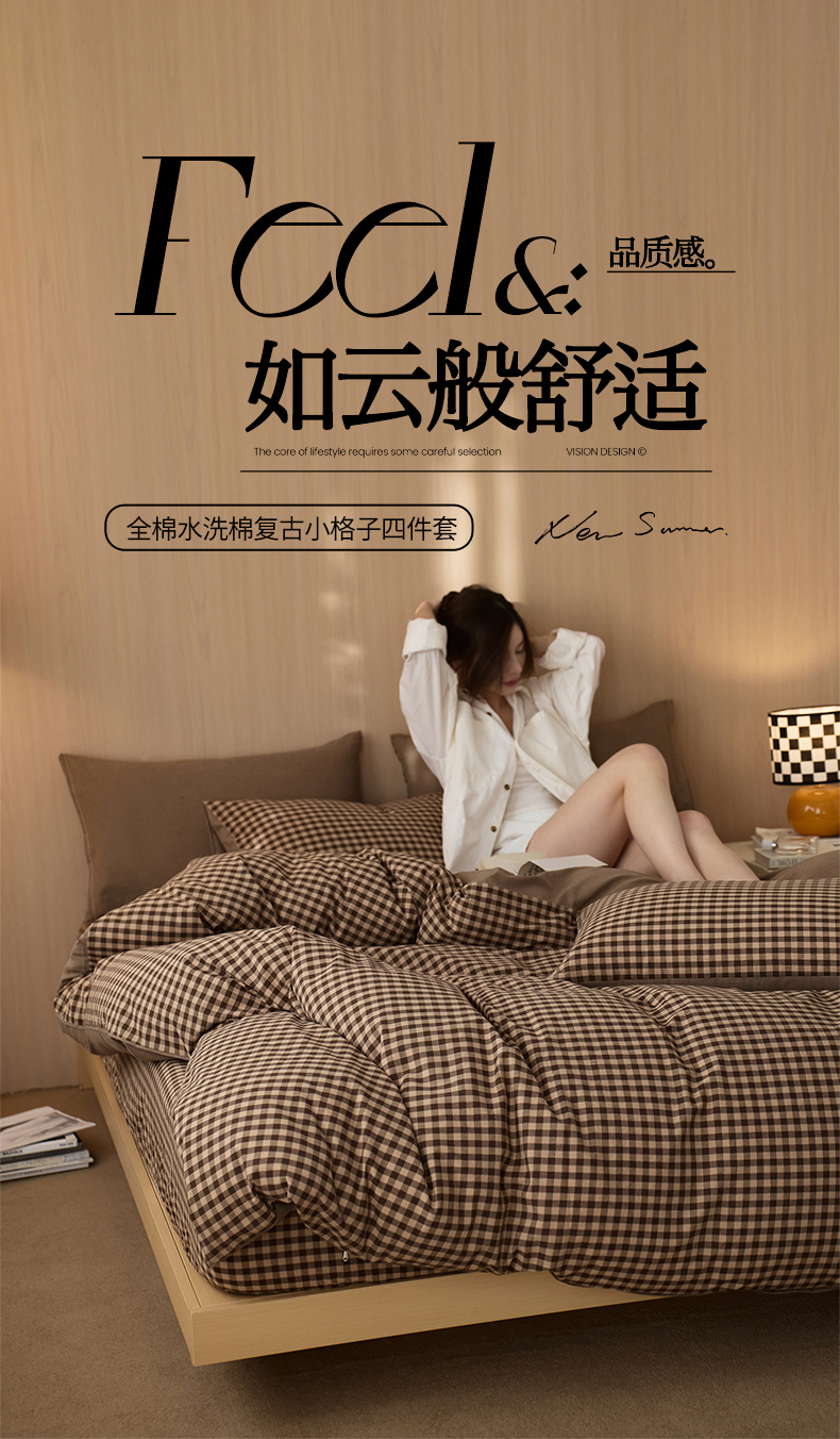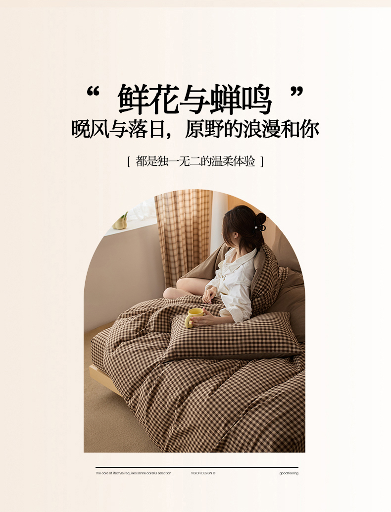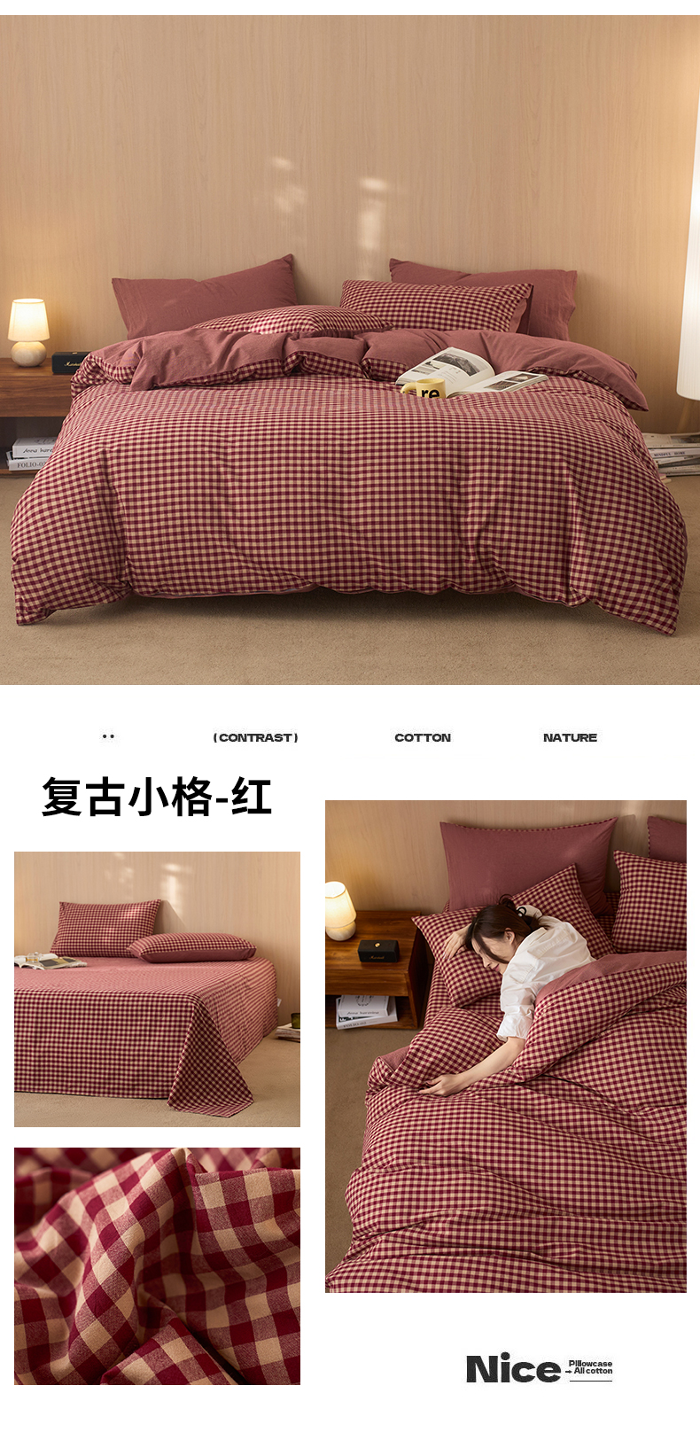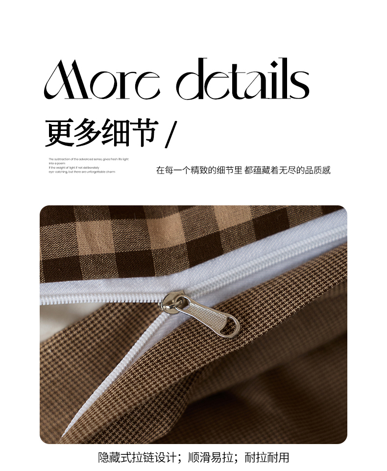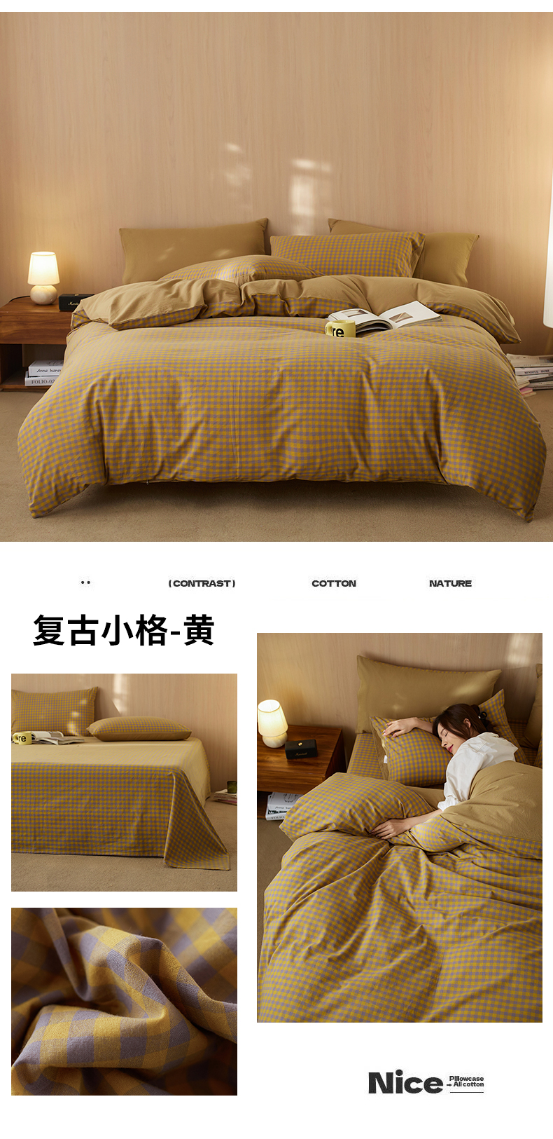 商品名称:启程家纺 2026新款纯棉水洗棉复古小格多规格系列单品被套 复古小格-咖