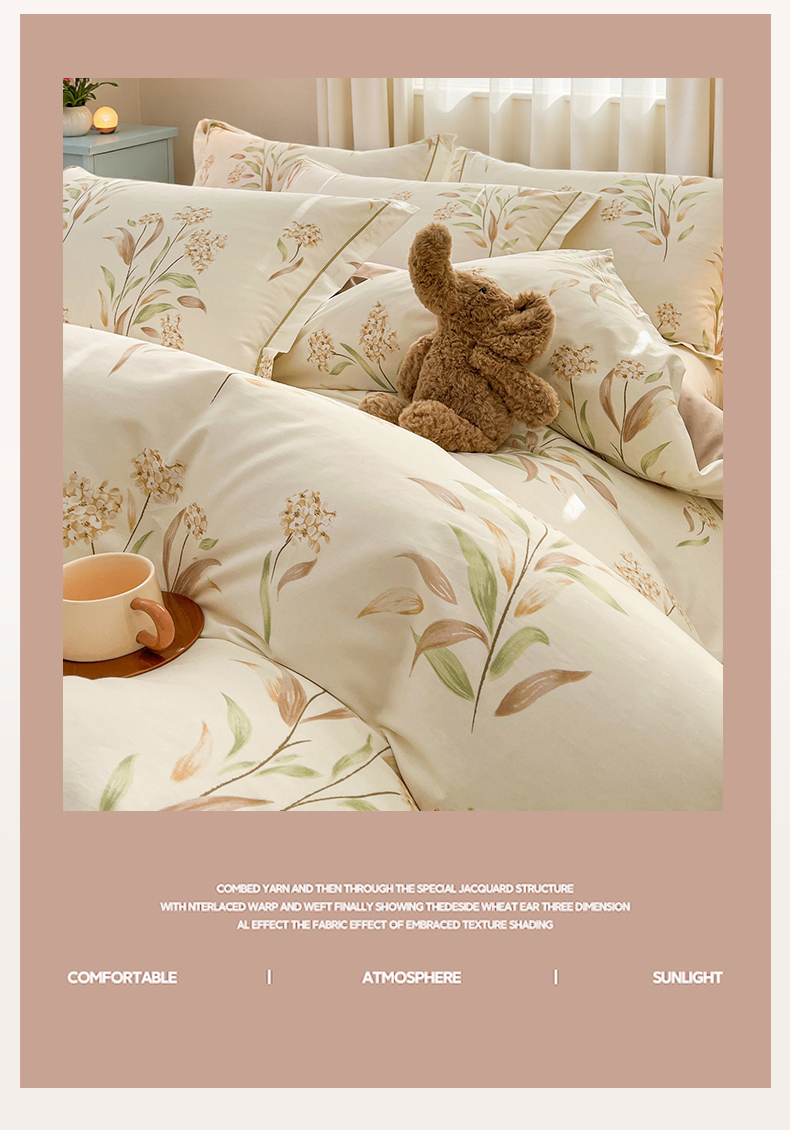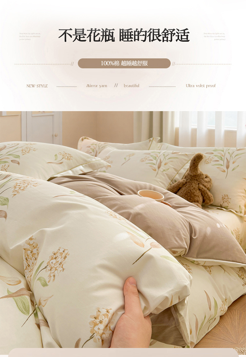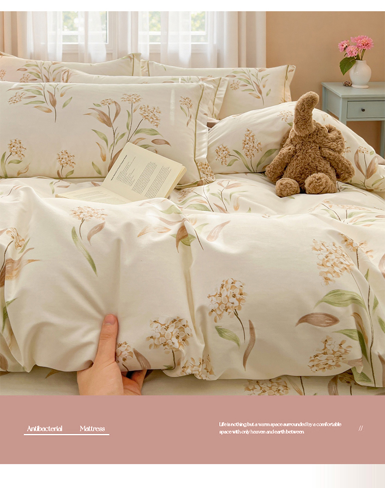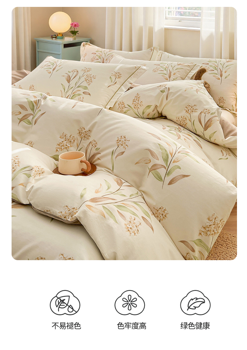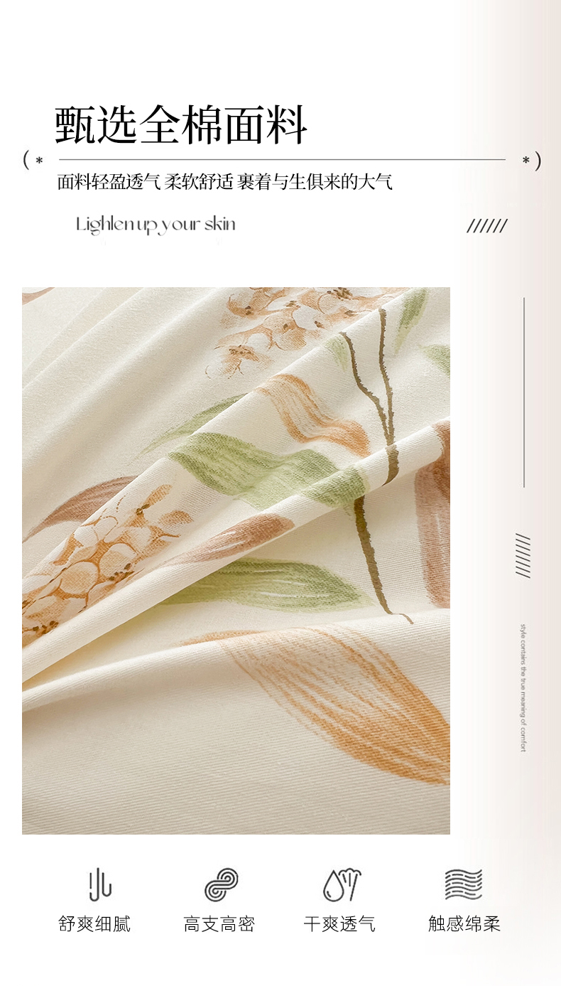 当前位置: 91家纺网 > 商品网购 > 床品套件 > 四件套 > 全棉普通四件套 > 名优家纺 2026新款60S13374高支密全棉印花纯色四件套 森野花簇-绿