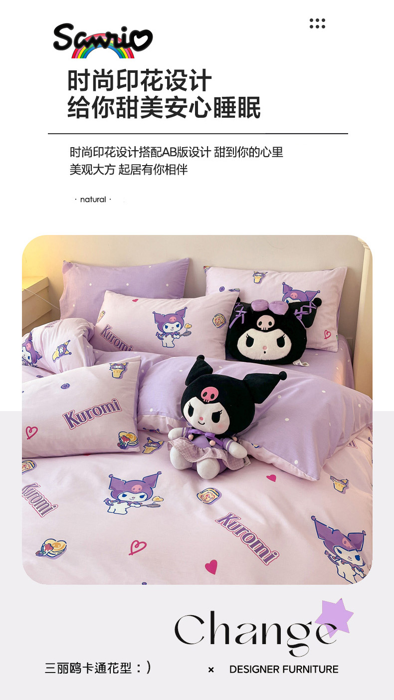 当前位置: 91家纺网 > 商品网购 > 床品套件 > 四件套 > 全棉普通四件套 > 暮思家居 2026新款正版授权三丽鸥全棉纯棉四件套系列-第一批 甜甜库洛米