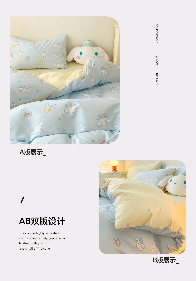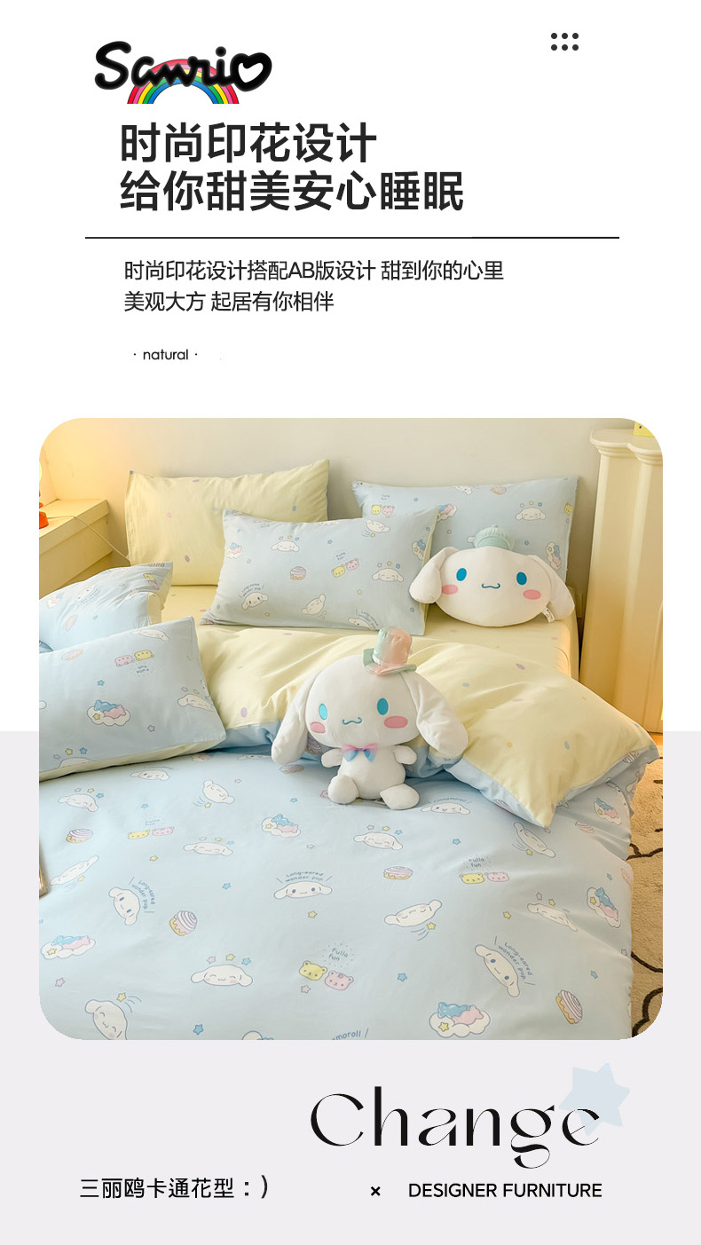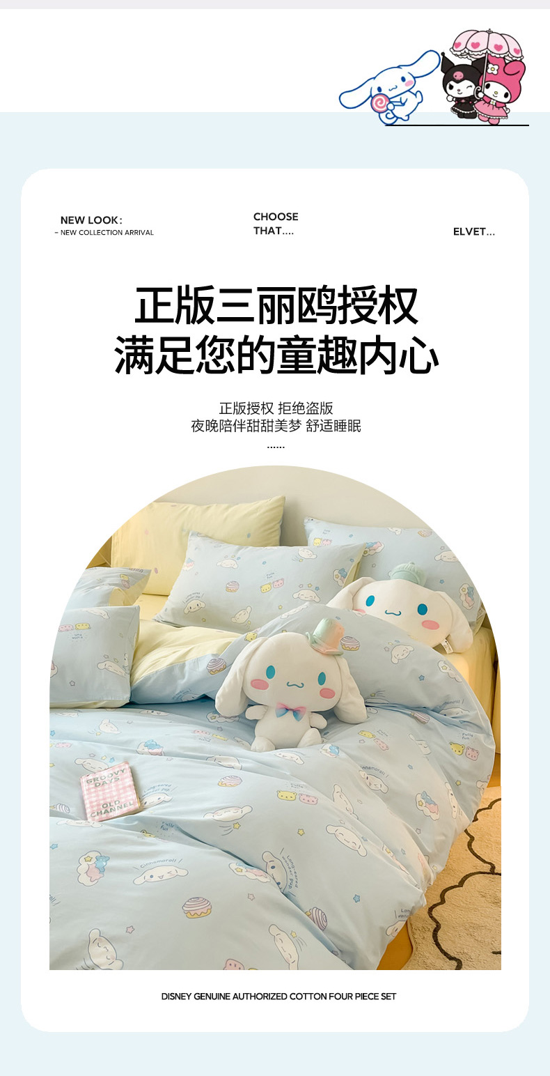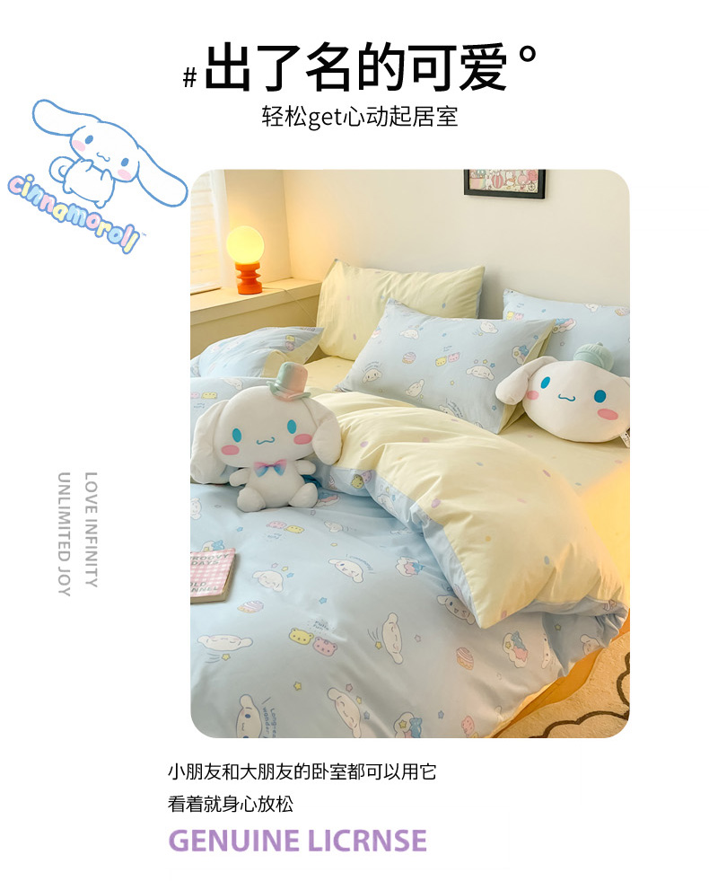 当前位置: 91家纺网 > 商品网购 > 床品套件 > 四件套 > 全棉普通四件套 > 暮思家居 2026新款正版授权三丽鸥全棉纯棉四件套系列-第一批 云朵大耳狗