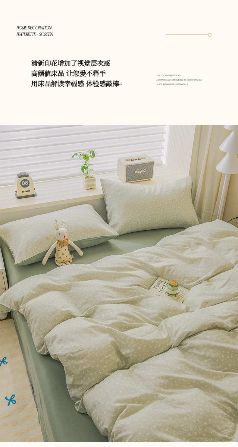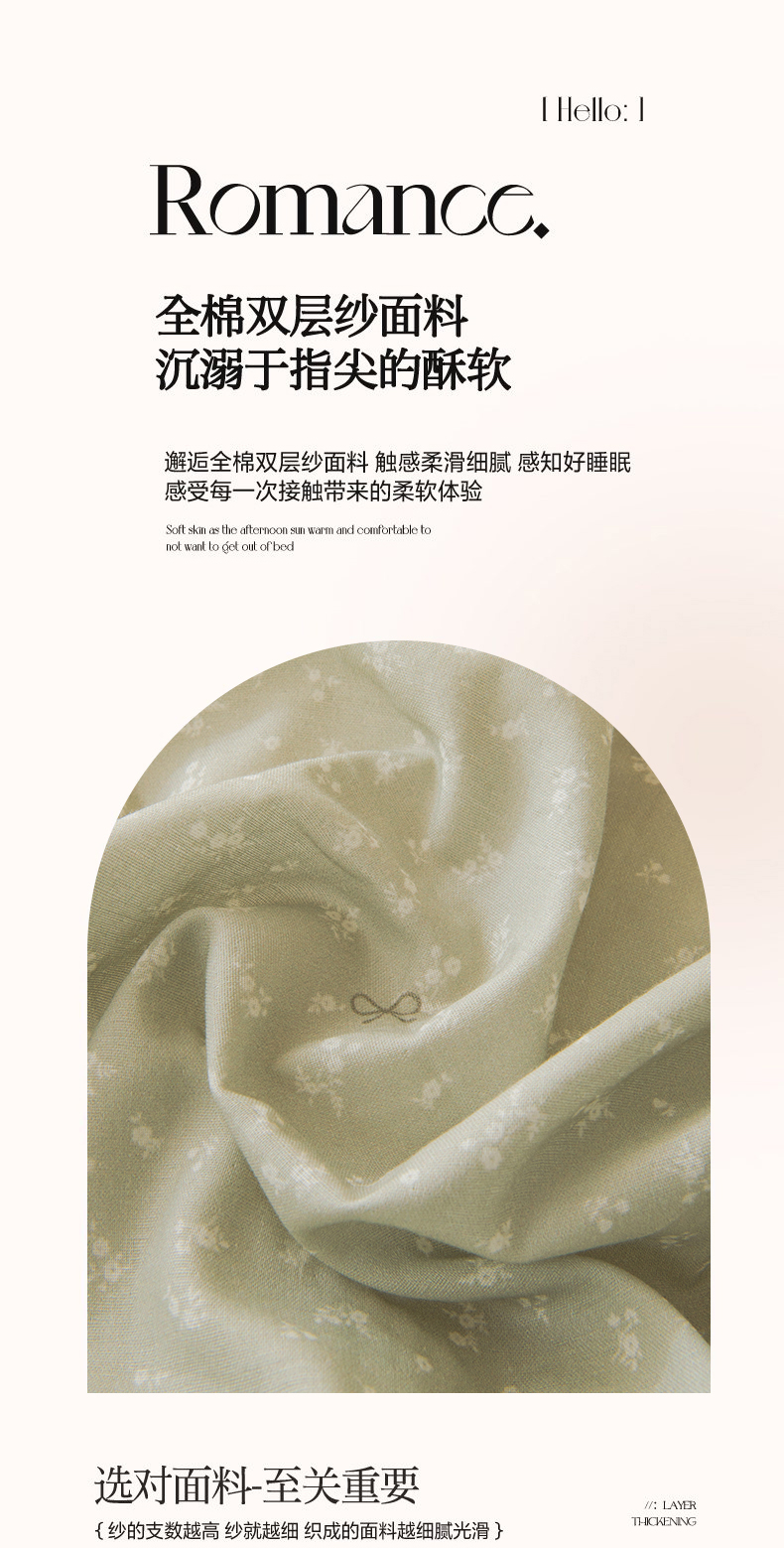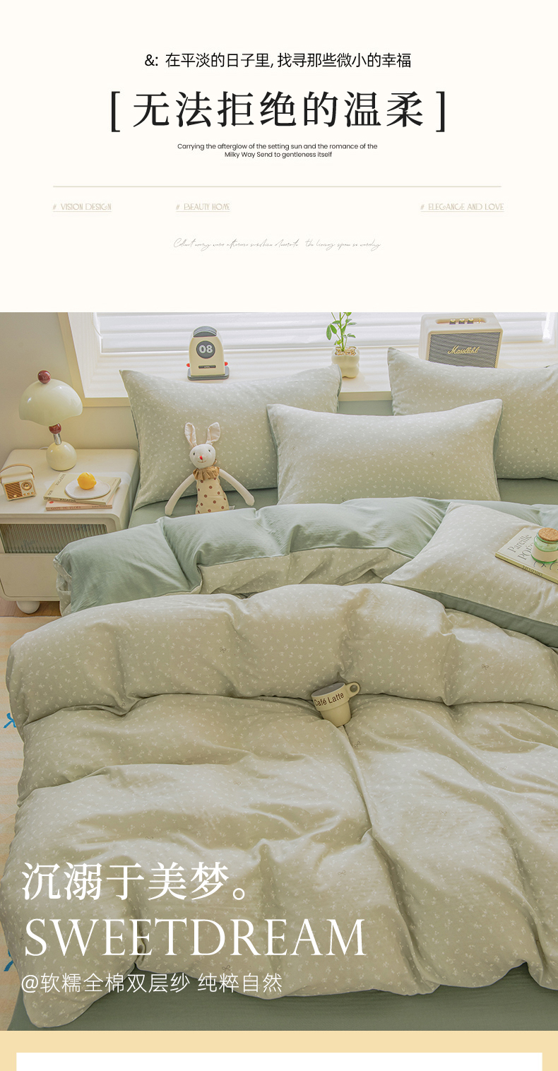 雯雨家纺 2026春夏新款A类全棉有氧双层纱印花简约款四件套 秘密花园