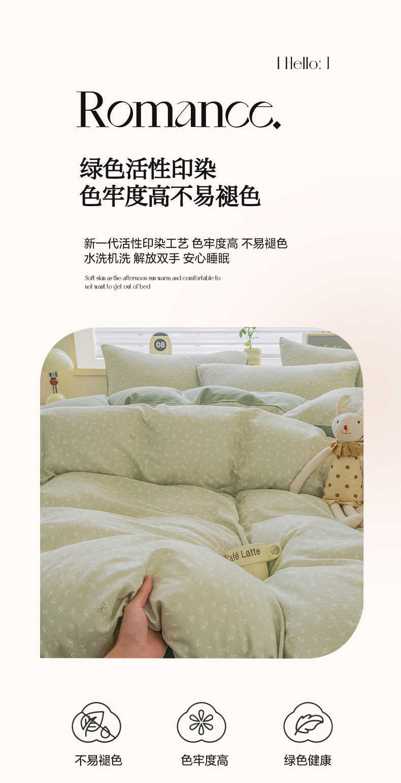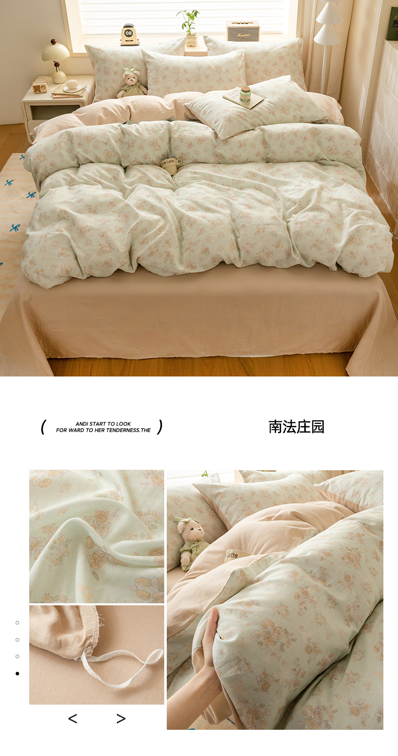 商品名称:雯雨家纺 2026春夏新款A类全棉有氧双层纱印花简约款四件套 秘密花园