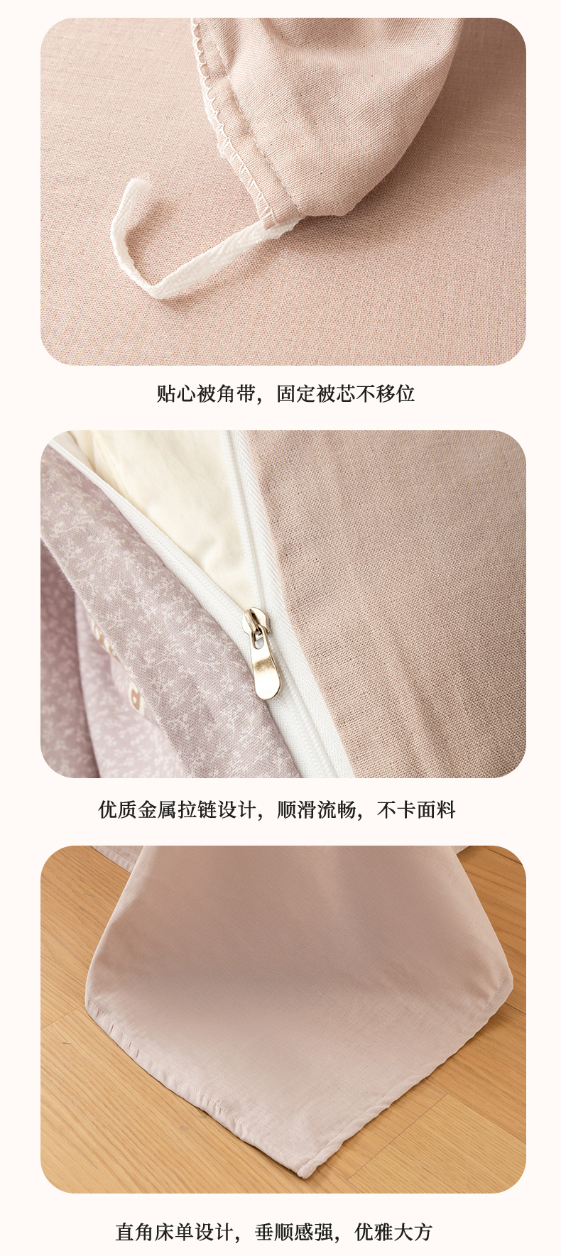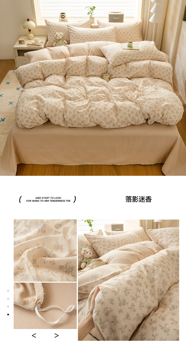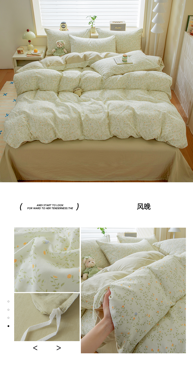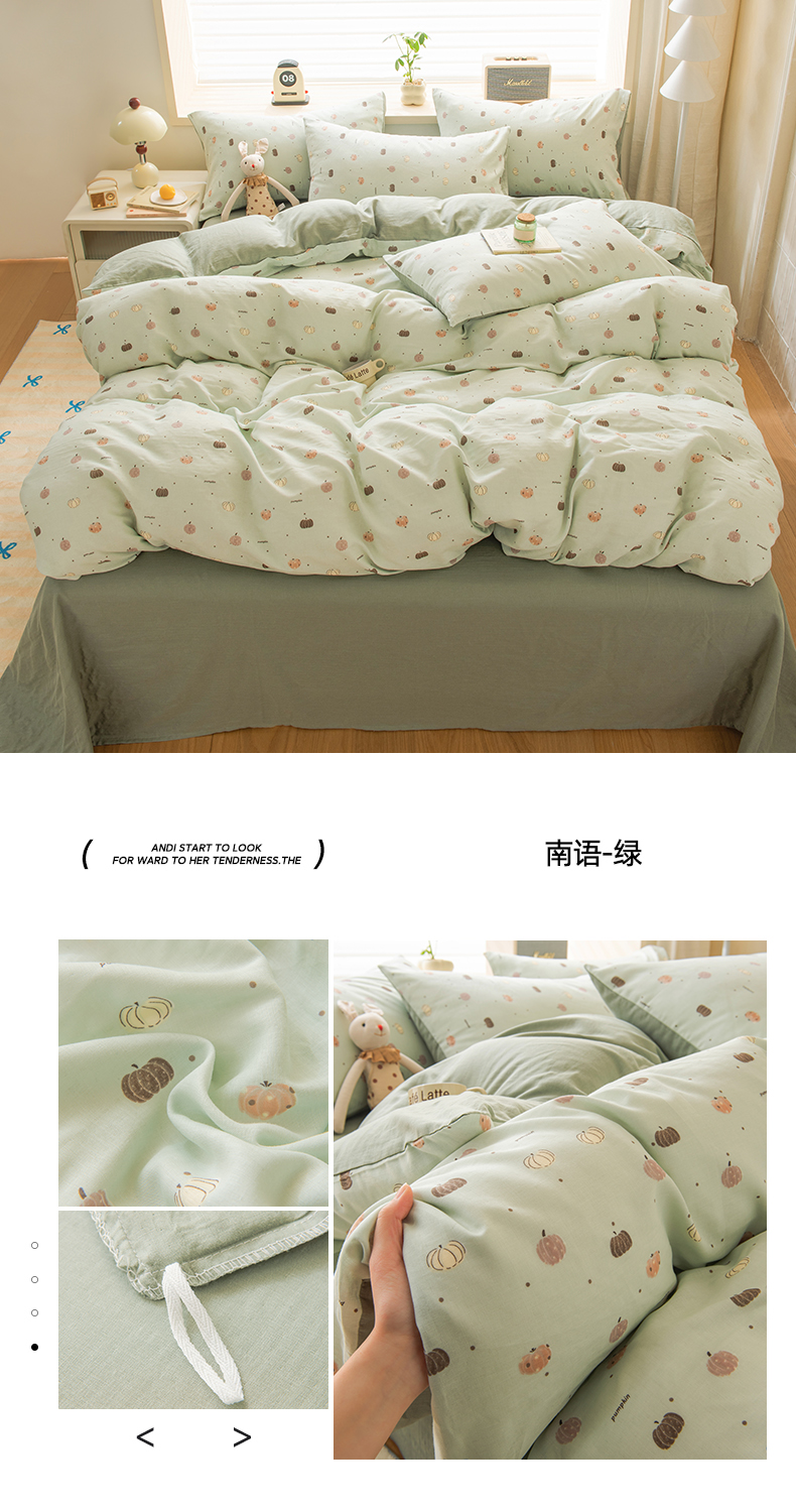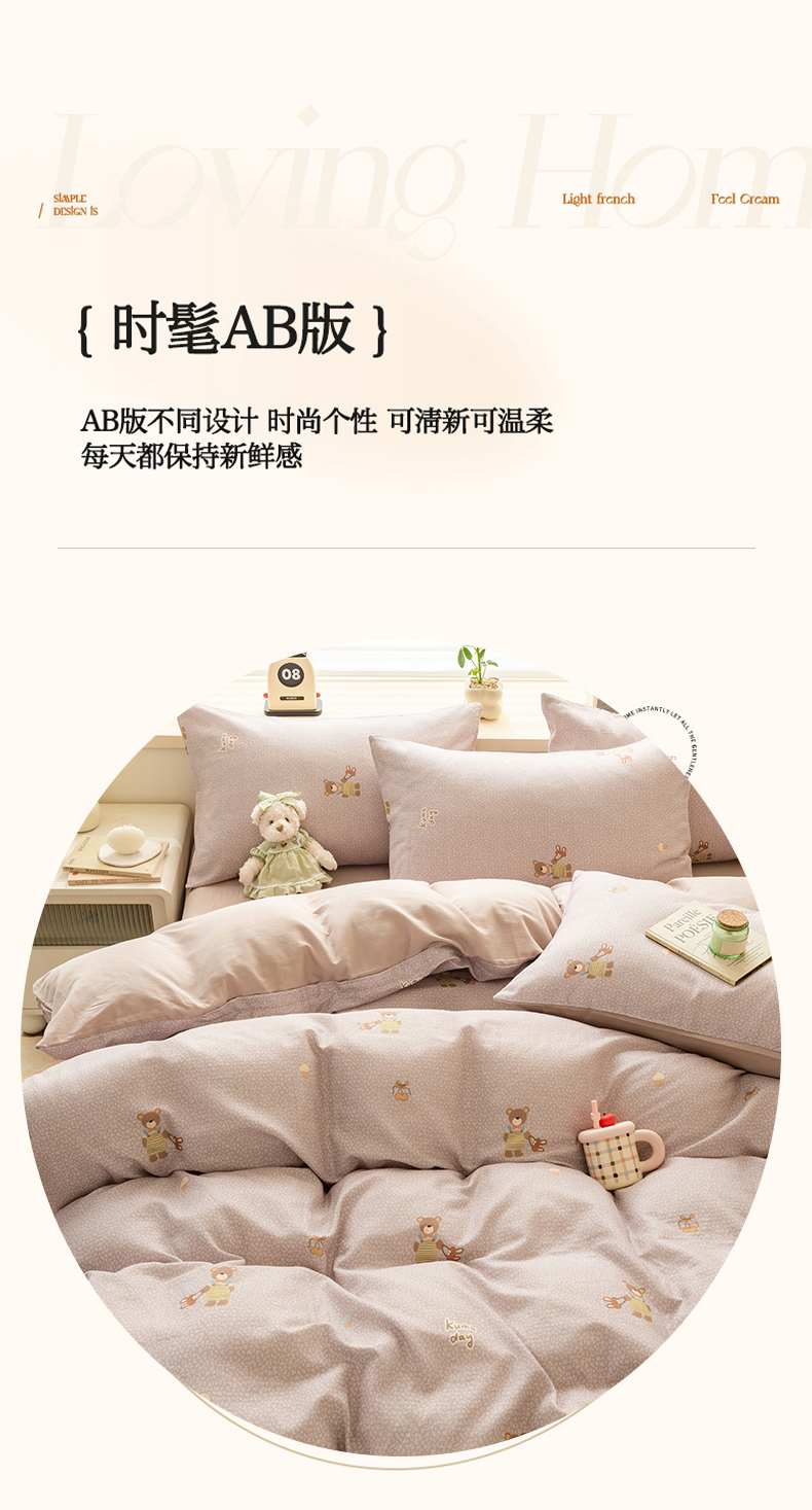 商品名称:雯雨家纺 2026春夏新款A类全棉有氧双层纱印花简约款四件套 朱迪熊