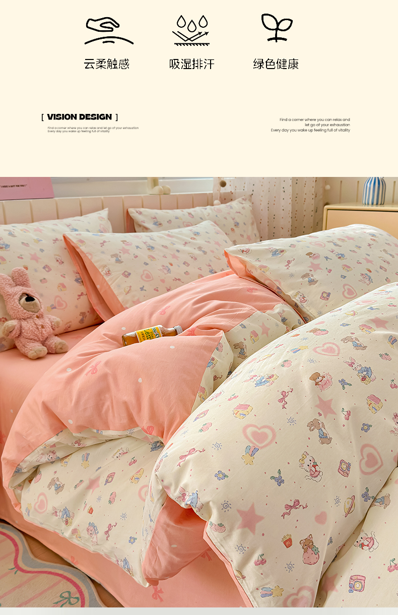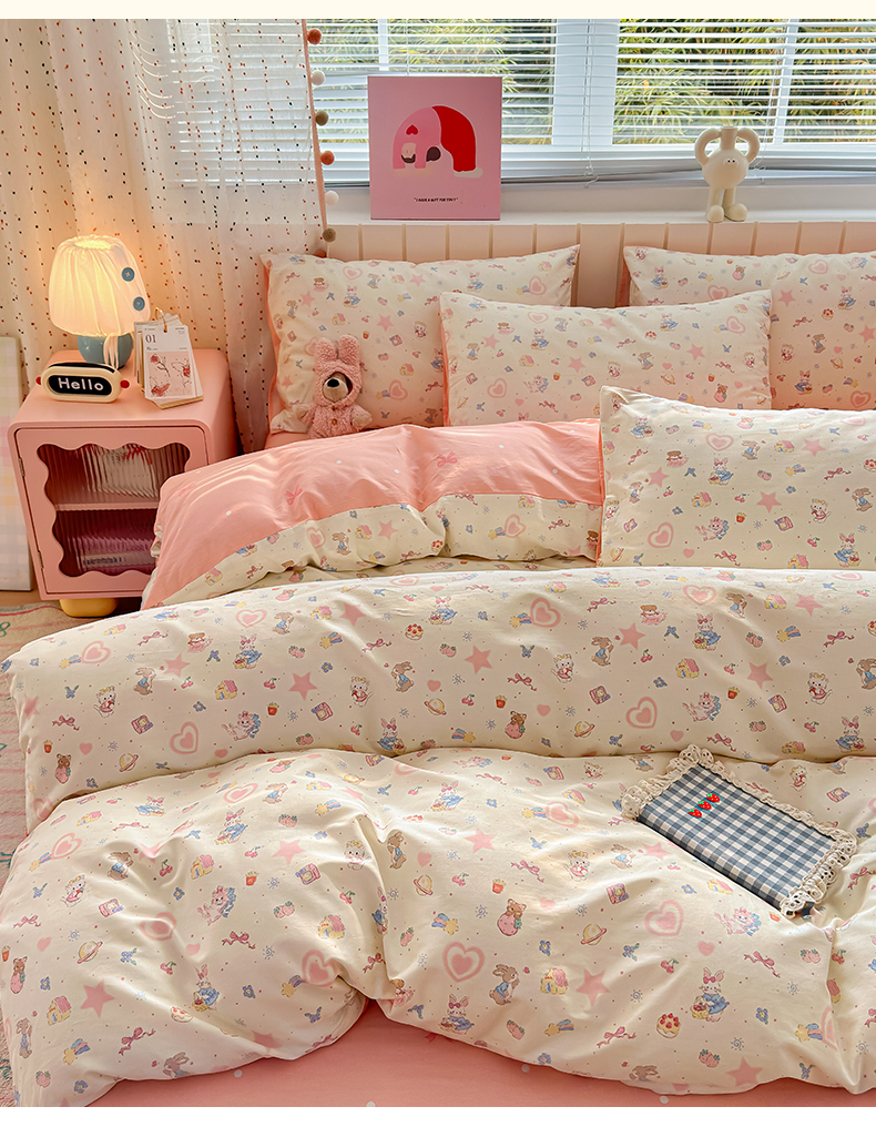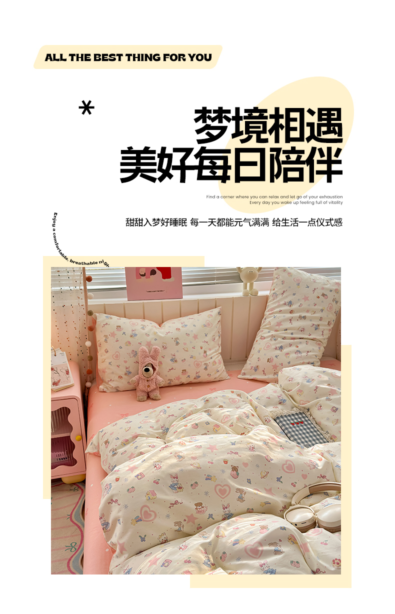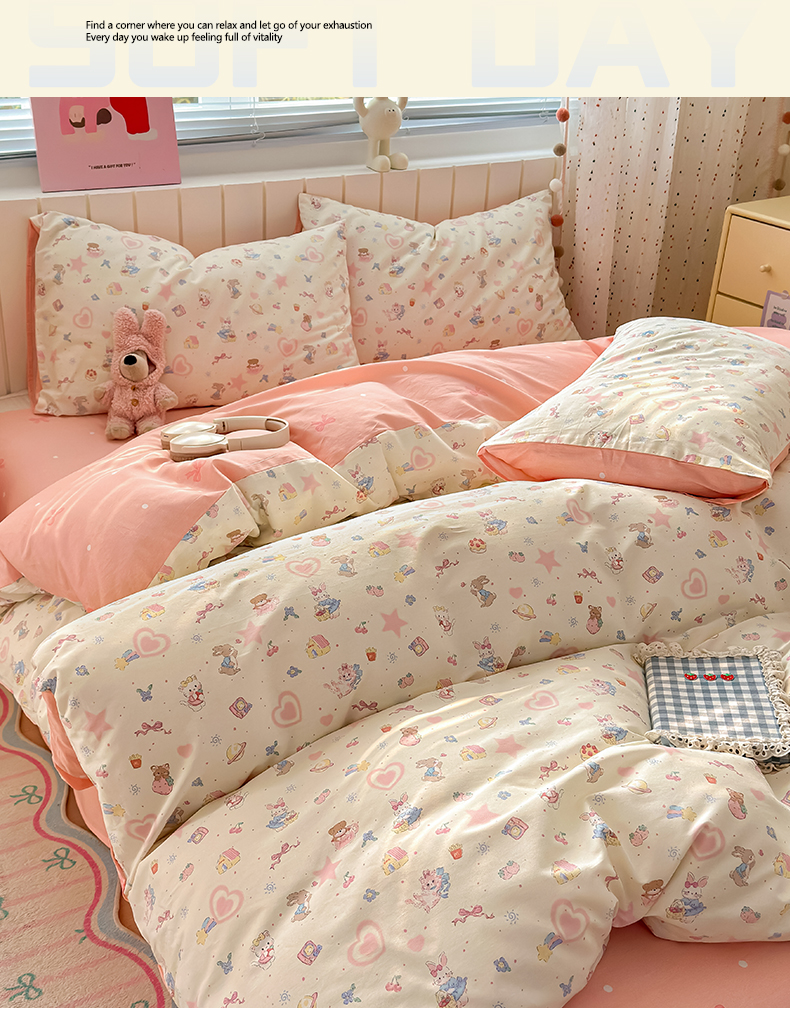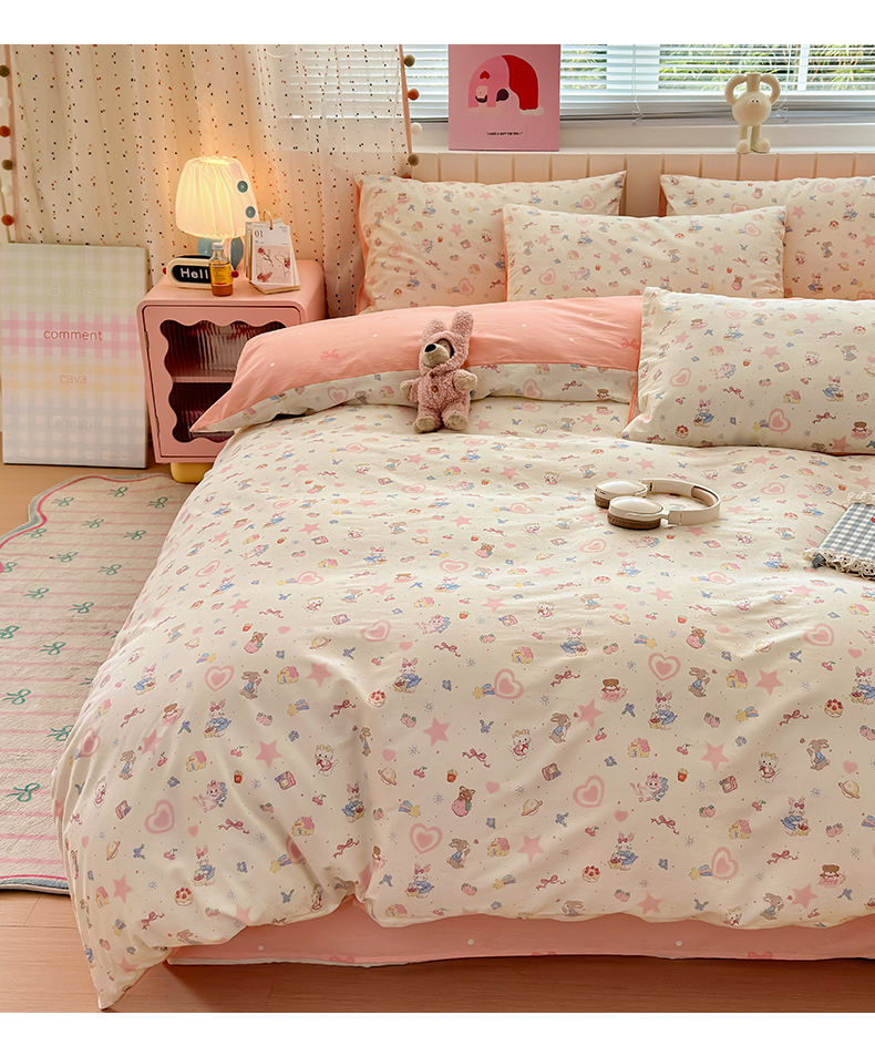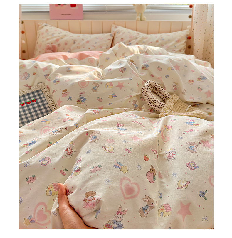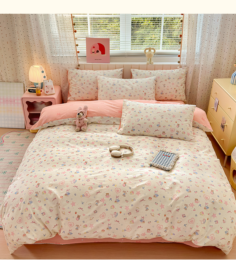 当前位置: 91家纺网 > 商品网购 > 床品套件 > 四件套 > 全棉普通四件套 > 清雅福 2026春夏新款INS小清新40支全棉13372四件套第二批 甜蜜花园
