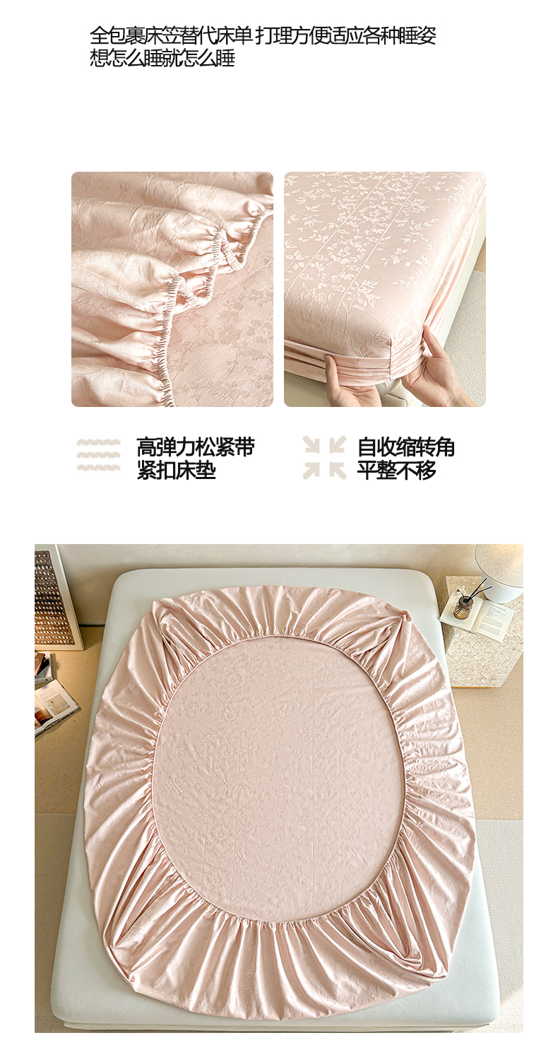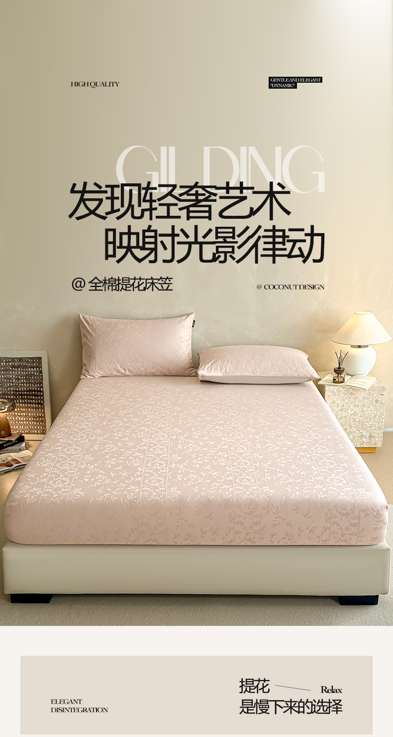 当前位置: 91家纺网 > 商品网购 > 床上用品 > 床笠 > 涵宸家纺 2026新款全棉提花里拉系列单床笠 床笠-沁语-粉金