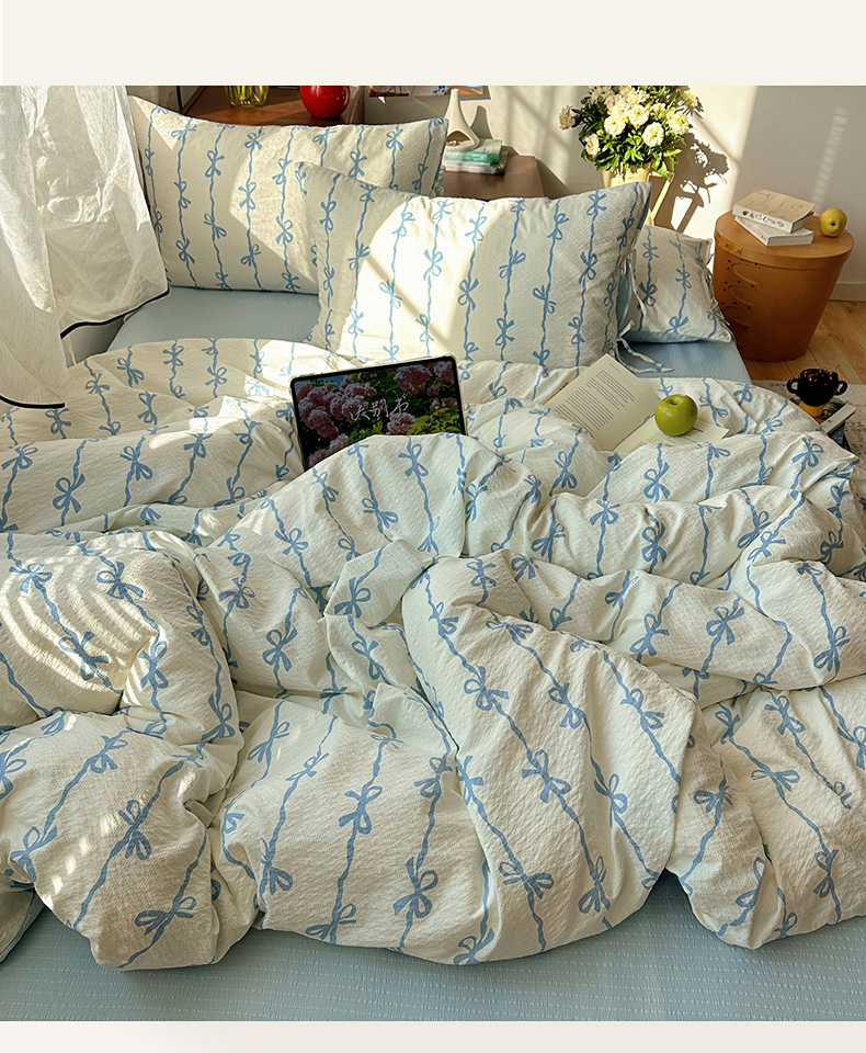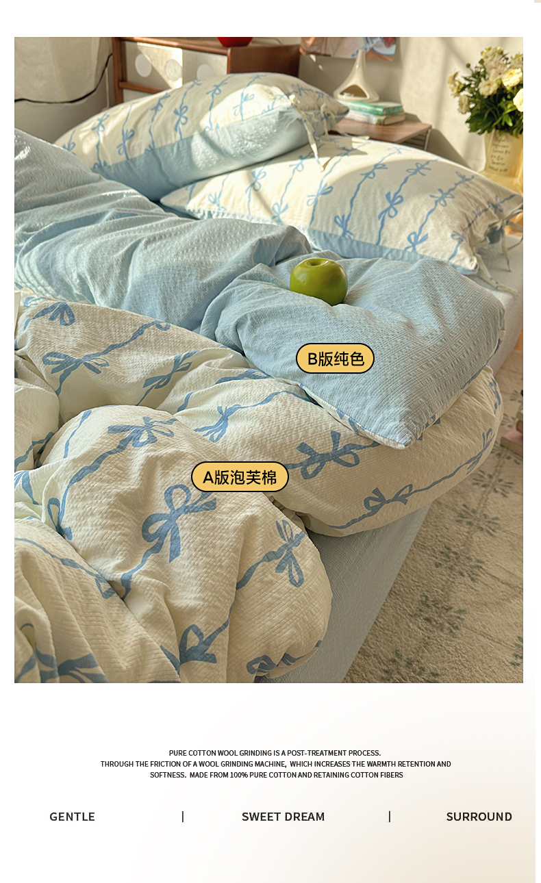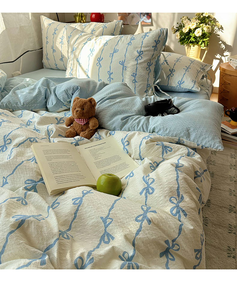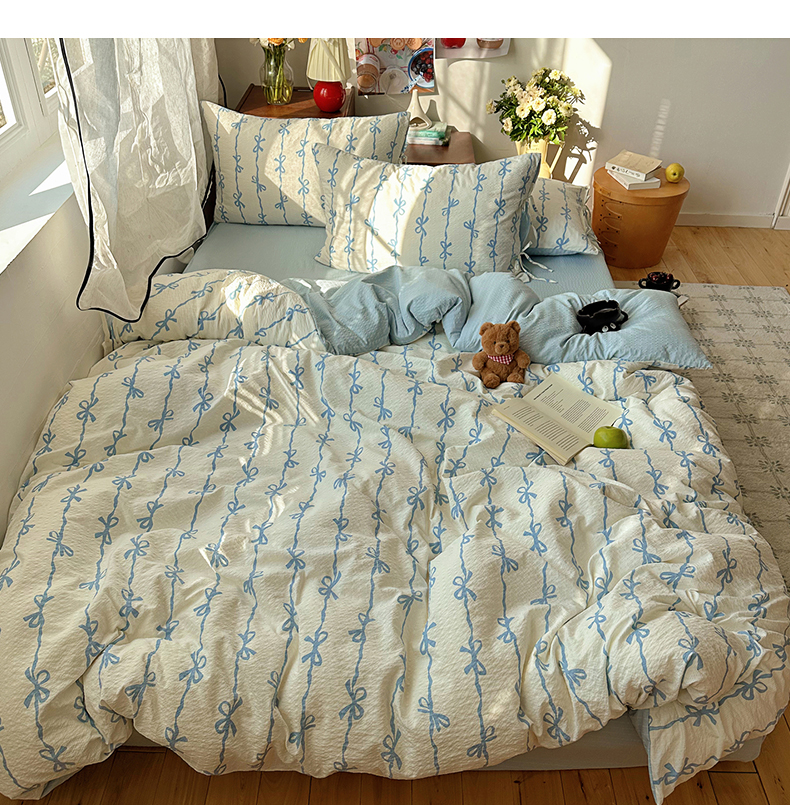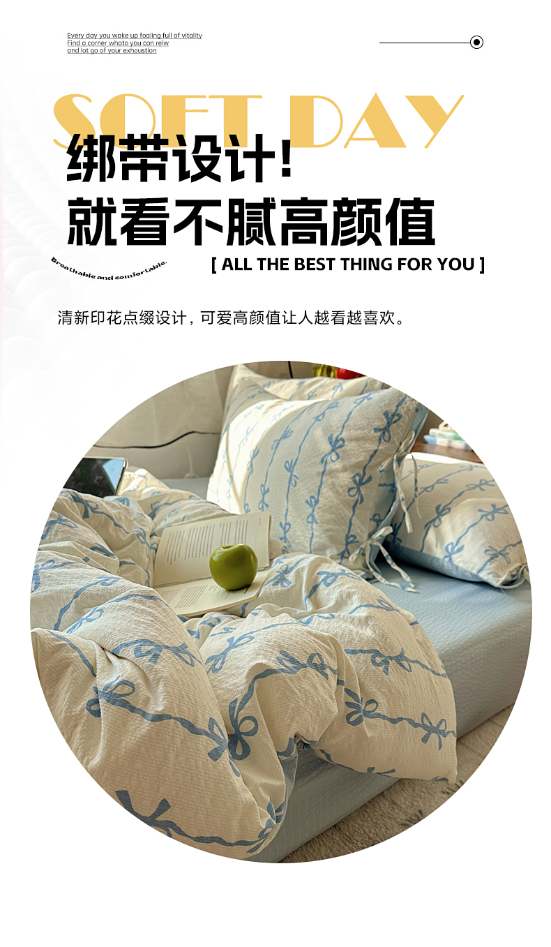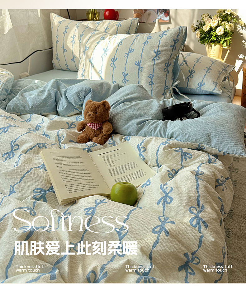 商品名称:(总)顾里家纺 2026新款韩系蝴蝶结系带泡芙棉套件四件套 会员-2元 可定制床笠+8元(小四件不做床笠)