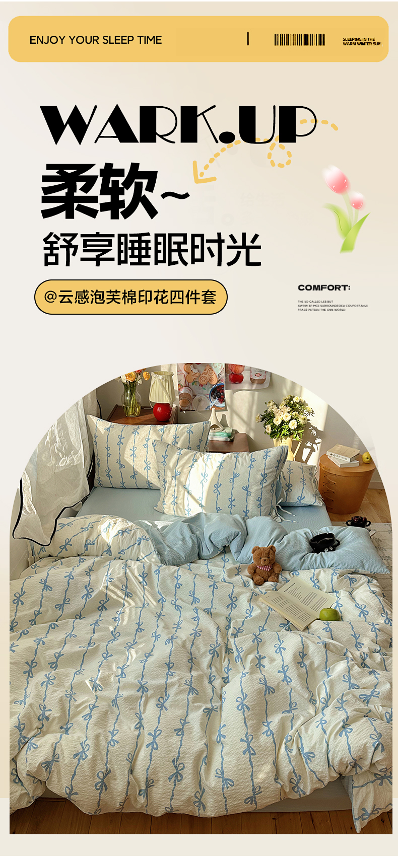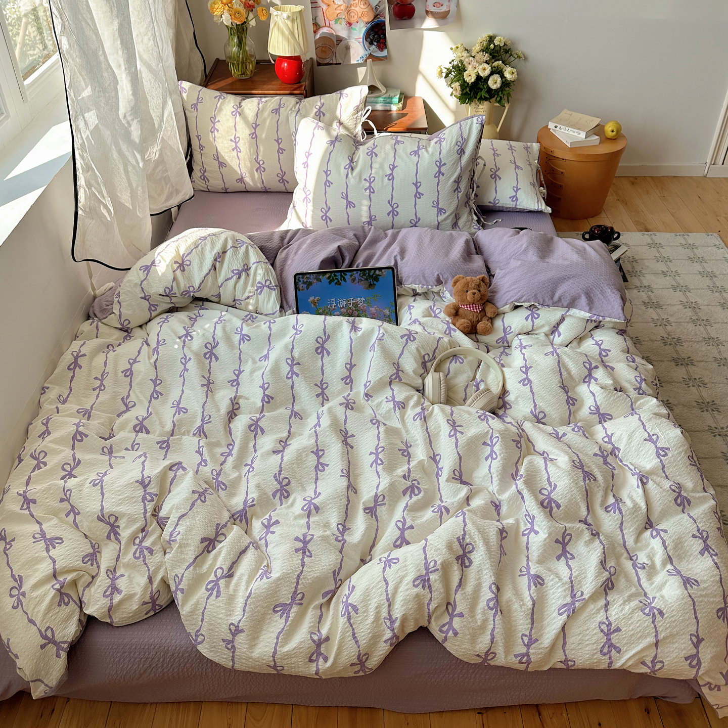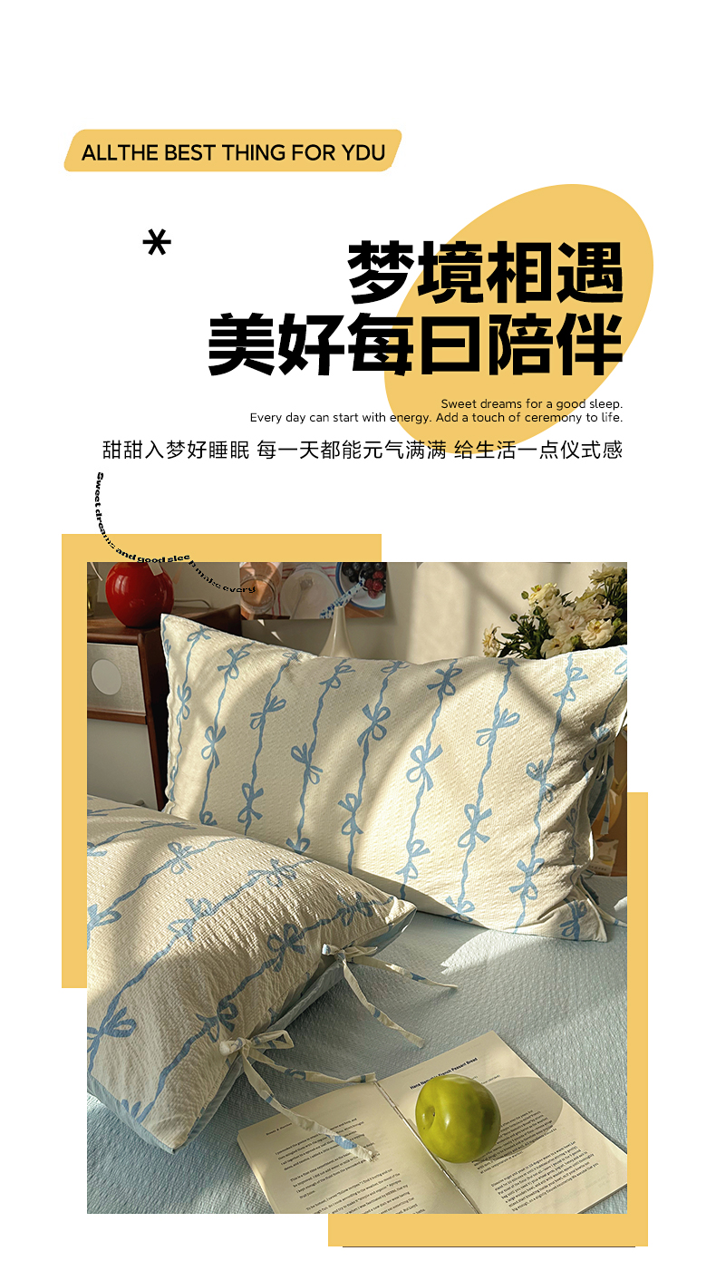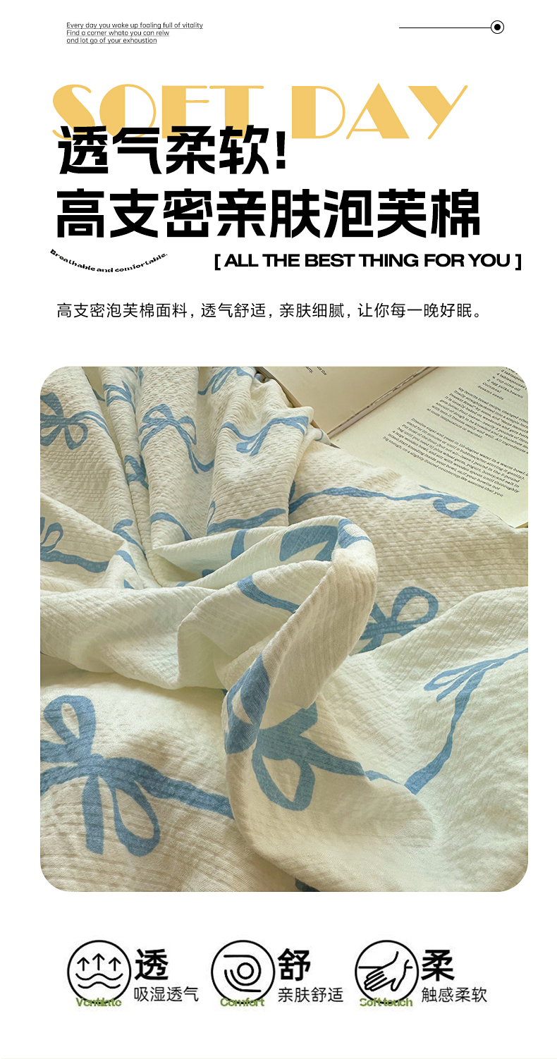 商品名称:(总)顾里家纺 2026新款韩系蝴蝶结系带泡芙棉套件四件套 会员-2元 可定制床笠+8元(小四件不做床笠)