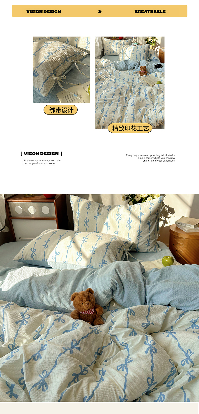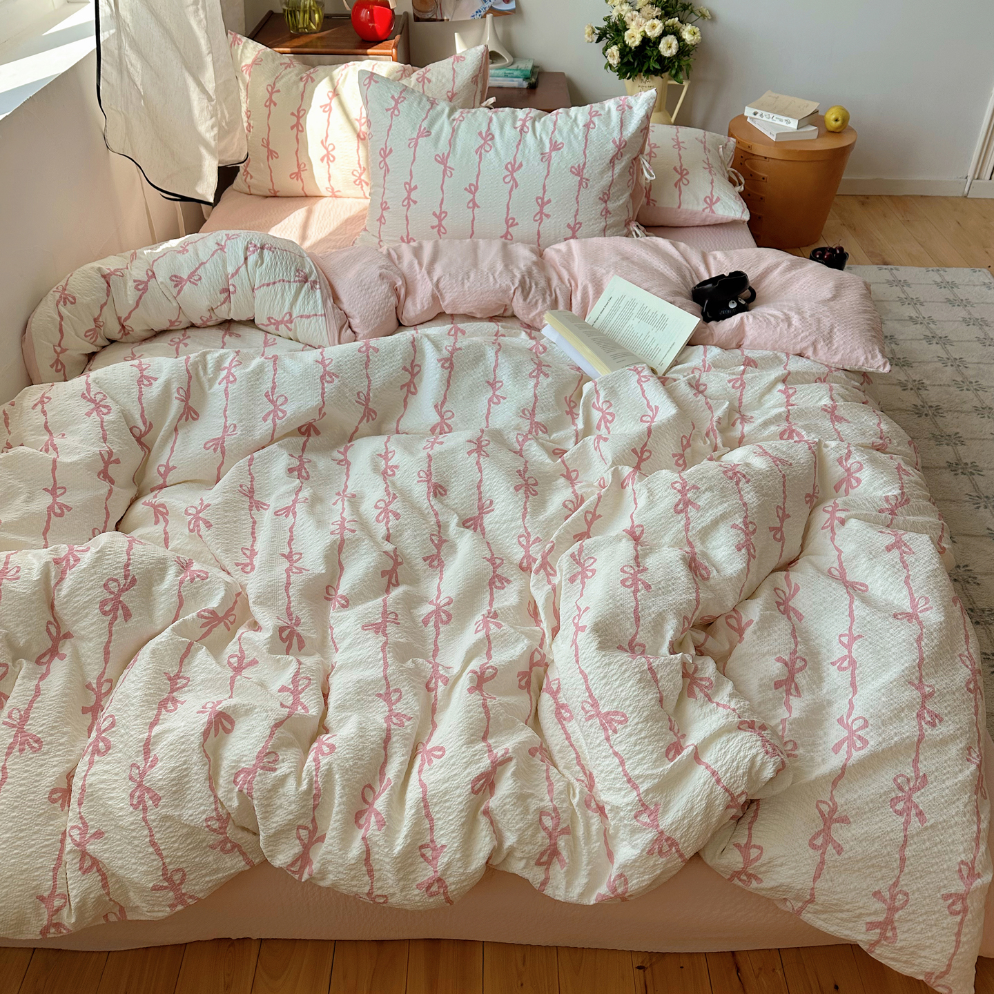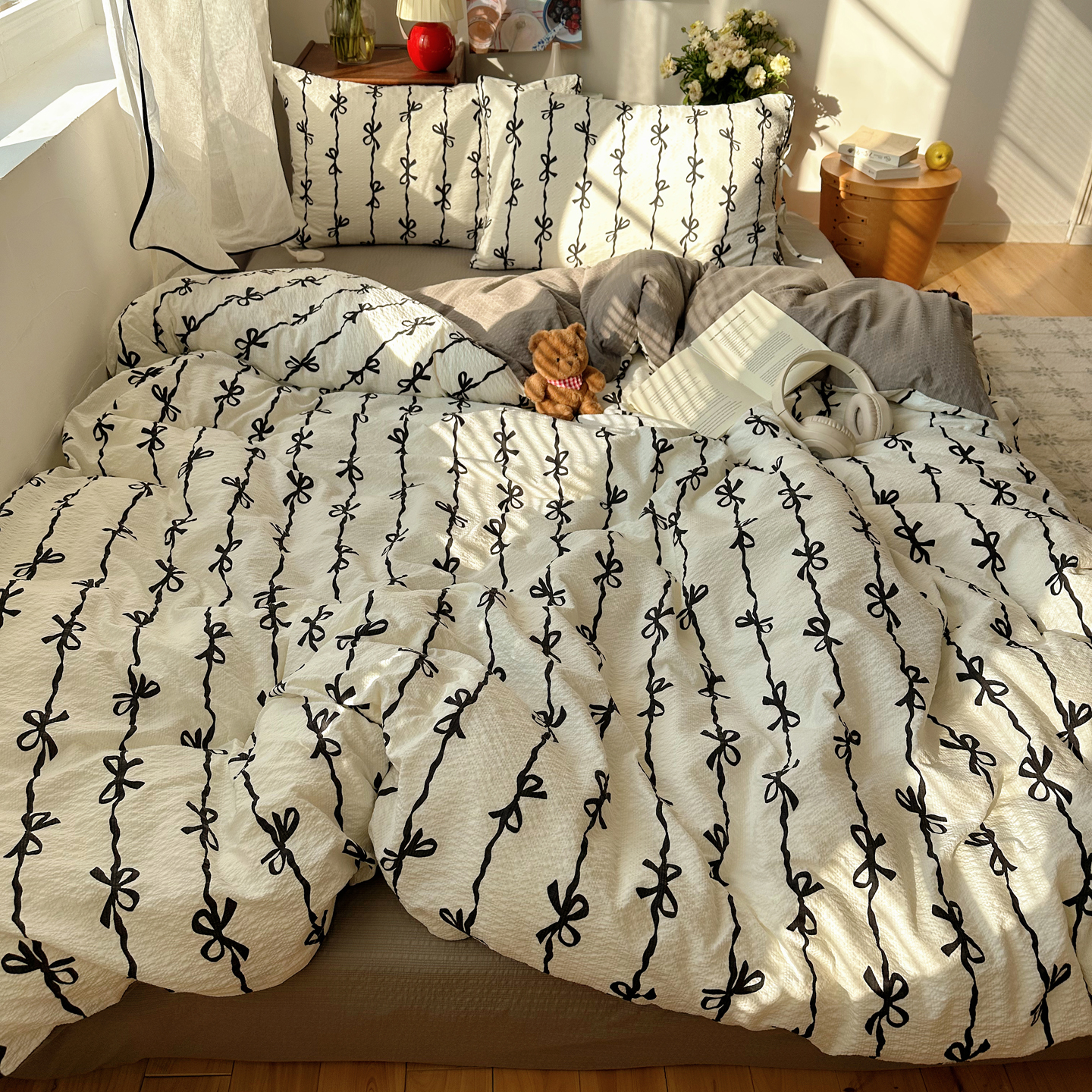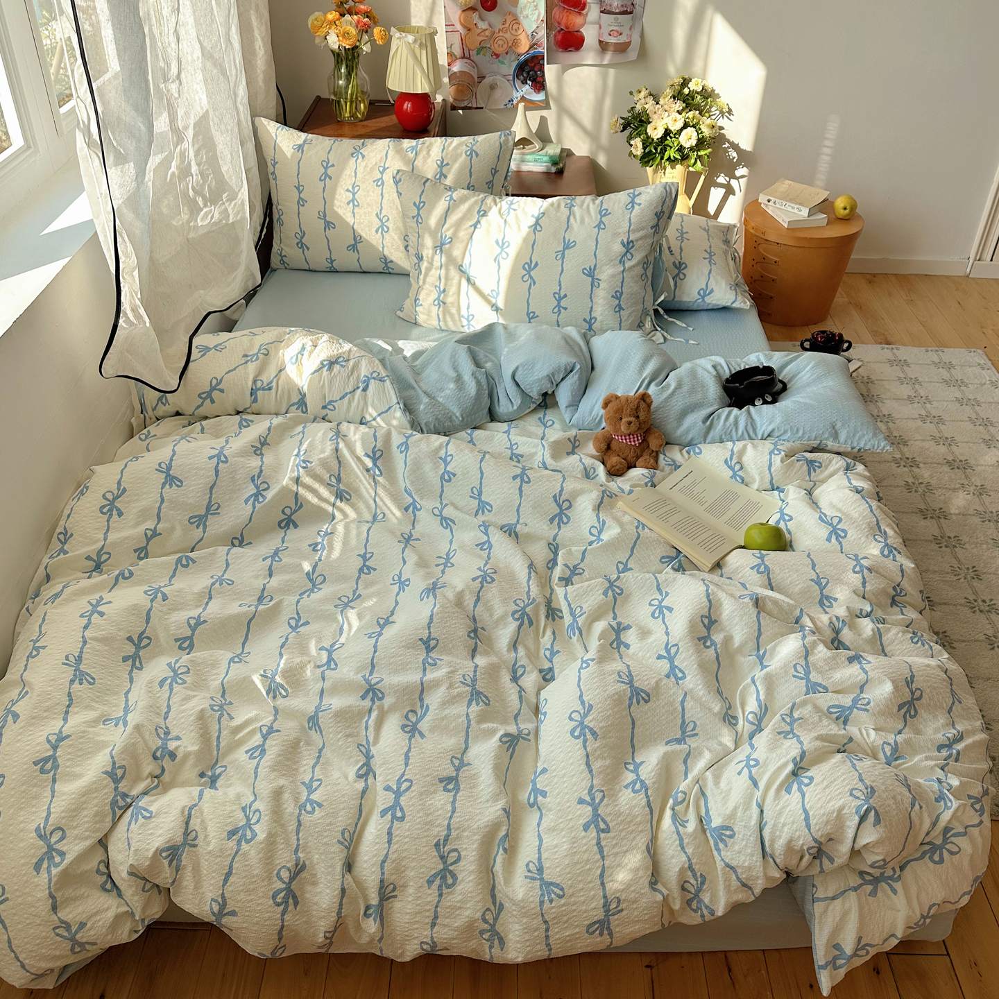 商品名称:(总)顾里家纺 2026新款韩系蝴蝶结系带泡芙棉套件四件套 会员-2元 可定制床笠+8元(小四件不做床笠)