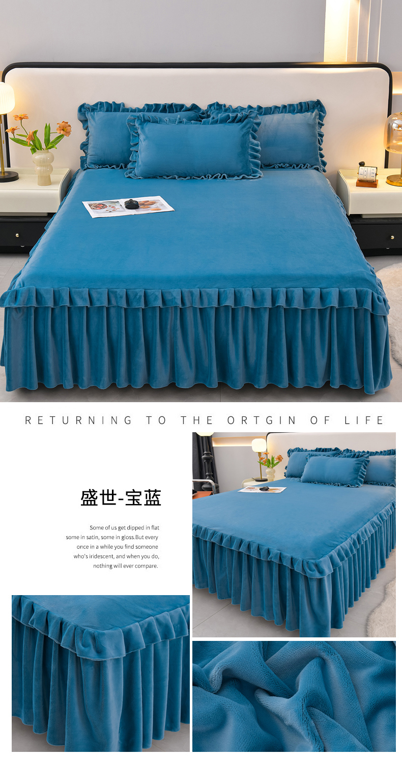(总)优家居工厂店 2026新款纯色韩版花边牛奶绒床裙床罩加厚直播外贸可定做,盛世-宝蓝,盛世-翠绿,盛世-豆沙,盛世-粉玉,盛世-魅紫,盛世-米白,盛世-杏黄,盛世-银灰