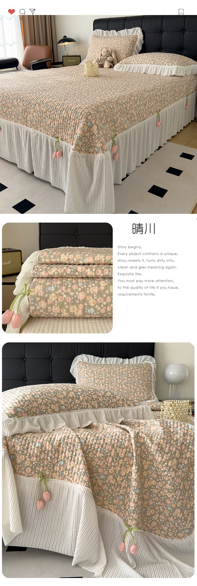 花漾家居 2026新款雪尼尔雪纺蕾丝大花边床盖单品床盖单件三件套 春樱