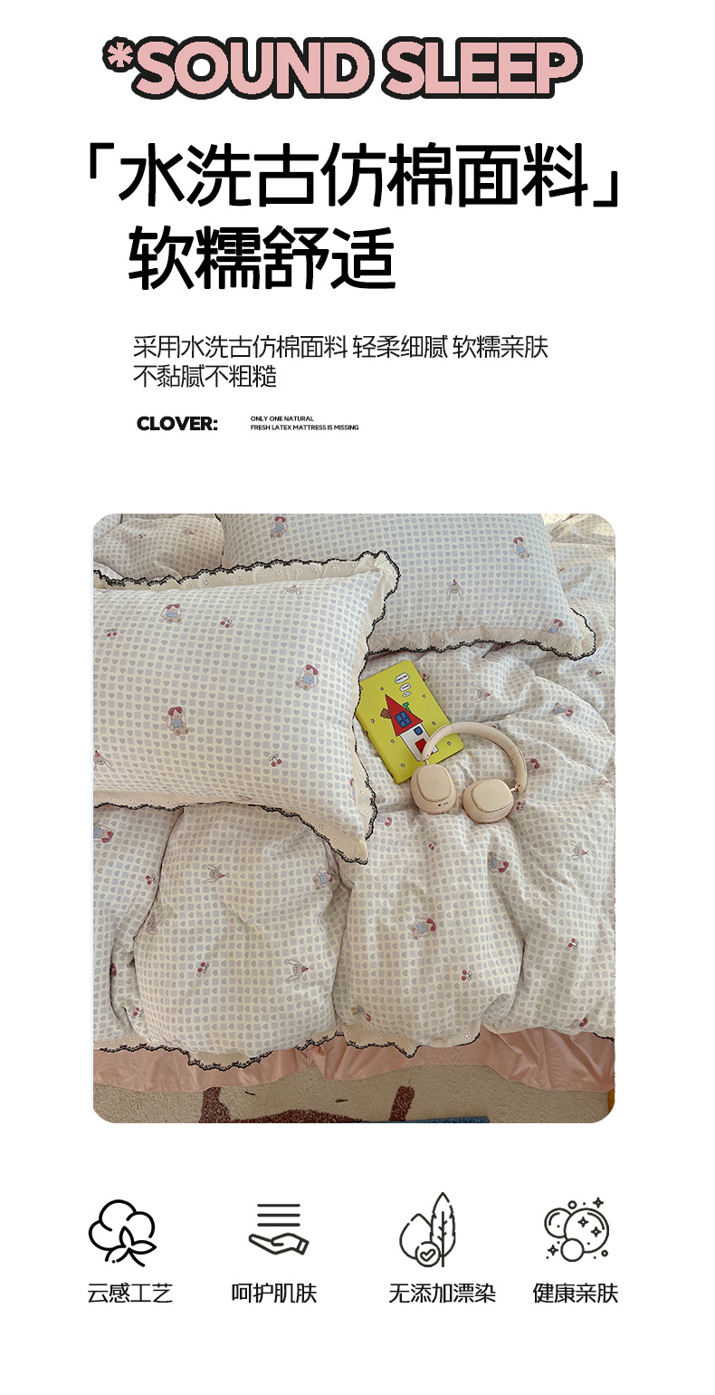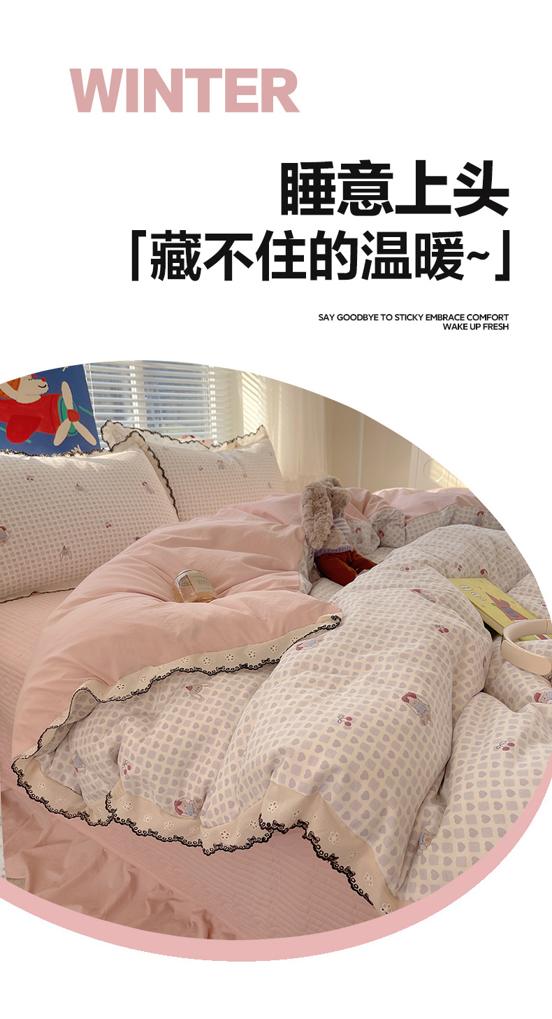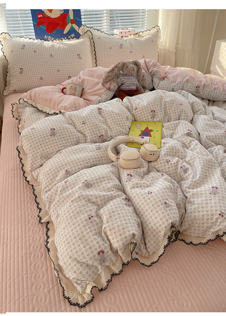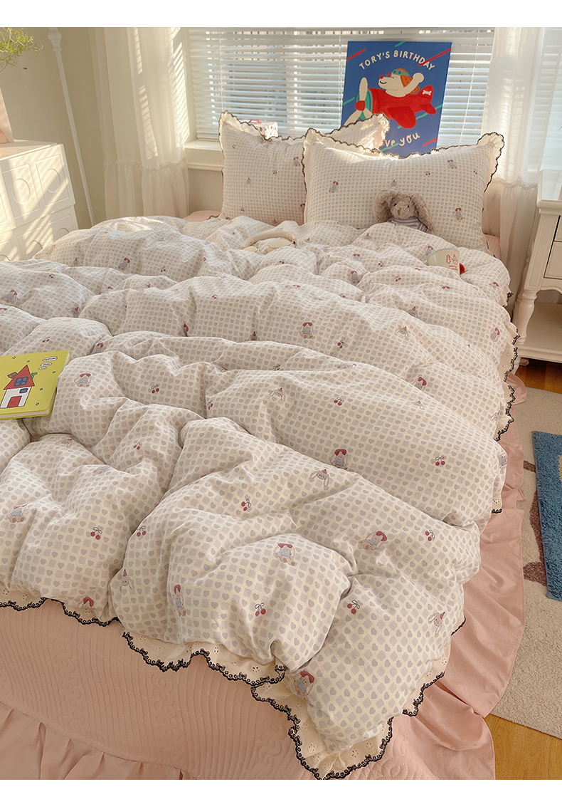 当前位置: 91家纺网 > 商品网购 > 床品套件 > 四件套 > 其它四件套 > 花漾家居 2026小红书推荐款小清新刺绣花边款床单床盖款四件套新款 甜心小兔