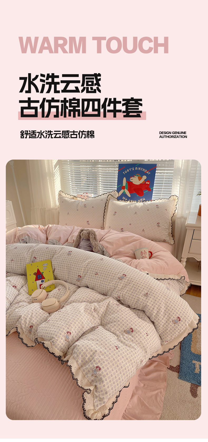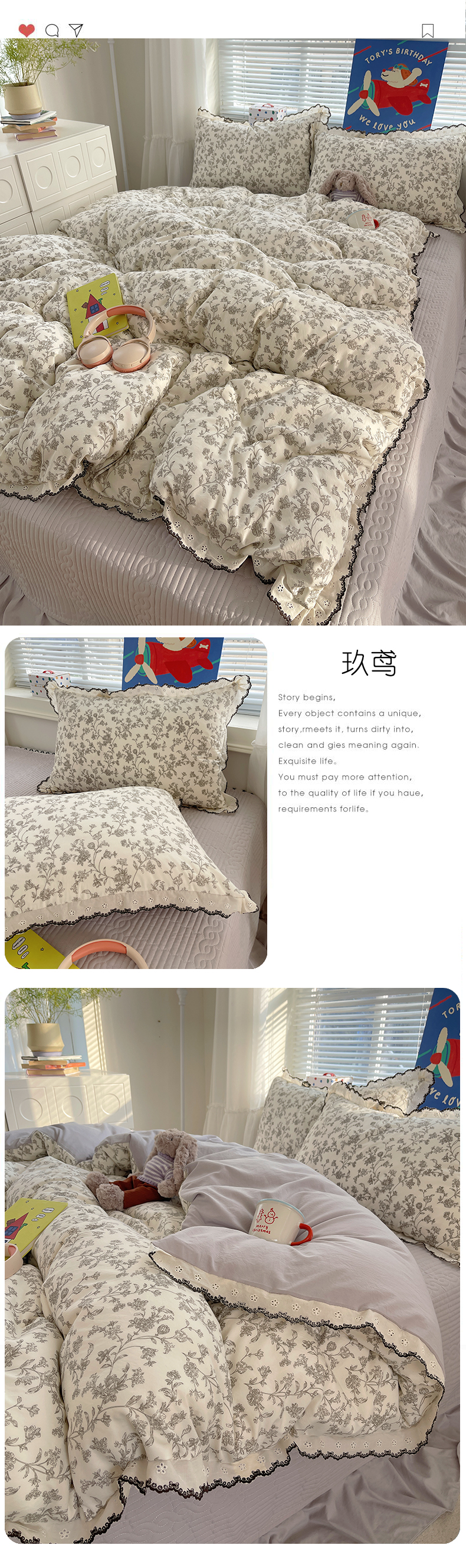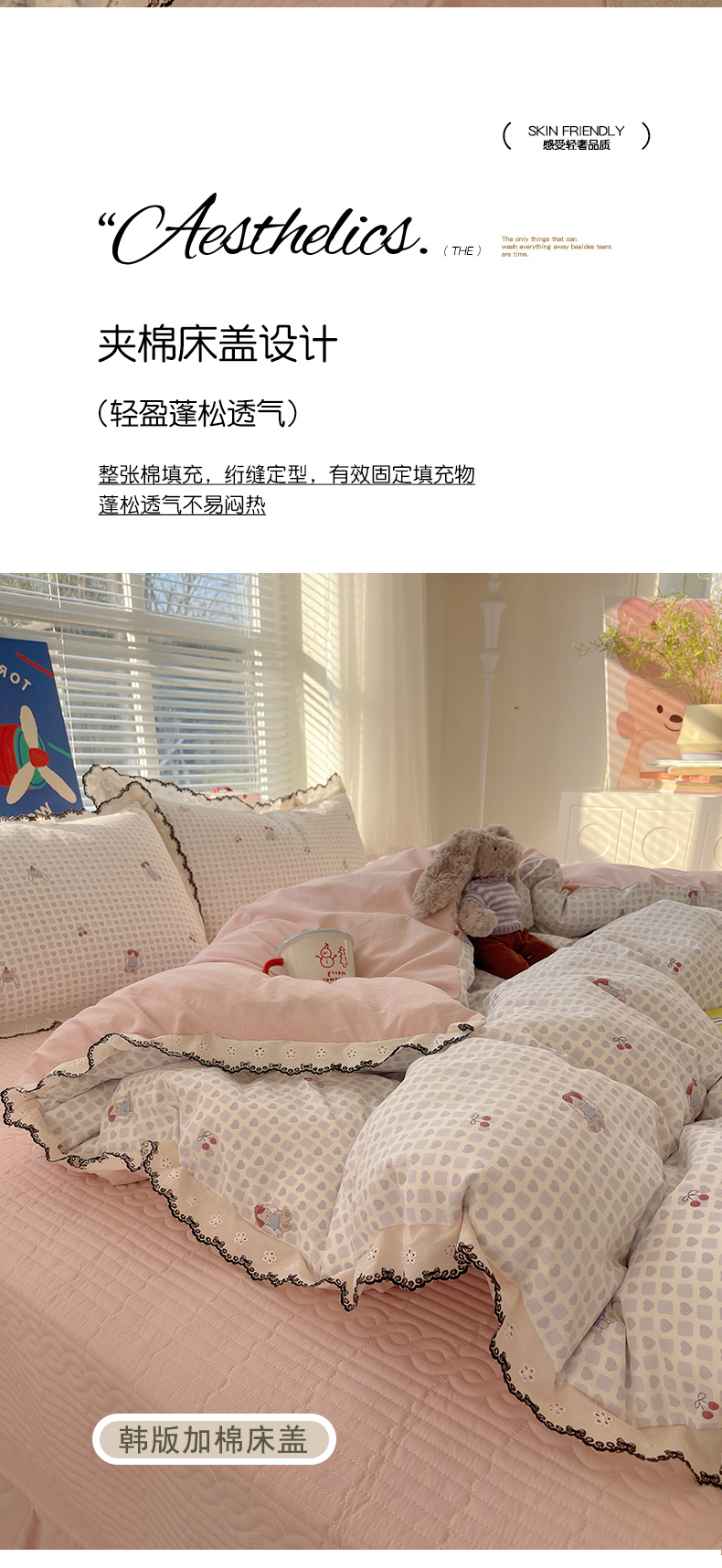 当前位置: 91家纺网 > 商品网购 > 床品套件 > 四件套 > 其它四件套 > 花漾家居 2026小红书推荐款小清新刺绣花边款床单床盖款四件套新款 甜心小兔