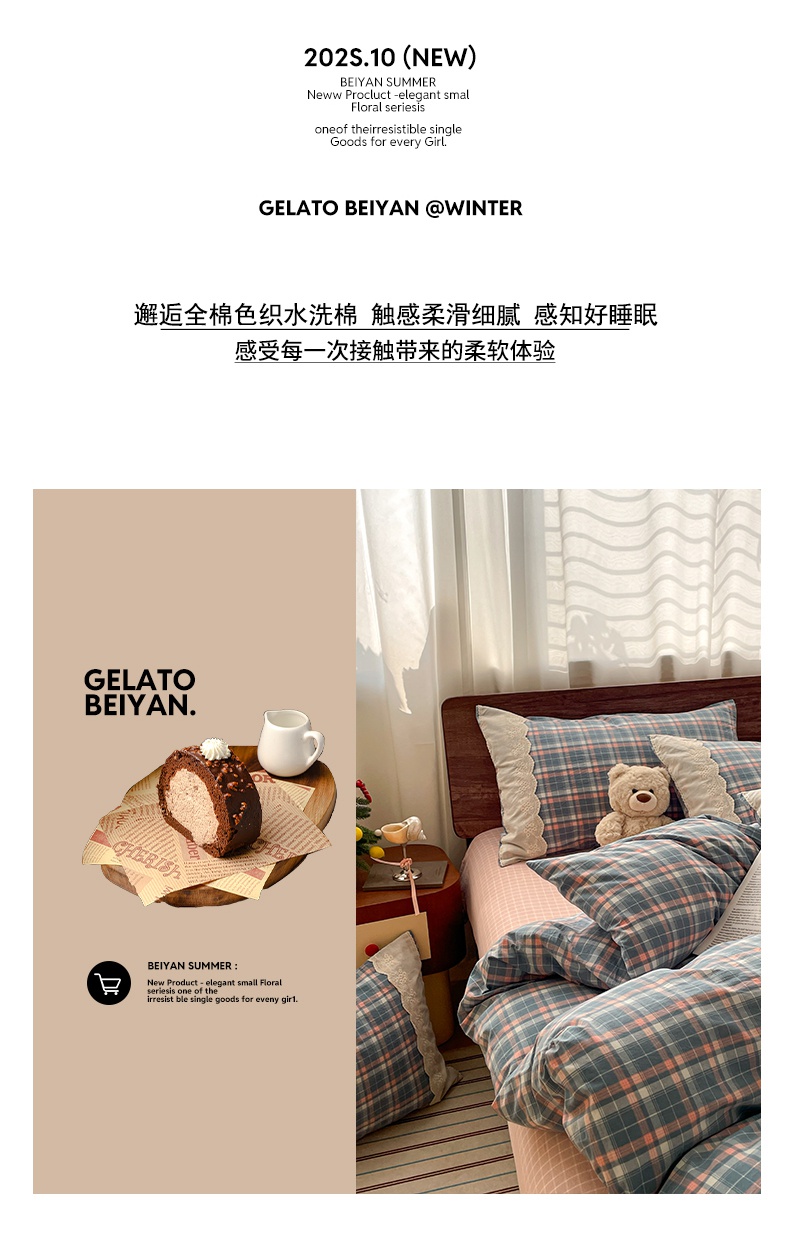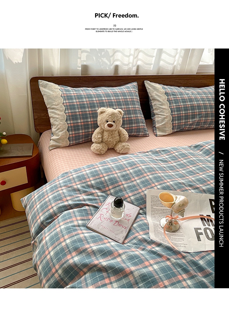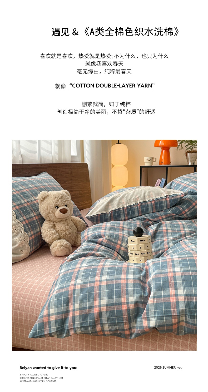 当前位置: 91家纺网 > 商品网购 > 床品套件 > 四件套 > 全棉普通四件套 > 花漾家居 2026新款全棉色织水洗棉复古花边无印格条被套三件套四件套 蓝莓厚乳