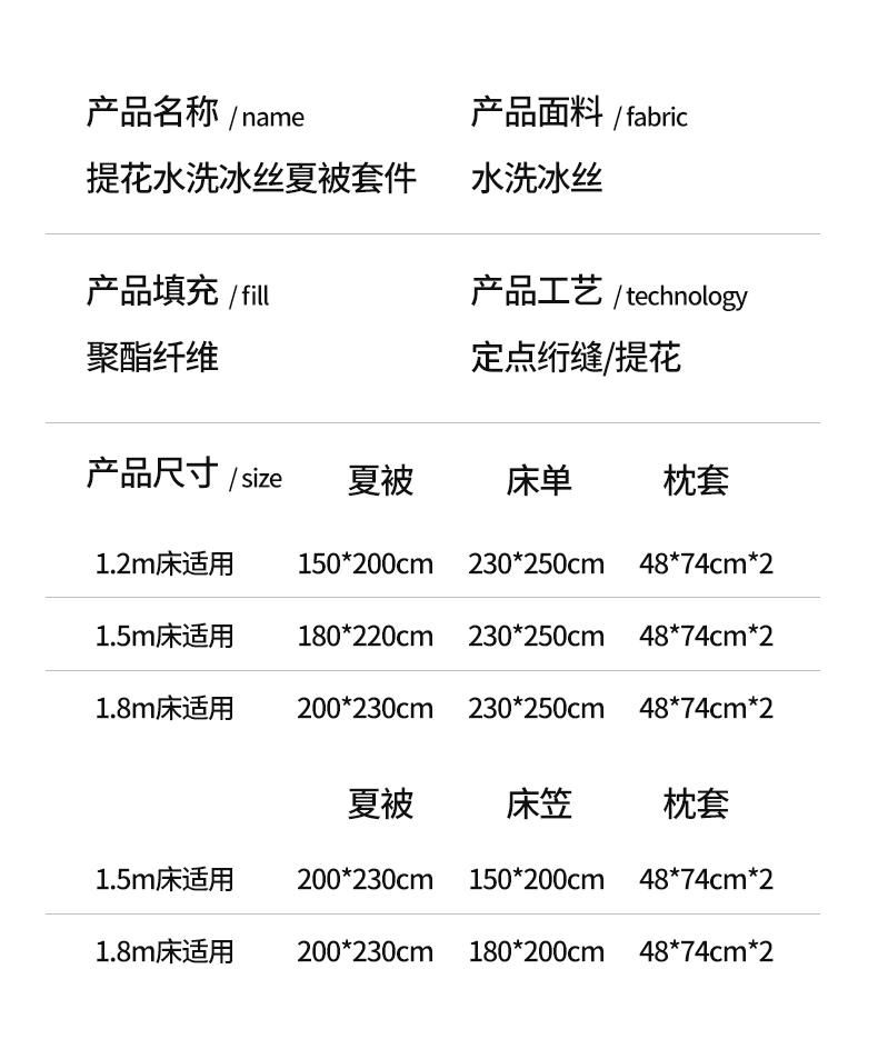 床笠1.8x2.0夏被2.0x2.3枕套一对 | ¥90.00 |