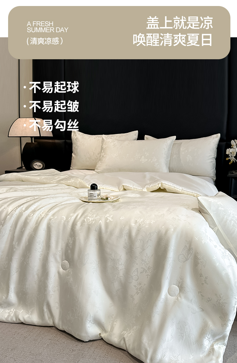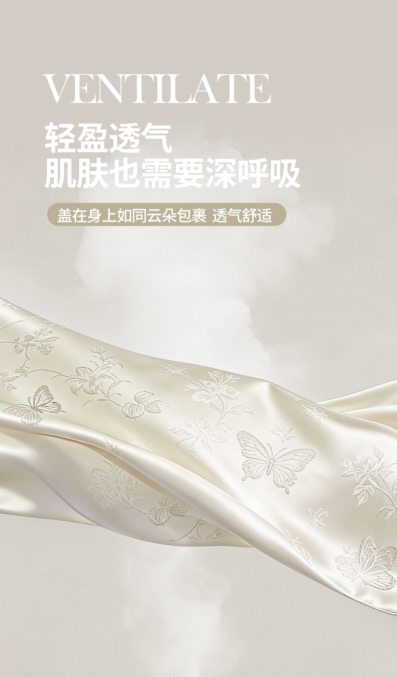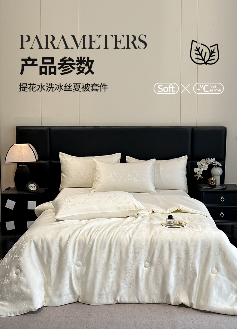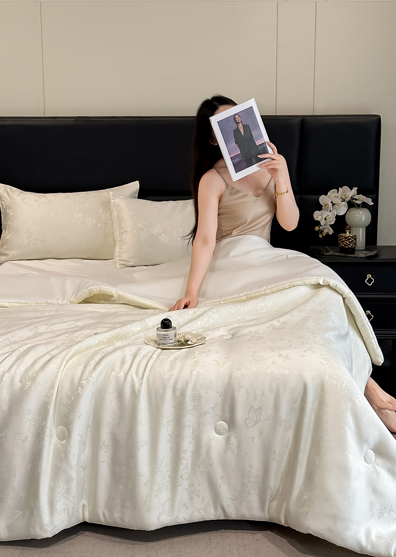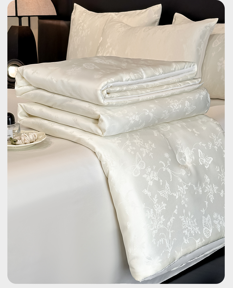 当前位置: 91家纺网 > 商品网购 > 床品套件 > 四件套 > 夏被四件套 > 顺兴家居 2026新款提花水洗真丝夏被空调被四件套 夏被雾中花影-米白