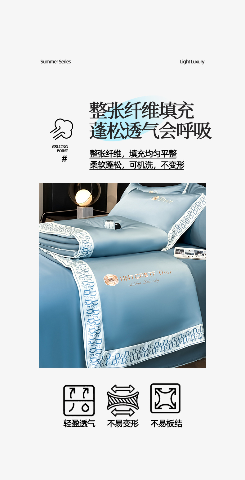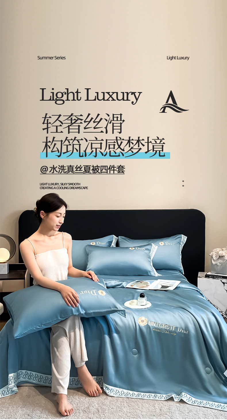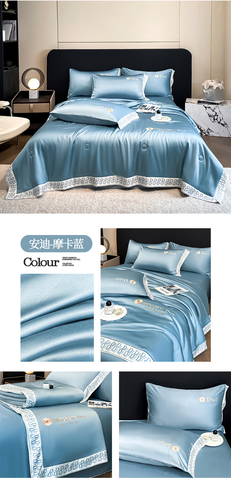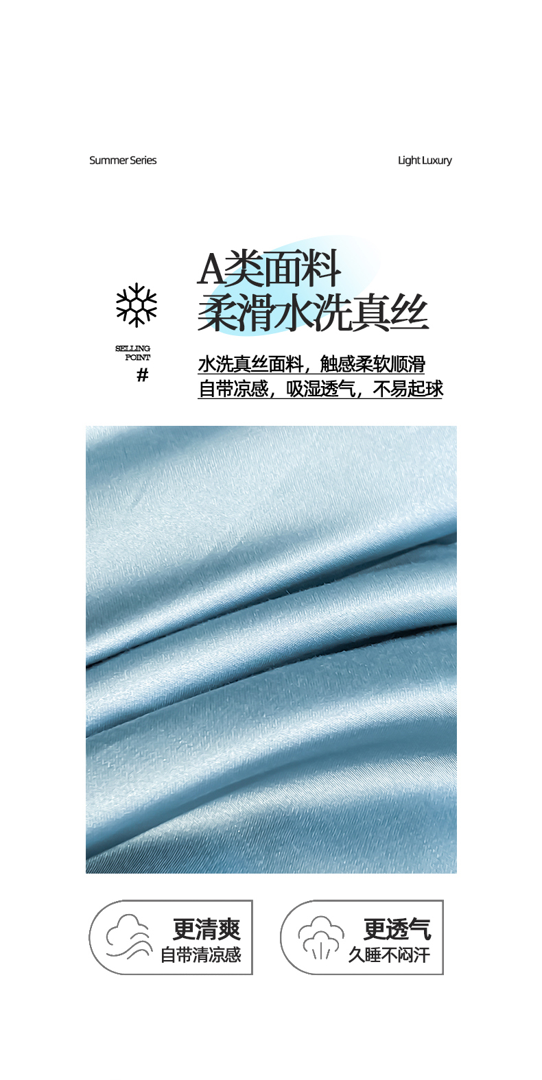 • 91家纺网 家纺一手货源 找家纺 露梦家纺 2026新款安迪水洗真丝夏被四件套 安迪-摩卡蓝