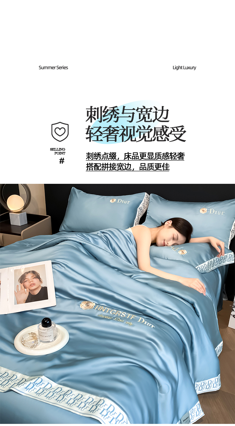 • 91家纺网 家纺一手货源 找家纺 (总)露梦 2026新款大牌轻奢款水洗真丝刺绣数码宽边夏被四件套-安迪,安迪-爱玛橙,安迪-高级灰,安迪-海盐绿,安迪-摩卡蓝,安迪-嫩奶绿,安迪-胭脂粉