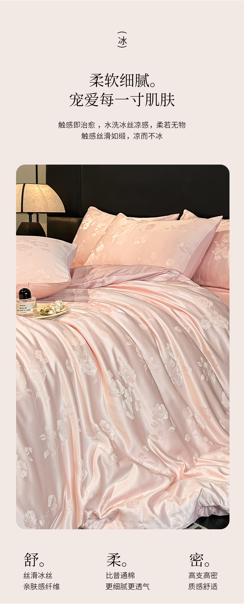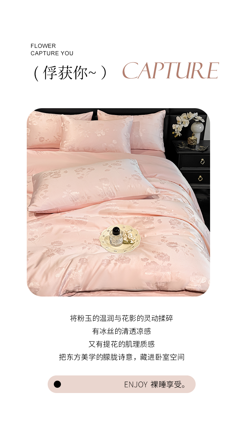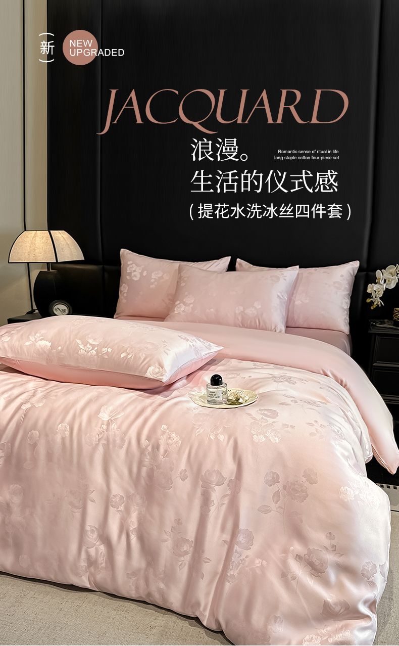 当前位置: 91家纺网 > 商品网购 > 床品套件 > 四件套 > 其它四件套 > 顺兴家居 2026新款提花水洗真丝四件套 喜花市-粉玉