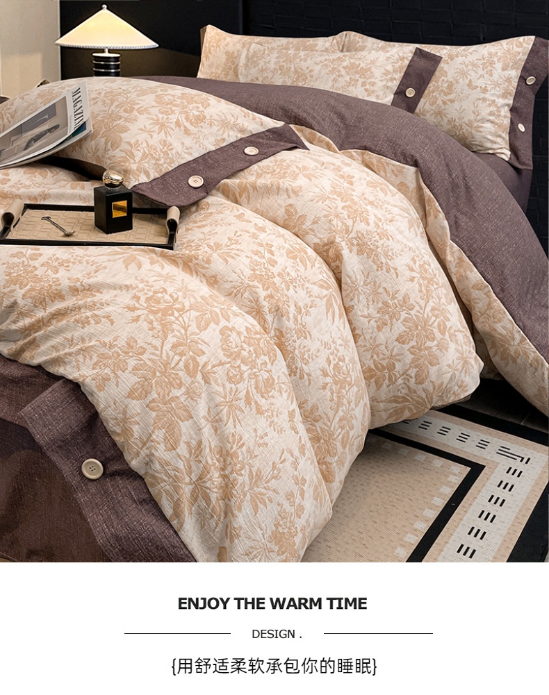 当前位置: 91家纺网 > 商品网购 > 床品套件 > 四件套 > 其它四件套 > 圣比熊 2026春夏新款A类原麻纽扣四件套加厚被套床单宿舍双人床仿亚麻套件-最新款 忆秋风