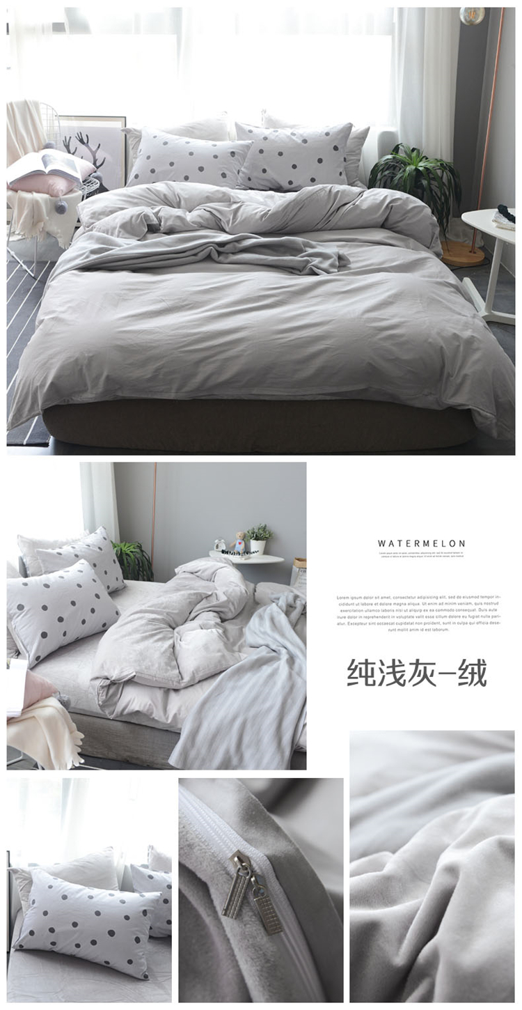 梦家居 2017韩国简约A棉B绒四件套纯浅灰-绒