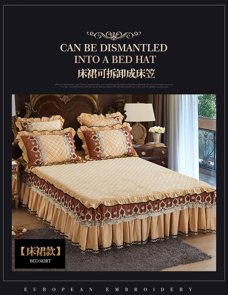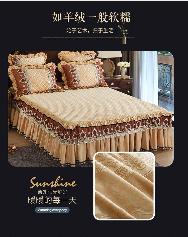 商品名称:兴美佳水晶绒压花拉链款单床裙-豪庭盛世 香槟色