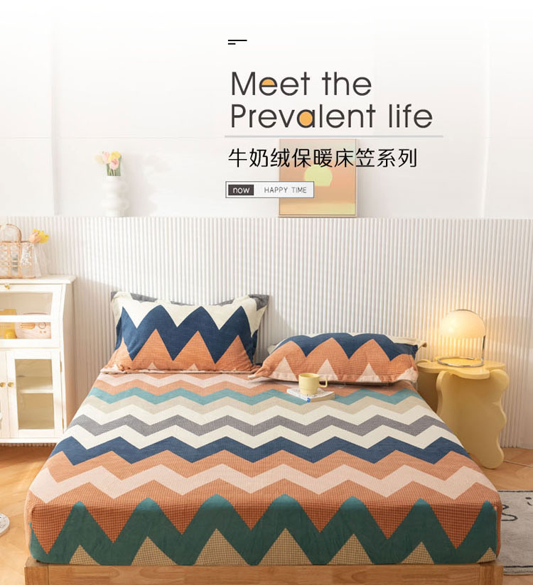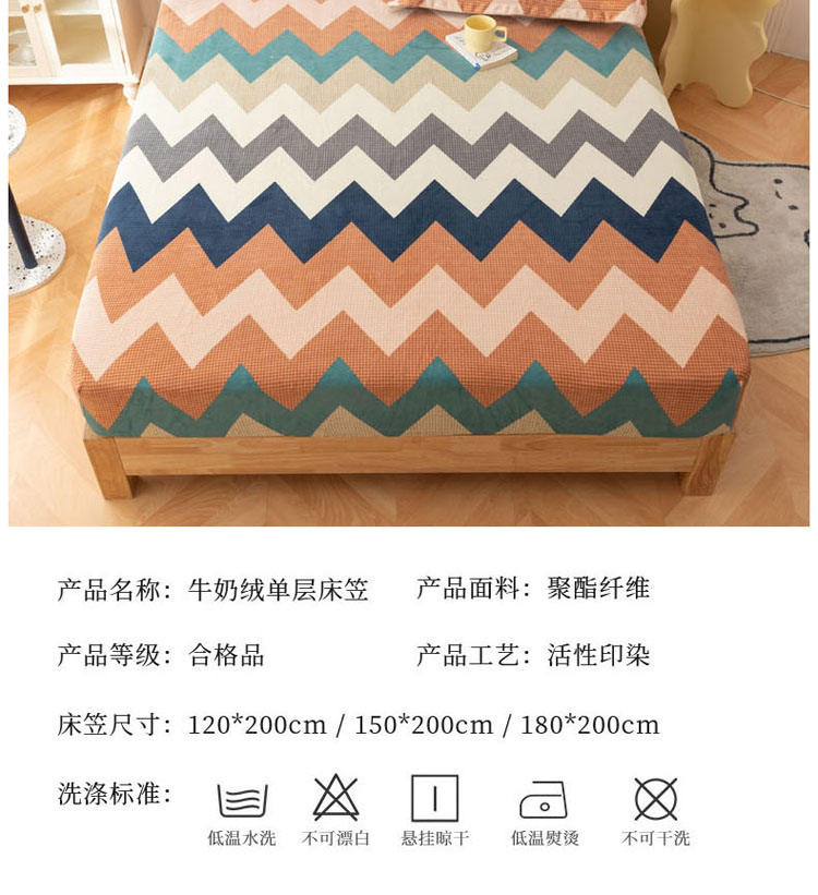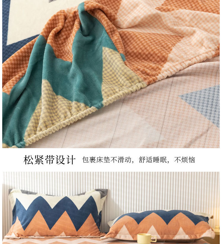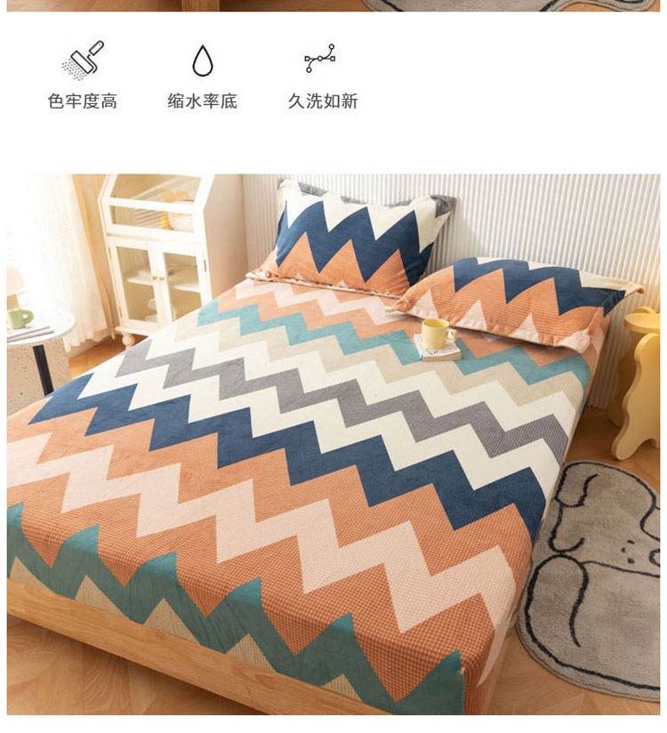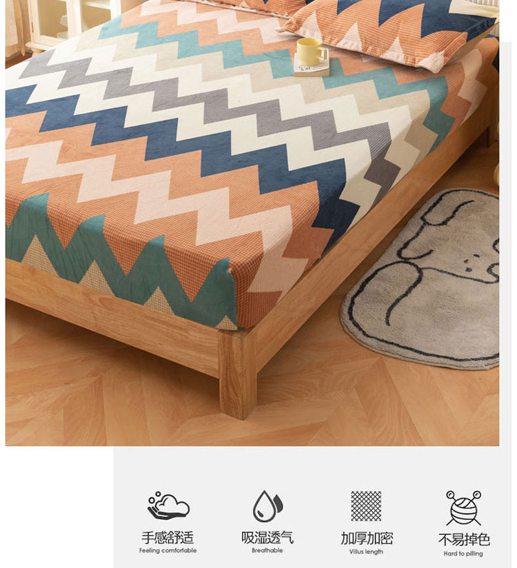 商品名称:梦家居 2021新款秋冬牛奶绒床笠单品 七彩几何