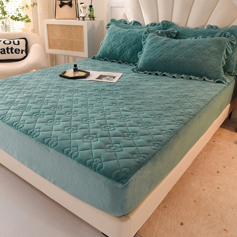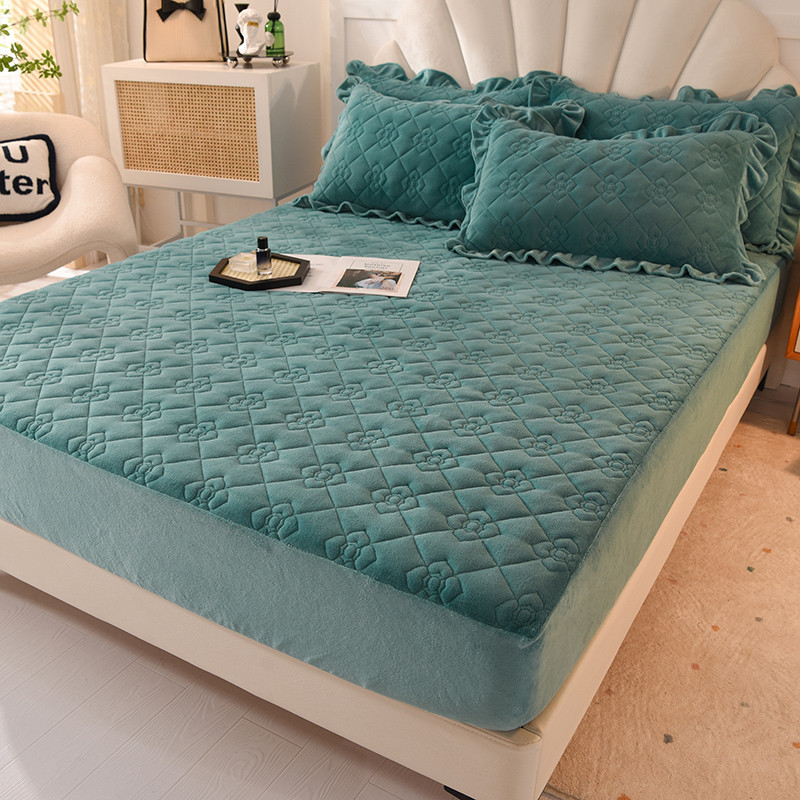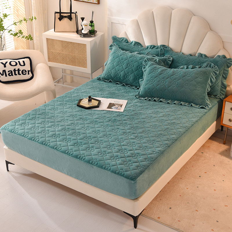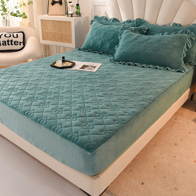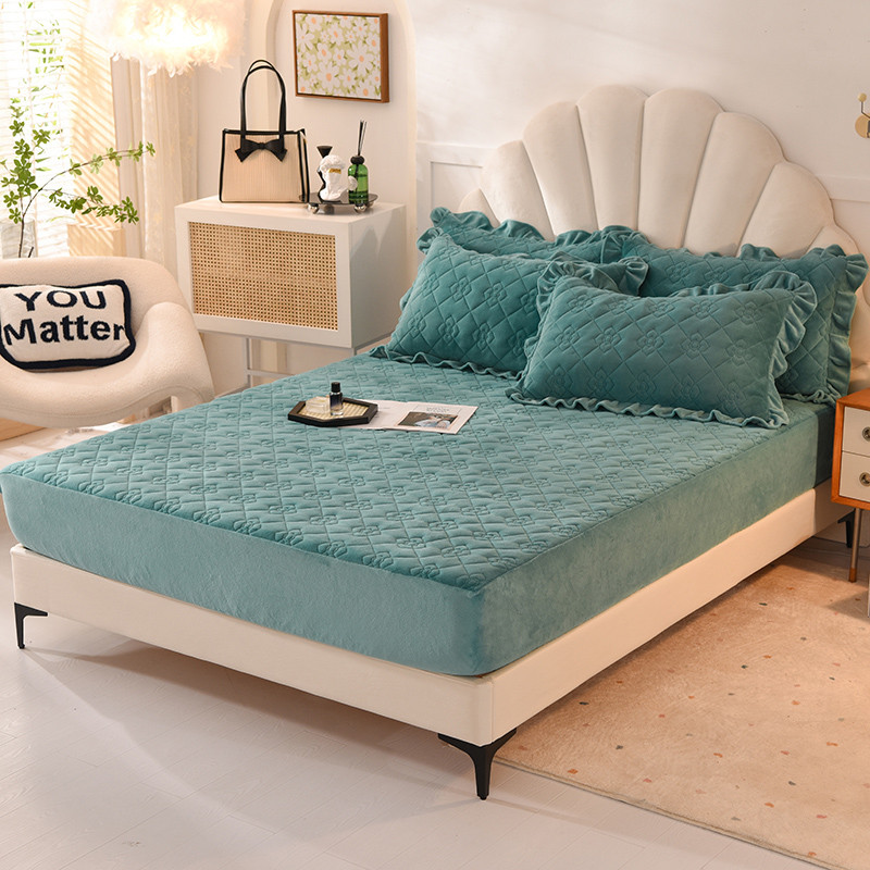 商品名称:甜之梦 2025新款牛奶绒夹棉防滑纯色床笠 湖绿