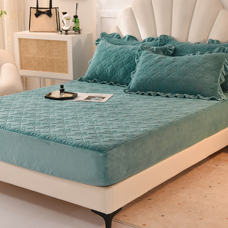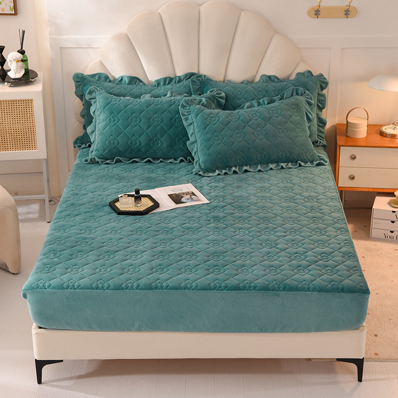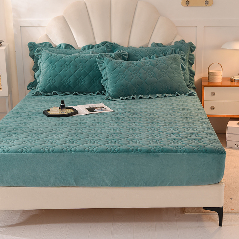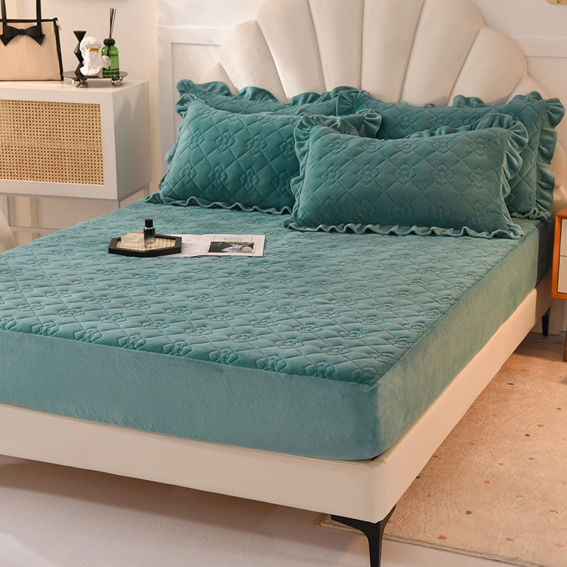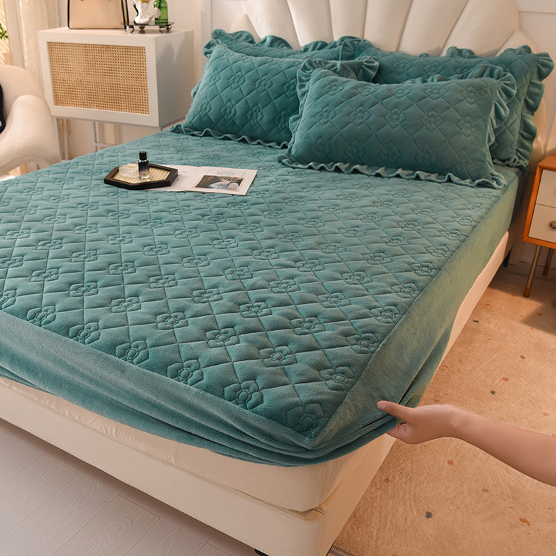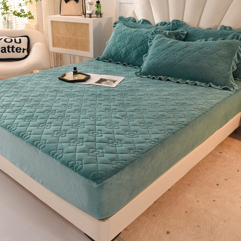 商品名称:甜之梦 2025新款牛奶绒夹棉防滑纯色床笠 湖绿