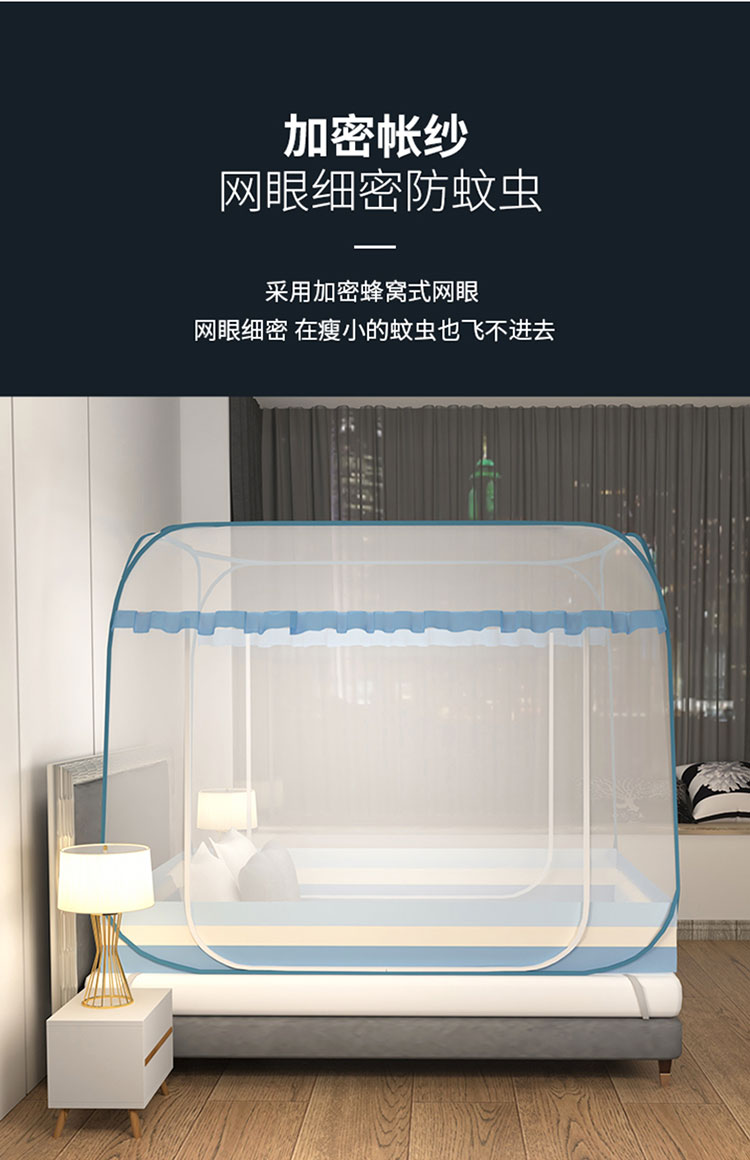 商品名称:佳梦家纺 2023新款印花时尚款免安装蒙古包蚊帐 条纹蓝小花边