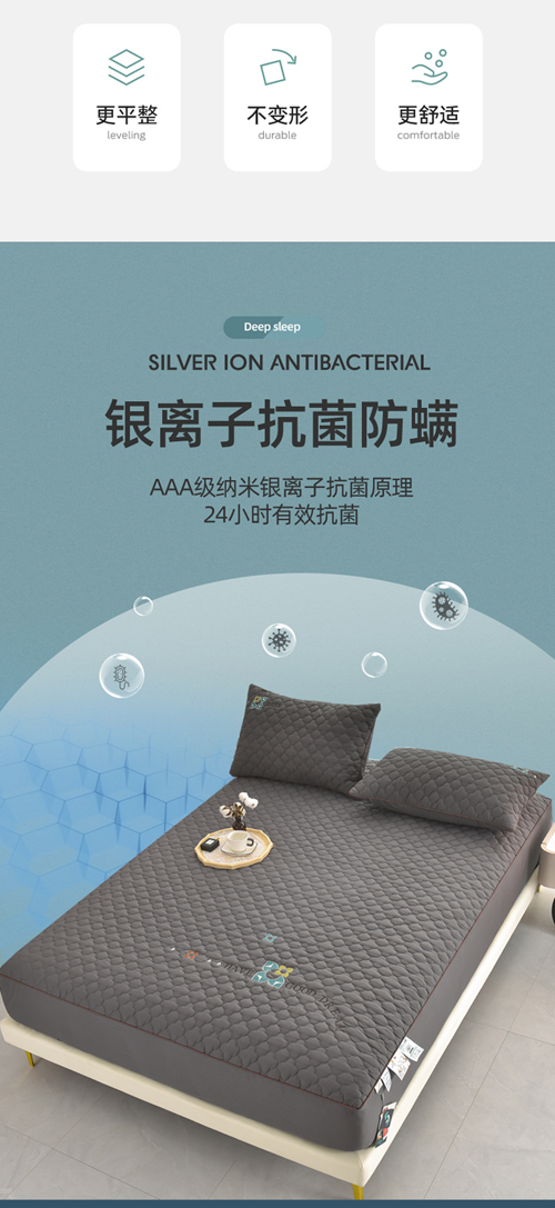 (总)好眠好梦家纺 2025新款全棉50S抗菌防螨夹棉防水床笠-无限之光系列,白色,粉色,卡其,深灰,天蓝,烟灰
