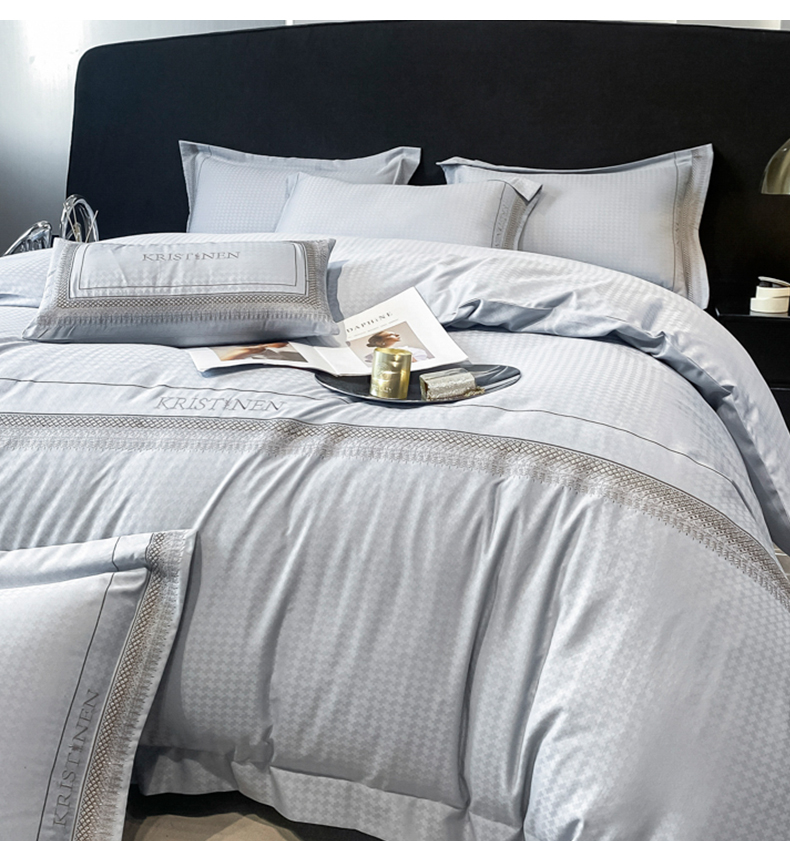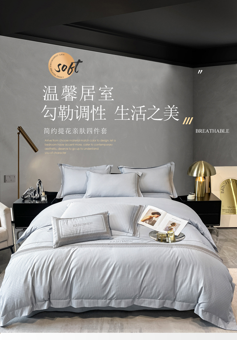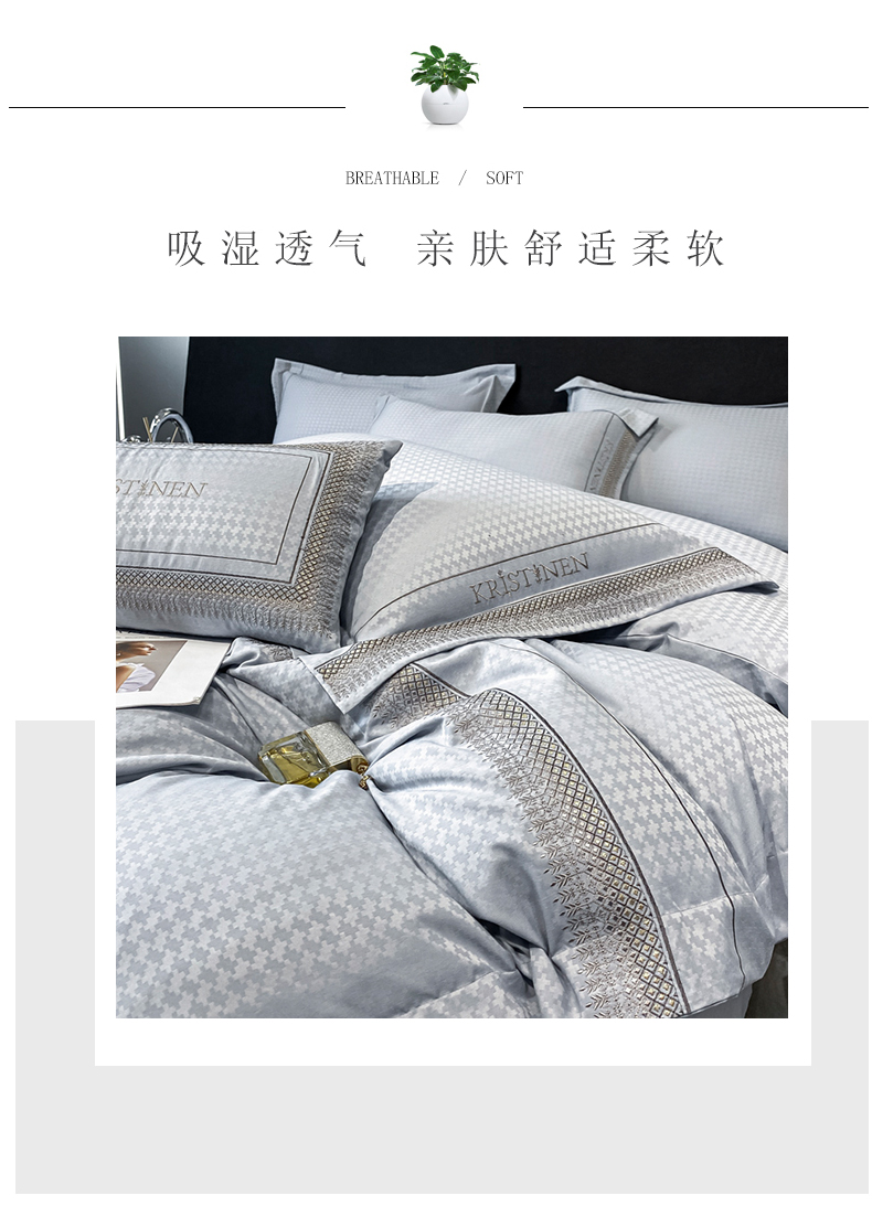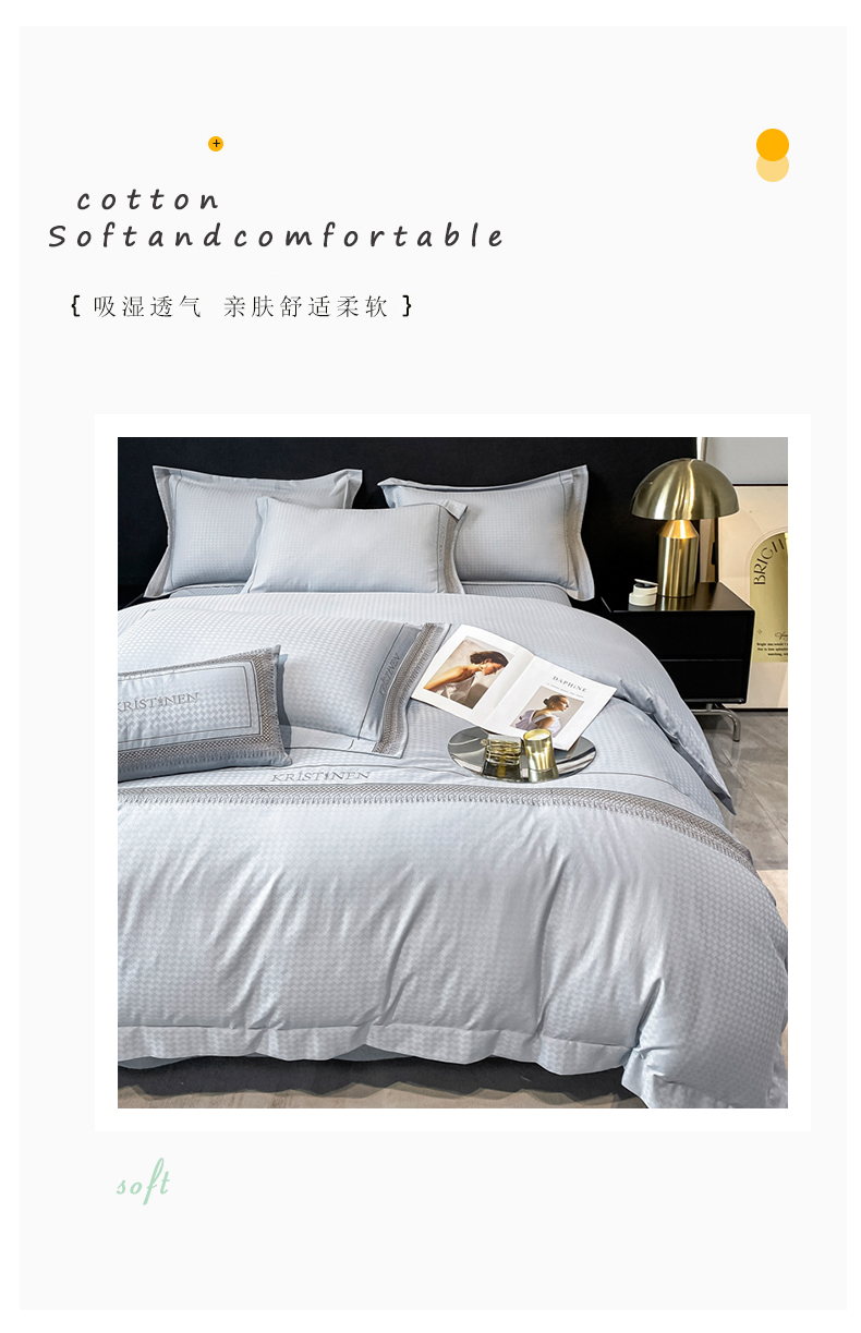 商品名称:安妮 2023新款简约提花刺绣四件套-缇娜夫人 缇娜夫人-蓝灰