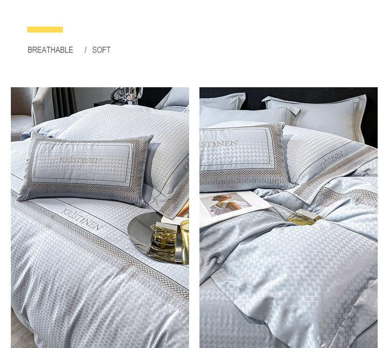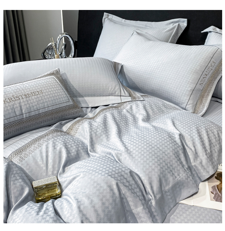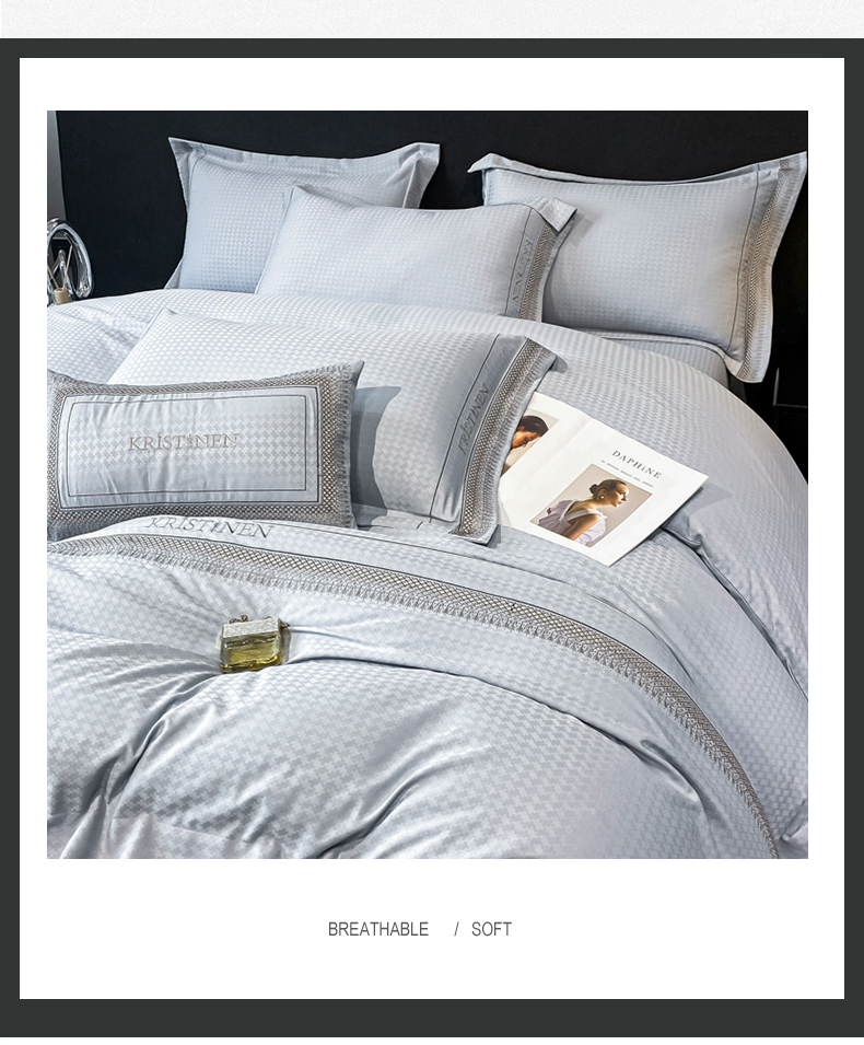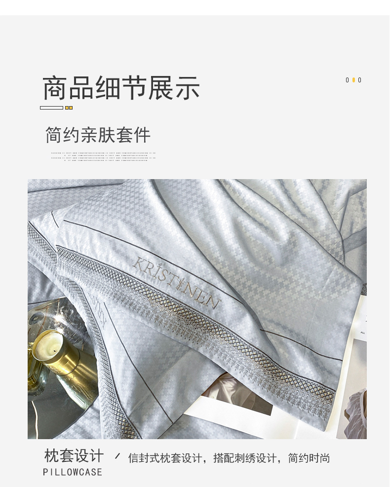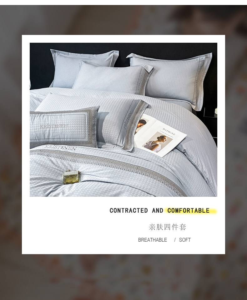 商品名称:安妮 2023新款简约提花刺绣四件套-缇娜夫人 缇娜夫人-蓝灰