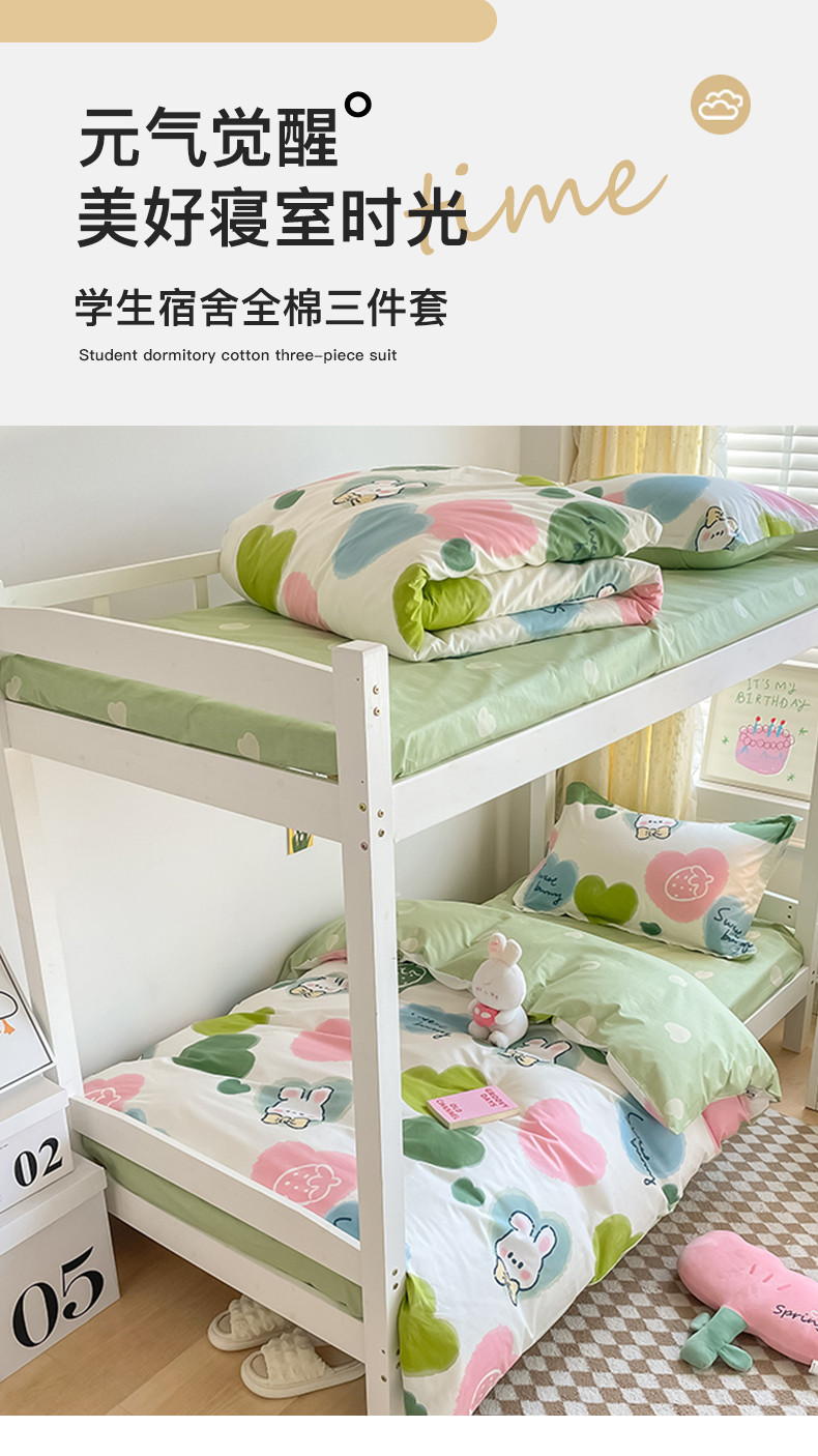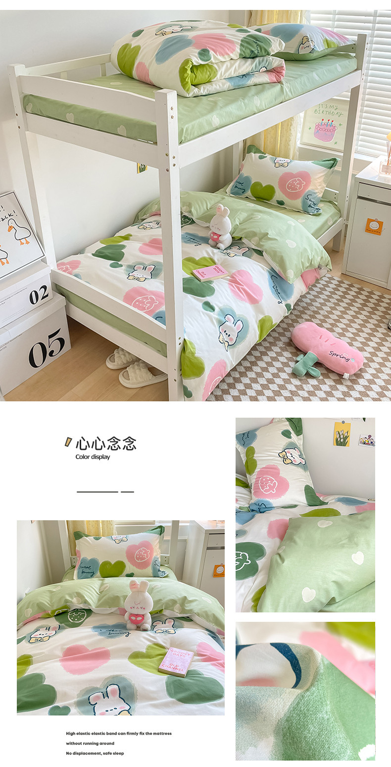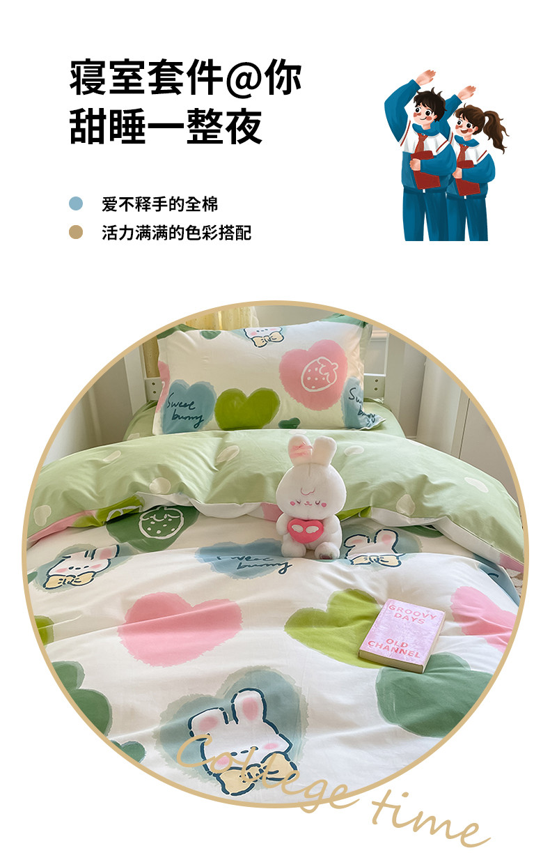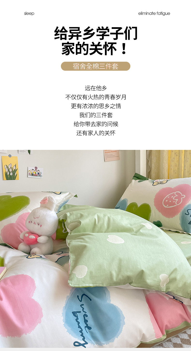 金鑫汇 2023新款全棉宿舍印花三件套 心心念念