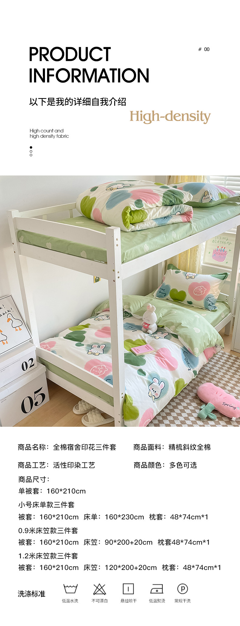 商品名称:金鑫汇 2023新款全棉宿舍印花三件套 心心念念