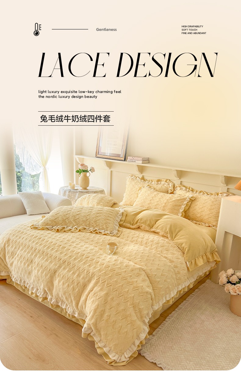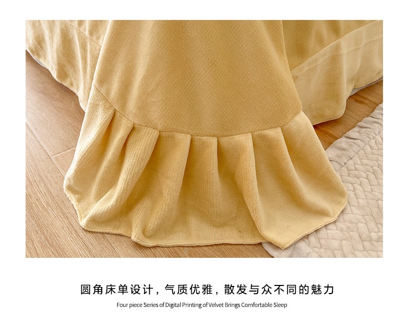 商品名称:麒豆豆 2023新款A版兔毛绒B版素色牛奶绒四件套-织梦 织梦-奶酪黄