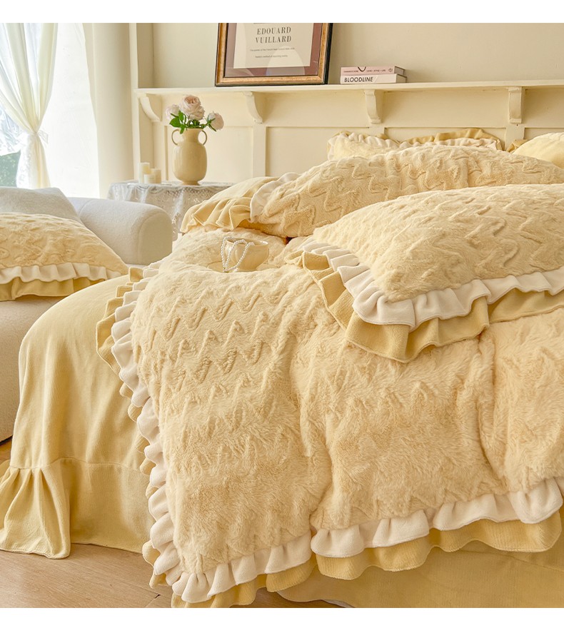 麒豆豆 2023新款A版兔毛绒B版素色牛奶绒四件套-织梦 织梦-奶酪黄