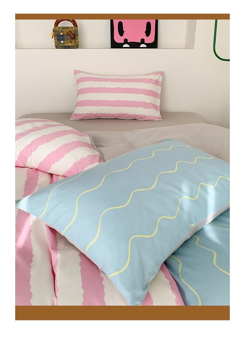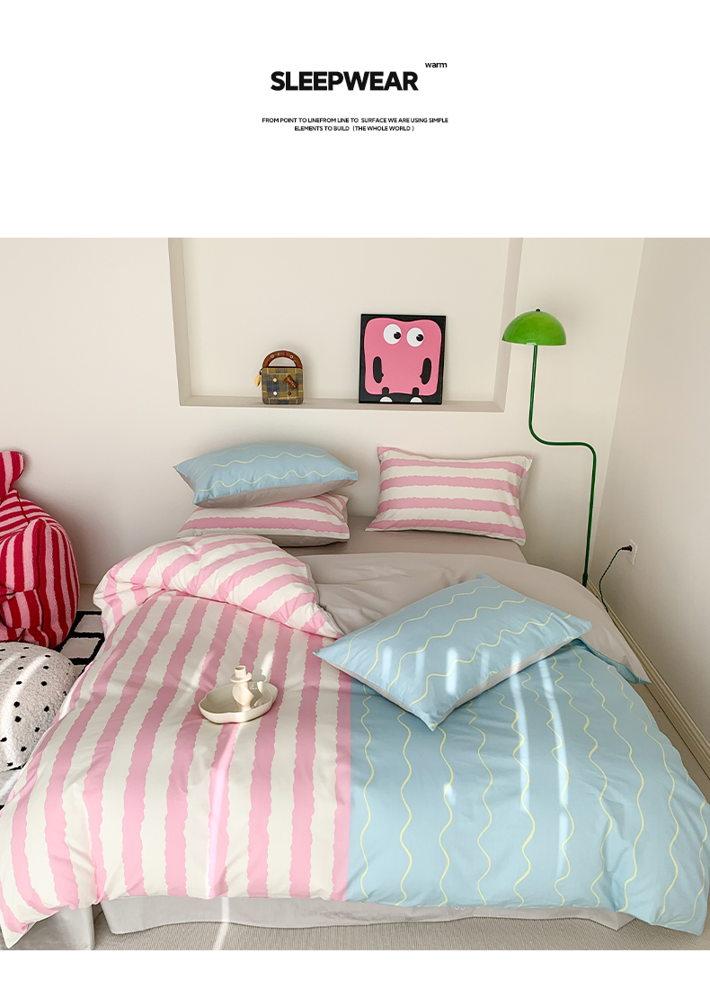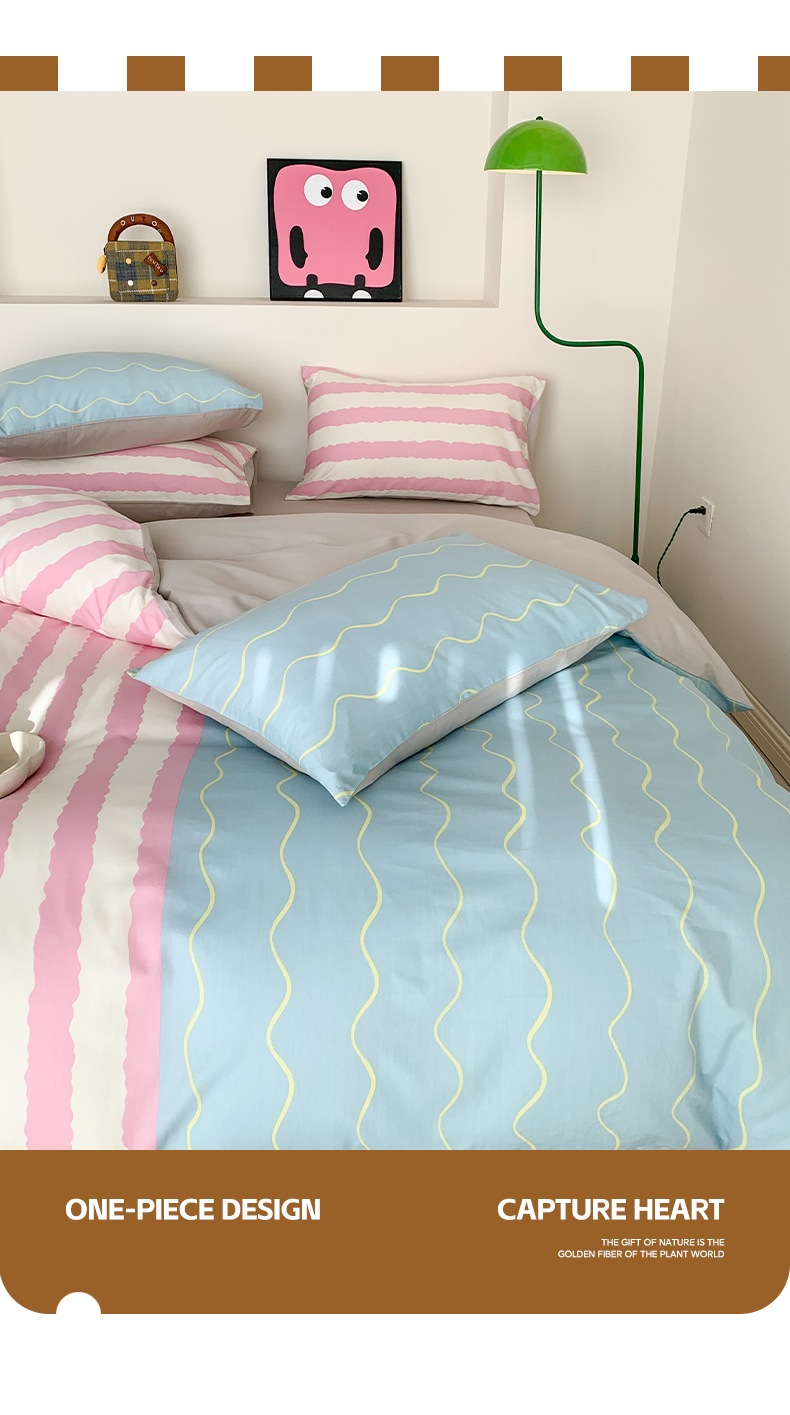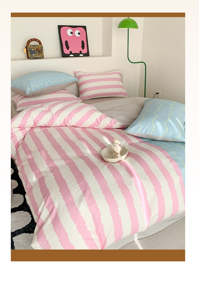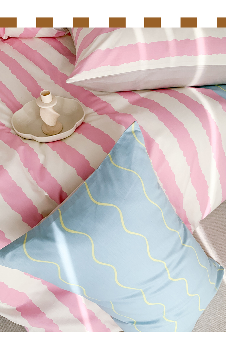 澳萝拉 2024新款全棉条纹大版四件套 樱花蓝椰