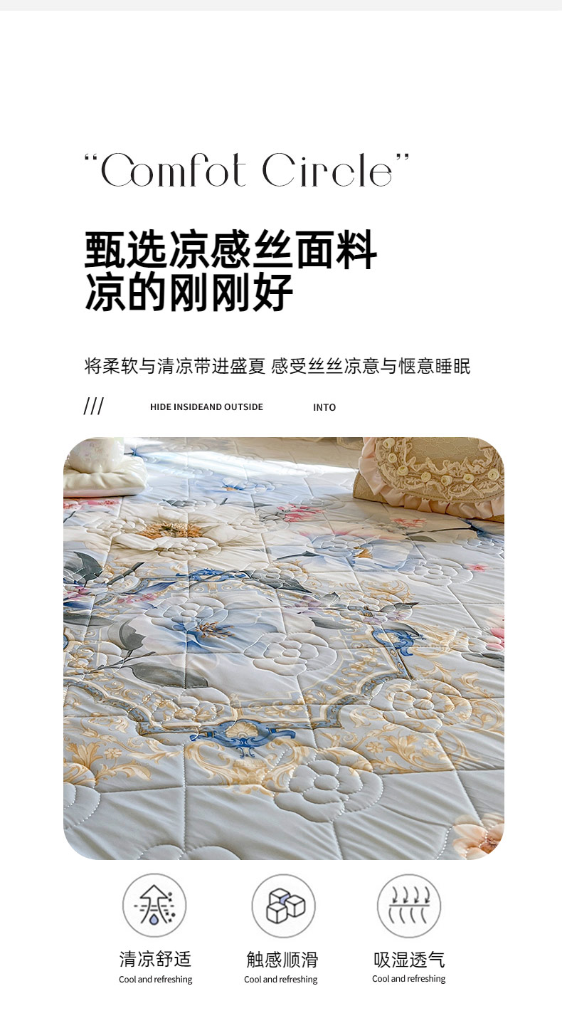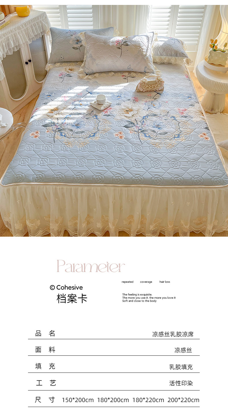 商品名称:麒豆豆 2024新款凉感丝乳胶凉席夏被四件套床裙款 庭花