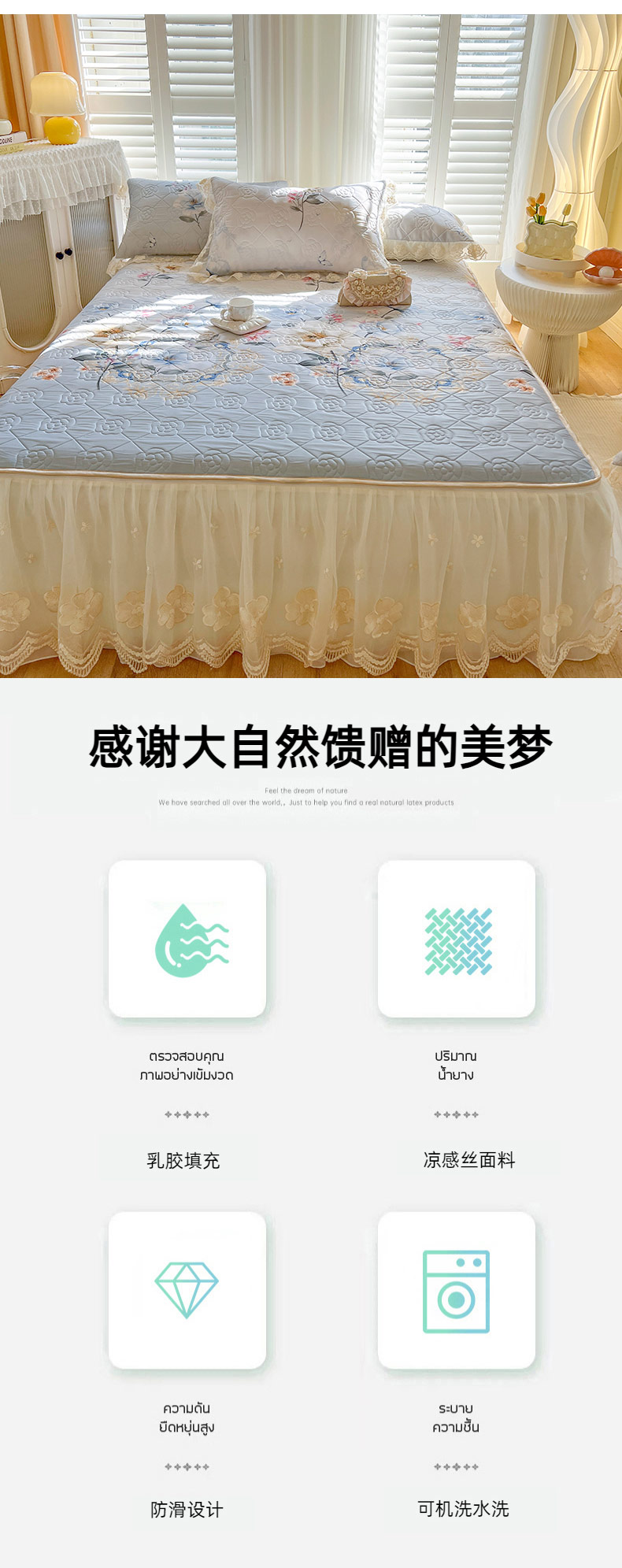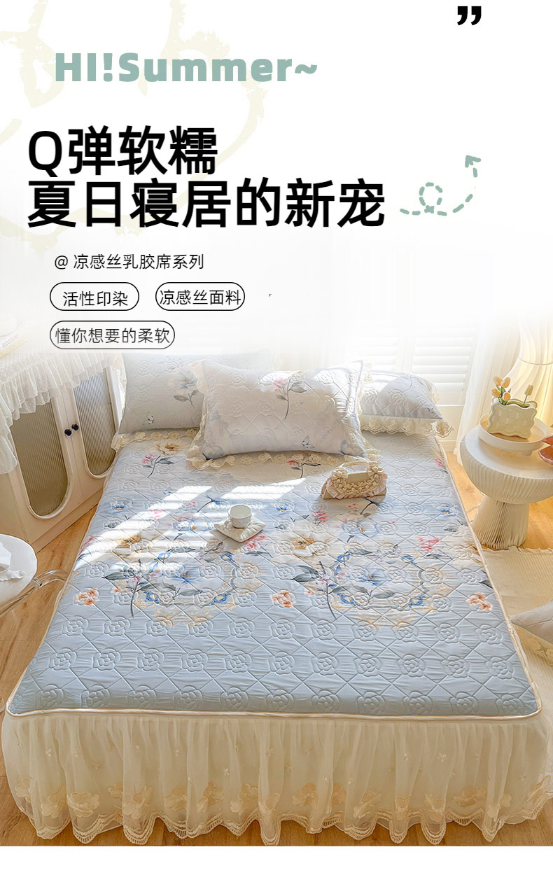 (总)麒豆豆2025新款凉感丝床笠式床裙乳胶凉席,白,粉,灰,蓝,绿,驼,玉,紫