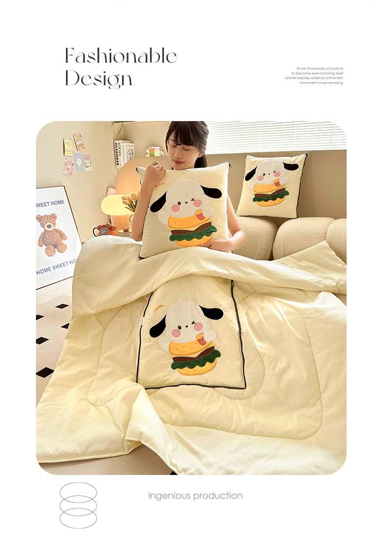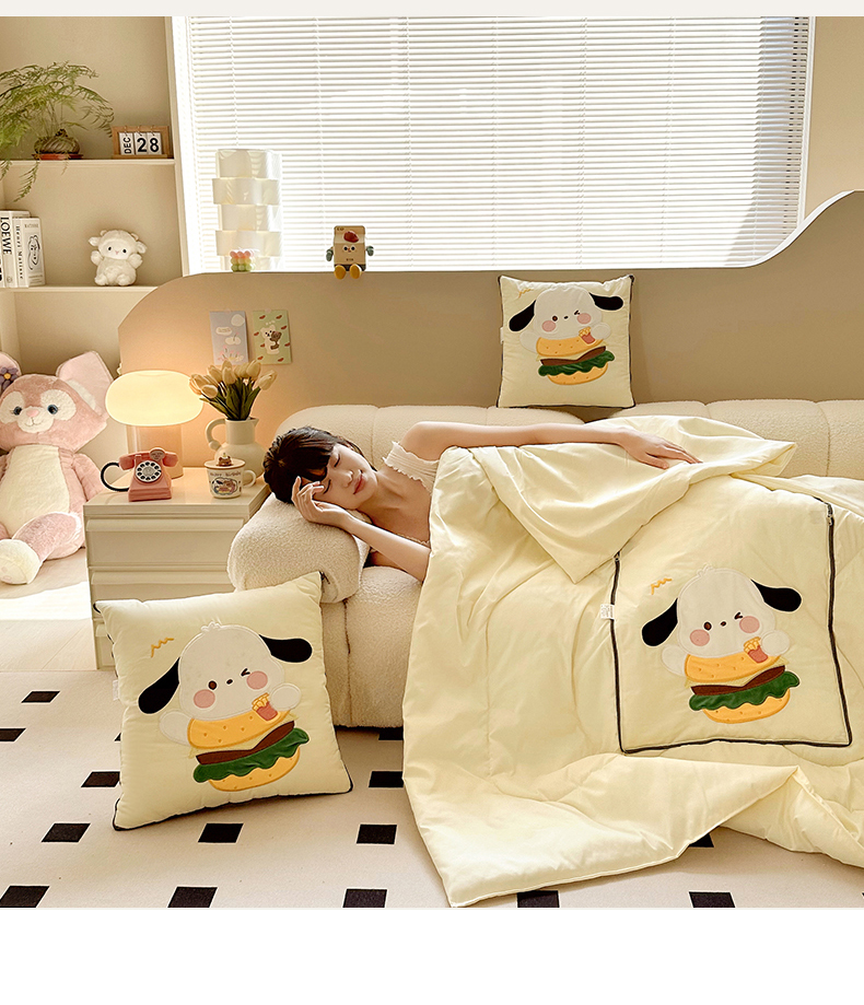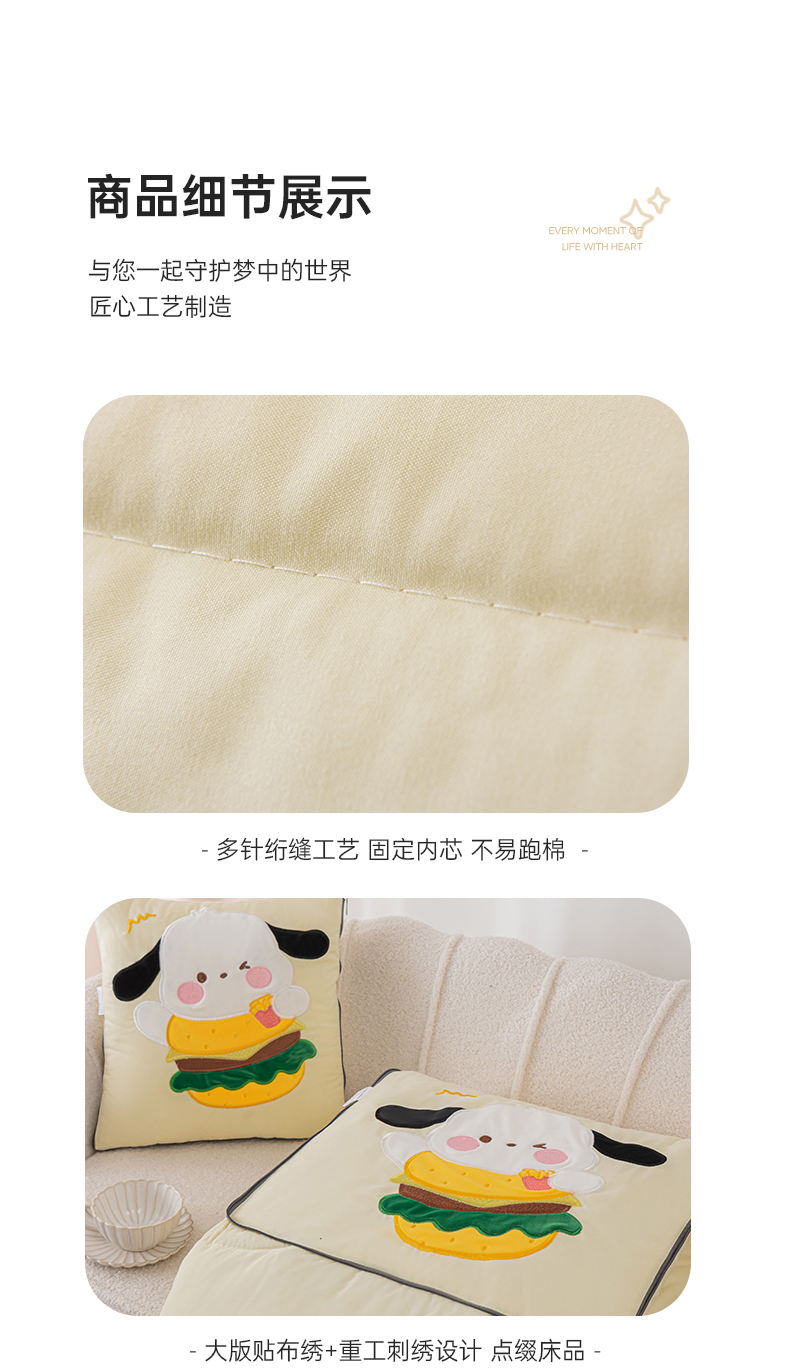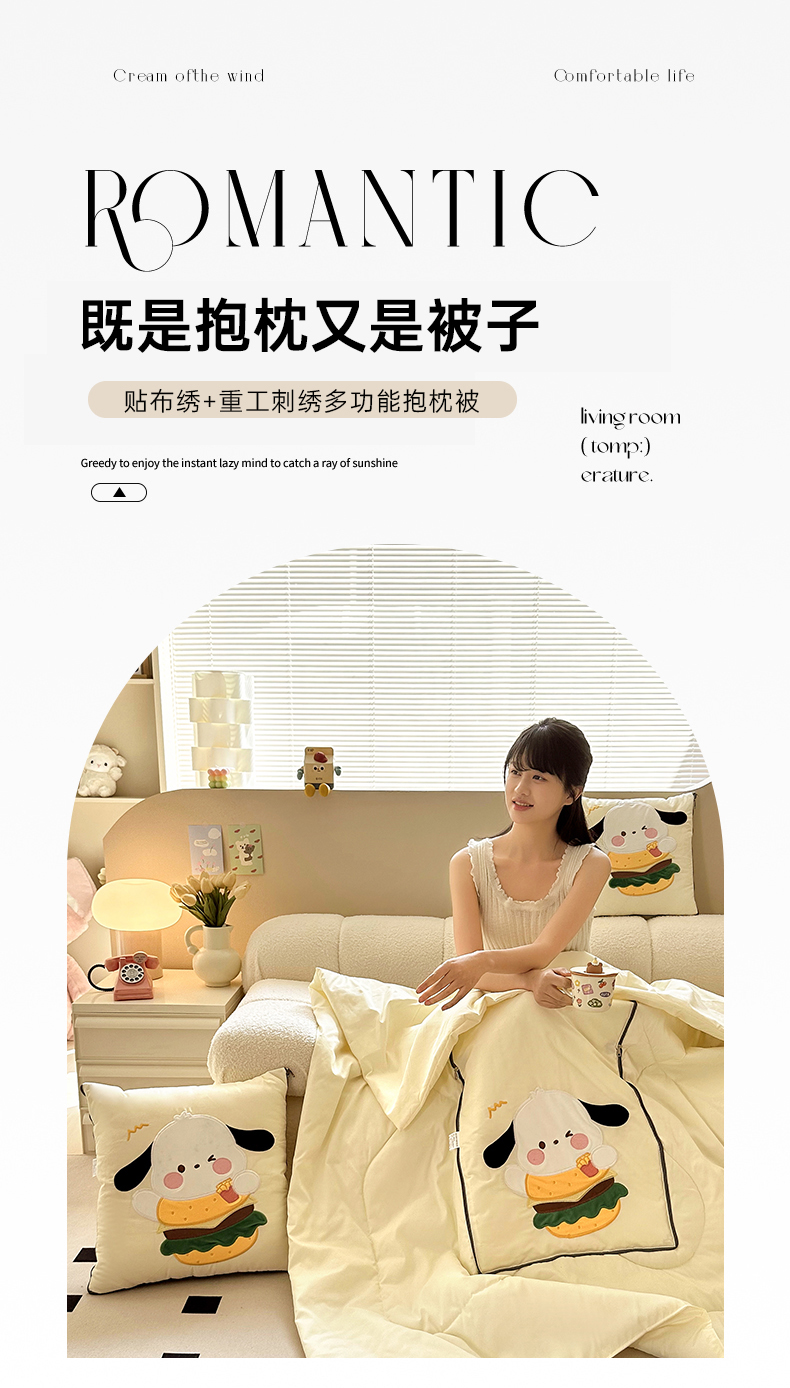 铭宣家居 2024新款贴布绣+重工刺绣多功能抱枕被系列 汉堡狗狗 汉堡狗狗-米黄色