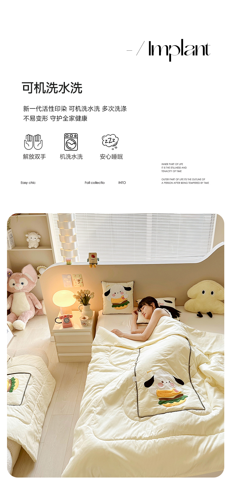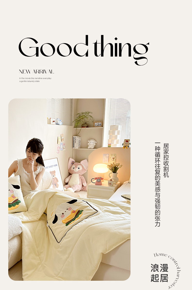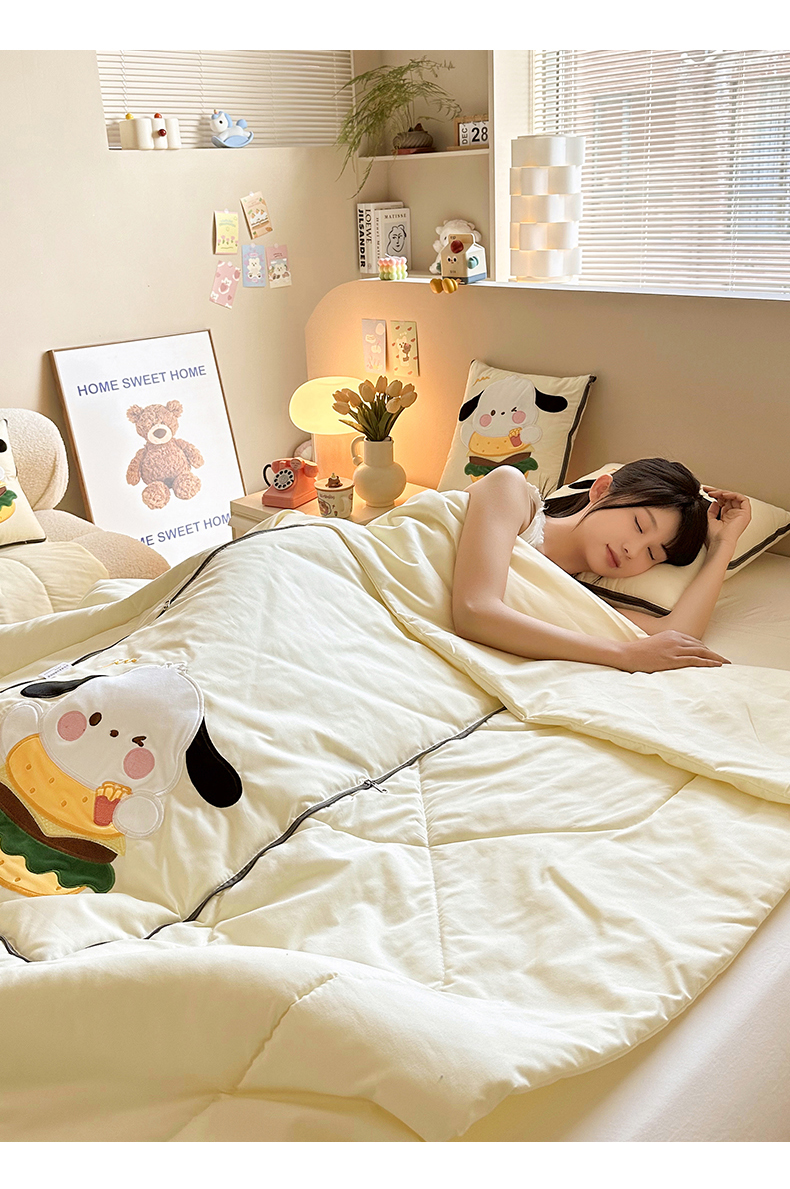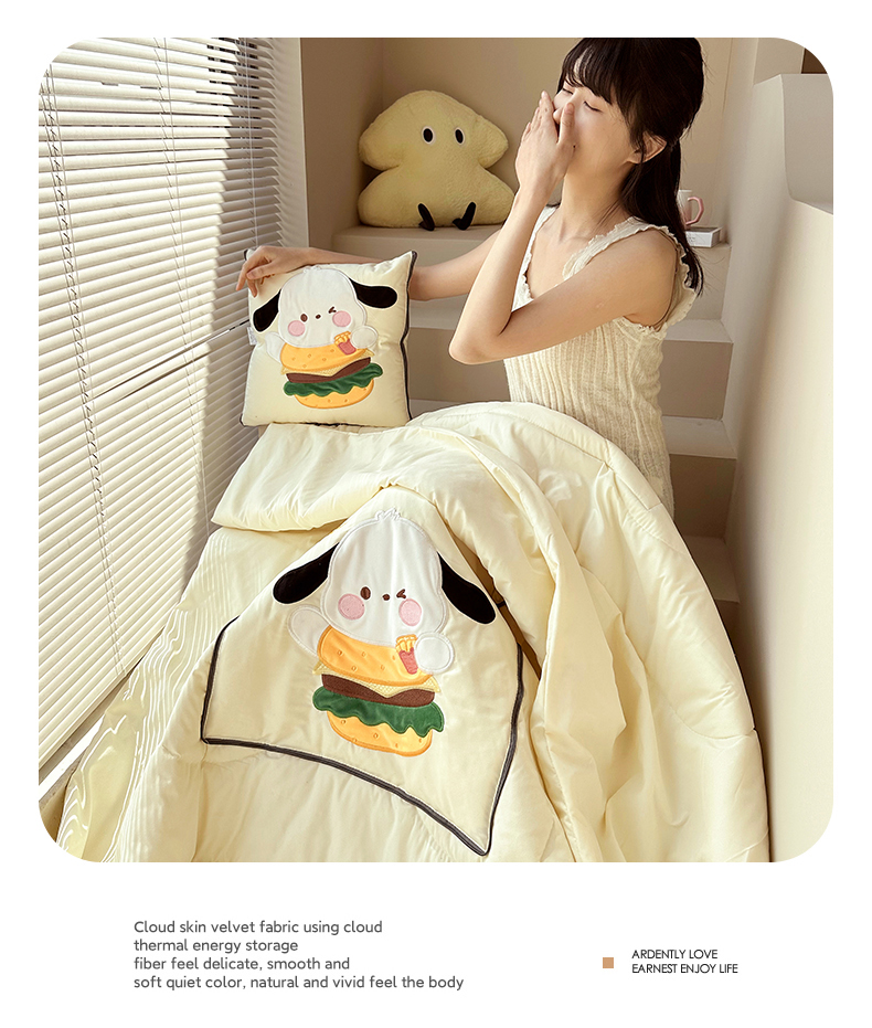 铭宣家居 2024新款贴布绣+重工刺绣多功能抱枕被系列 汉堡狗狗 汉堡狗狗-米黄色